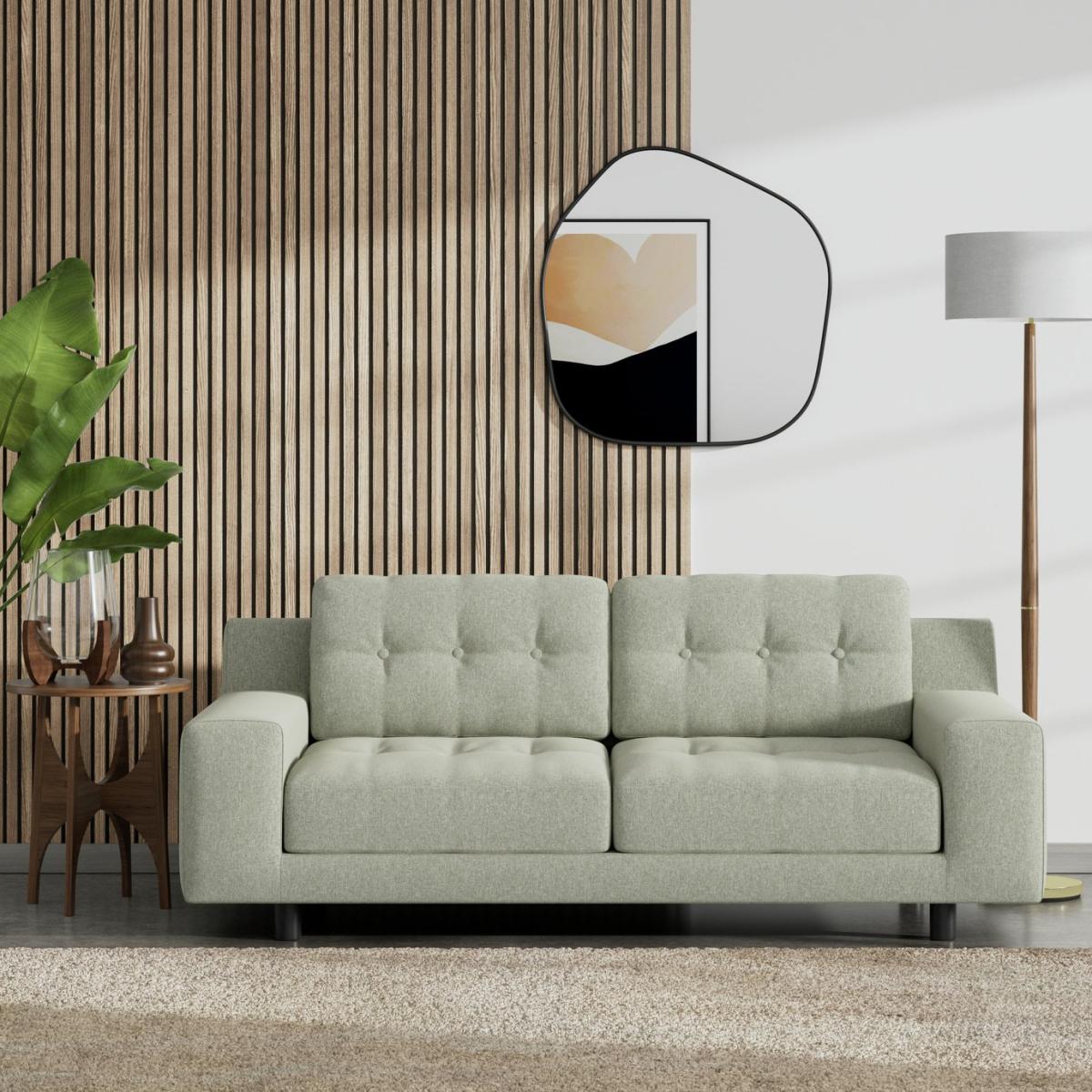 When it's made for you, you know you'll love it. The iconic Hendricks 2-seater sofa takes its cue from the best of mid-century design, with low wide arms and soft, deep, buttoned cushions. Upholstered in a contemporary Flat Weave, the Hendricks has a smooth but tonal look. And sits beautifully in contemporary and classic settings providing ample restful seating for family and friends. Offering relaxed comfort, Hendrick's cushions use high density foam, further wrapped in a thick quilted fibre wrap to create the perfect balance of support, durability and recovery. Handmade to order in the UK. The Hendricks uses quality materials and traditional techniques for furniture that's unique to you. Available in a choice of sizes and fabrics including Aquaclean technology protection built into the yarn, which is easy to clean with just water. Part of the Hendricks collection. Material: Made from 100% polyester. Wooden feet - black. Removable seats with fibre filling. Removable cushion(s) with fibre filling. Free fabric swatch available on this line. Dimensions: Size H79, W182, D90cm. Floor to seat height: 45cm. Depth of seat: 60cm. Height of seat back: 40cm. Width of seating area between arms: 140cm. Height of arm rest: 48cm. Weight: 51kg. Packaged dimensions: Package size H84, W187, D95cm. General information: We do more than deliver your product, we unpack, set it up and take away the packaging. Manufactured in the UK using components sourced globally. Professional clean only. Plump cushions regularly to maintain shape. Manufacturer's 15 year frame guarantee.