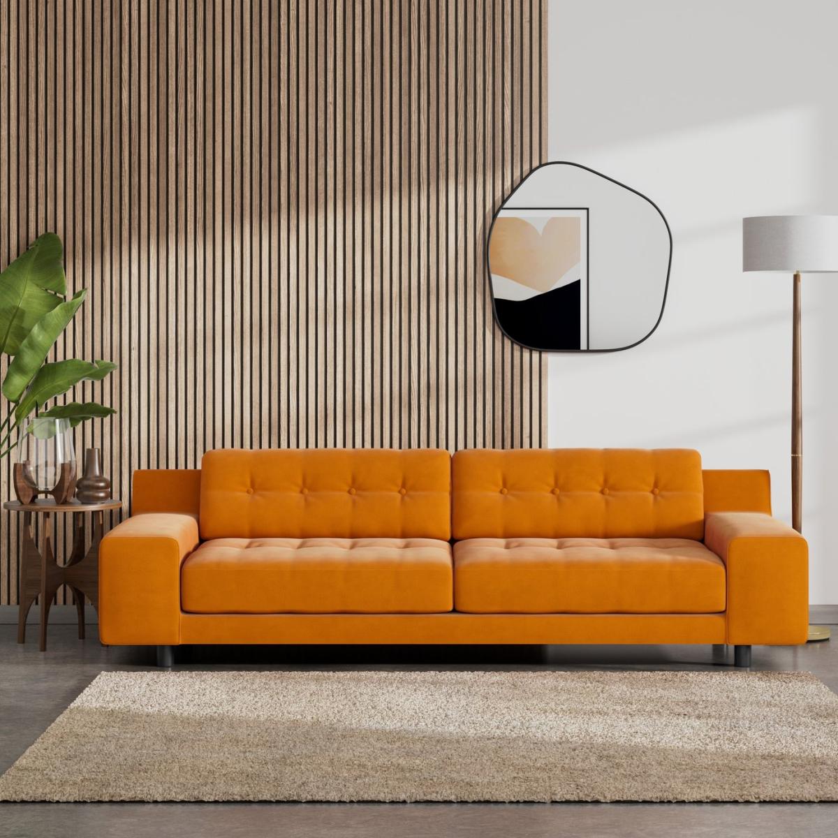 When it's made for you, you know you'll love it. The iconic Hendricks 4-seater sofa takes its cue from the best of mid-century design, with low wide arms and soft, deep, buttoned cushions. Upholstered in a velvety sheen chenille, the Hendricks takes on a rich, soft, textured look. And sits beautifully in contemporary and classic settings providing ample restful seating for family and friends. Offering relaxed comfort, Hendrick's cushions use high density foam, further wrapped in a thick quilted fibre wrap to create the perfect balance of support, durability and recovery. Handmade to order in the UK. The Hendricks uses quality materials and traditional techniques for furniture that's unique to you. Available in a choice of sizes and fabrics including Aquaclean technology protection built into the yarn, which is easy to clean with just water. Part of the Hendricks collection. Material: Made from 100% polyester. Wooden feet - black. Removable seats with fibre filling. Removable cushion(s) with fibre filling. Free fabric swatch available on this line. Dimensions: Size H79, W242, D90cm. Floor to seat height: 45cm. Depth of seat: 60cm. Height of seat back: 40cm. Width of seating area between arms: 190cm. Height of arm rest: 48cm. Weight: 64kg. Packaged dimensions: Package size H84, W247, D95cm. General information: FSC certified meaning the materials used for this product are responsibly sourced. We do more than deliver your product, we unpack, set it up and take away the packaging. Manufactured in the UK using components sourced globally. Professional clean only. Plump cushions regularly to maintain shape. Manufacturer's 15 year frame guarantee.