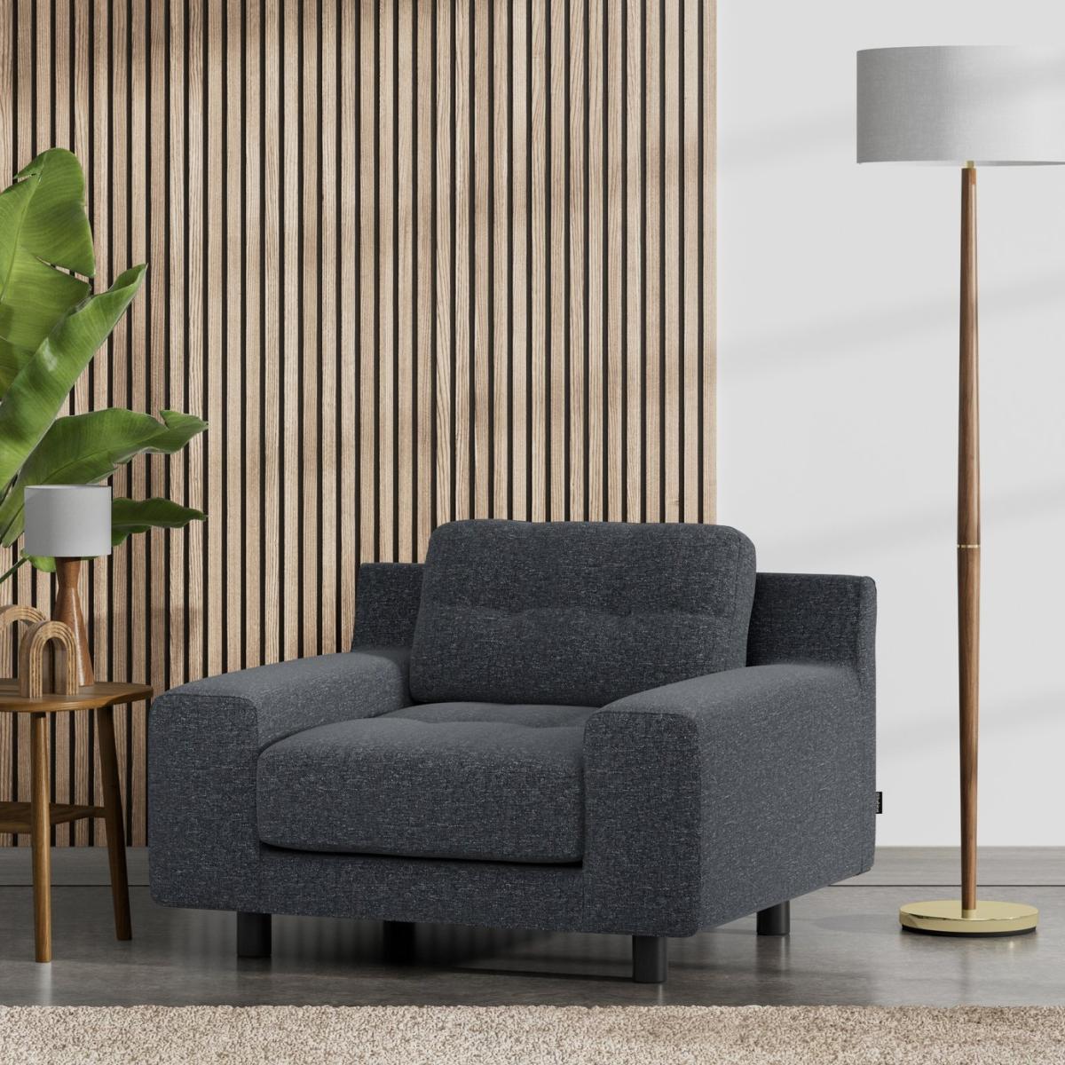 When it's made for you, you know you'll love it. The iconic Hendricks armchair takes its cue from the best of mid-century design, with low wide arms and soft, deep, buttoned cushions. Upholstered in a contemporary Flat Weave, the Hendricks has a smooth but tonal look. And sits beautifully in contemporary and classic settings providing ample restful seating for family and friends. Offering relaxed comfort, Hendricks cushions use high density foam, further wrapped in a thick quilted fibre wrap to create the perfect balance of support, durability and recovery. Handmade to order in the UK. The Hendricks uses quality materials and traditional techniques for furniture thats unique to you. Available in a choice of sizes and fabrics including Aquaclean technology protection built into the yarn, which is easy to clean with just water. Part of the Hendricks collection. Material: Made from 100% polyester. Wooden feet. Removable seat with fibre filling. Removable cushion(s) with fibre filling. Free fabric swatch available on this line. Dimensions: Size H79, W104, D90cm. Floor to seat height: 45cm. Depth of seat: 60cm. Height of seat back: 40cm. Width of seating area between arms: 62cm. Height of arm rest: 48cm. Weight: 32kg. Packaged dimensions: Package size H84, W109, D95cm. General information: FSC certified meaning the materials used for this product are responsibly sourced. We do more than deliver your product, we unpack, set it up and take away the packaging. Manufactured in the UK using components sourced globally. Professional clean only. Plump cushions regularly to maintain shape. Manufacturer's 15 year frame guarantee.