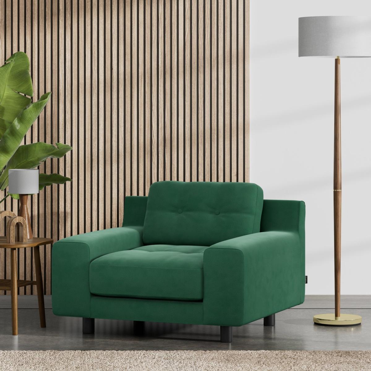 When it's made for you, you know you'll love it. The iconic Hendricks armchair takes its cue from the best of mid-century design, with low wide arms and soft, deep, buttoned cushions. Upholstered in a velvety sheen chenille, the Hendricks takes on a rich, soft, textured look. And sits beautifully in contemporary and classic settings providing ample restful seating for family and friends. Offering relaxed comfort, Hendricks cushions use high density foam, further wrapped in a thick quilted fibre wrap to create the perfect balance of support, durability and recovery. Handmade to order in the UK. The Hendricks uses quality materials and traditional techniques for furniture thats unique to you. Available in a choice of sizes and fabrics including Aquaclean technology protection built into the yarn, which is easy to clean with just water. Part of the Hendricks collection. Material: Made from 100% polyester. Wooden feet. Removable seat with fibre filling. Removable cushion(s) with fibre filling. Free fabric swatch available on this line. Dimensions: Size H79, W104, D90cm. Floor to seat height: 45cm. Depth of seat: 60cm. Height of seat back: 40cm. Width of seating area between arms: 62cm. Height of arm rest: 48cm. Weight: 32kg. Packaged dimensions: Package size H84, W109, D95cm. General information: FSC certified meaning the materials used for this product are responsibly sourced. We do more than deliver your product, we unpack, set it up and take away the packaging. Manufactured in the UK using components sourced globally. Professional clean only. Plump cushions regularly to maintain shape. Manufacturer's 15 year frame guarantee.