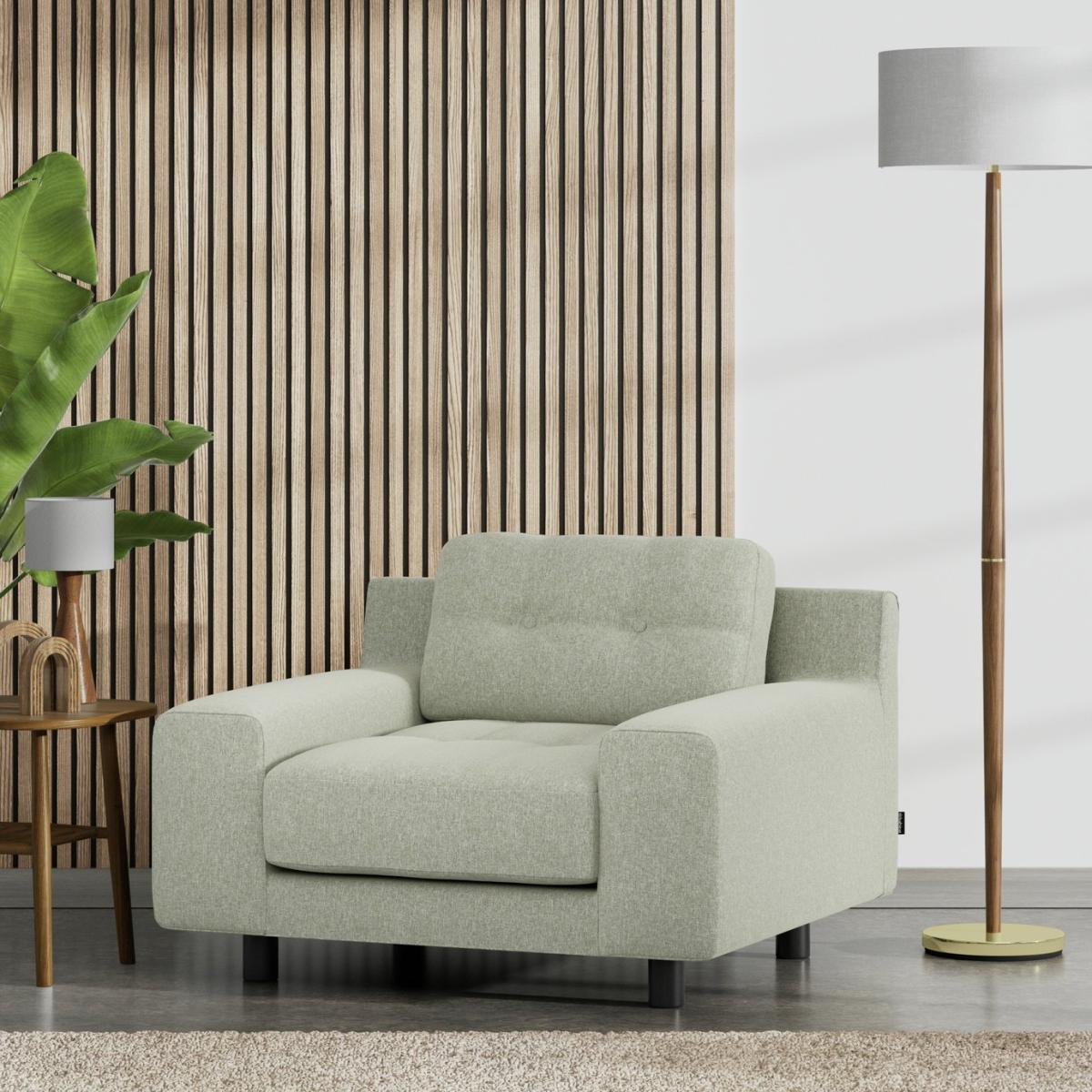 When it's made for you, you know you'll love it. The iconic Hendricks armchair takes its cue from the best of mid-century design, with low wide arms and soft, deep, buttoned cushions. Upholstered in a contemporary Flat Weave, the Hendricks has a smooth but tonal look. And sits beautifully in contemporary and classic settings providing ample restful seating for family and friends. Offering relaxed comfort, Hendrick's cushions use high density foam, further wrapped in a thick quilted fibre wrap to create the perfect balance of support, durability and recovery. Handmade to order in the UK. The Hendricks uses quality materials and traditional techniques for furniture that's unique to you. Available in a choice of sizes and fabrics including Aquaclean technology protection built into the yarn, which is easy to clean with just water. Part of the Hendricks collection. Material: Made from 100% polyester. Wooden feet. Removable seat with fibre filling. Removable cushion(s) with fibre filling. Free fabric swatch available on this line. Dimensions: Size H79, W104, D90cm. Floor to seat height: 45cm. Depth of seat: 60cm. Height of seat back: 40cm. Width of seating area between arms: 62cm. Height of ARM rest: 48cm. Weight: 32kg. Packaged dimensions: Package size H84, W109, D95cm. General information: We do more than deliver your product, we unpack, set it up and take away the packaging. Manufactured in the UK using components sourced globally. Professional clean only. Plump cushions regularly to maintain shape. Manufacturer's 15 year frame guarantee.