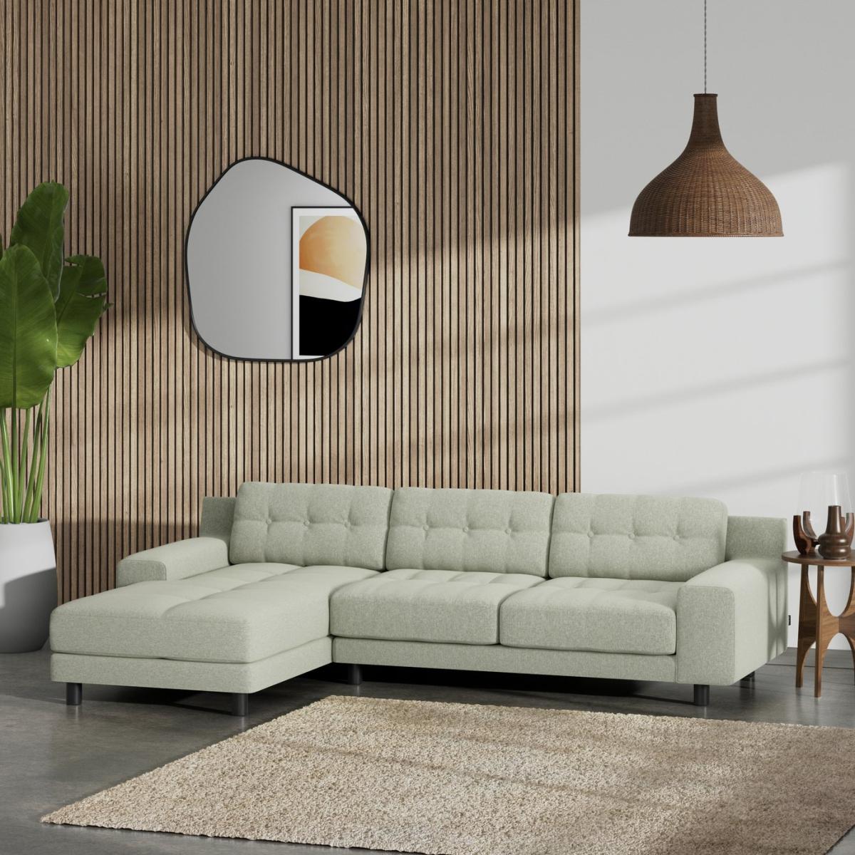 When it's made for you, you know you'll love it. The iconic Hendricks 4-seater left hand chaise takes its cue from the best of mid-century design, with low wide arms and soft, deep, buttoned cushions. Upholstered in a contemporary Flat Weave, the Hendricks has a smooth but tonal look. And sits beautifully in contemporary and classic settings providing ample restful seating for family and friends. Offering relaxed comfort, Hendrick's cushions use high density foam, further wrapped in a thick quilted fibre wrap to create the perfect balance of support, durability and recovery. Handmade to order in the UK. The Hendricks uses quality materials and traditional techniques for furniture that's unique to you. Available in a choice of sizes and fabrics including Aquaclean technology protection built into the yarn, which is easy to clean with just water. Part of the Hendricks collection. Left hand corner. Material: Made from 100% polyester. Wooden feet. Removable seats with fibre filling. Removable cushion(s) with fibre filling. Free fabric swatch available on this line. Dimensions: Size H79, longer width 252,. Floor to seat height: 45cm. Depth of seat: 60cm. Height of seat back: 40cm. Longer seating area width between arms: 210cm. Height of arm rest: 48cm. Weight: 84kg. Packaged dimensions: Package size H84, W166, D95cm. Second package size H84, W96, D175cm. General information: We do more than deliver your product, we unpack, set it up and take away the packaging. Manufactured in the UK using components sourced globally. Professional clean only. Plump cushions regularly to maintain shape. Manufacturer's 15 year frame guarantee.