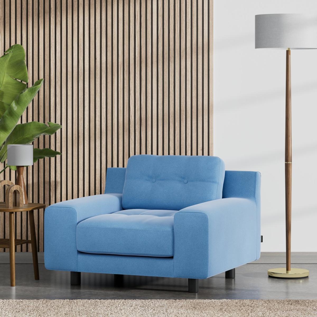 When it's made for you, you know you'll love it. The iconic Hendricks armchair takes its cue from the best of mid-century design, with low wide arms and soft, deep, buttoned cushions. Upholstered in rich velvet, it takes on a luxe look. And sits beautifully in contemporary and classic settings providing ample restful seating for family and friends. Offering relaxed comfort, Hendricks cushions use high density foam, further wrapped in a thick quilted fibre wrap to create the perfect balance of support, durability and recovery. Handmade to order in the UK. The Hendricks uses quality materials and traditional techniques for furniture thats unique to you. Available in a choice of sizes and fabrics including Aquaclean technology protection built into the yarn, which is easy to clean with just water. Part of the Hendricks collection. Material: Made from 100% recycled polyester. Wooden feet. Removable seat with fibre filling. Removable cushion(s) with fibre filling. Free fabric swatch available on this line. Dimensions: Size H79, W104, D90cm. Floor to seat height: 45cm. Depth of seat: 60cm. Height of seat back: 40cm. Width of seating area between arms: 62cm. Height of arm rest: 48cm. Weight: 32kg. Packaged dimensions: Package size H84, W109, D95cm. General information: FSC certified meaning the materials used for this product are responsibly sourced. We do more than deliver your product, we unpack, set it up and take away the packaging. Manufactured in the UK using components sourced globally. Professional clean only. Plump cushions regularly to maintain shape. Manufacturer's 15 year frame guarantee.