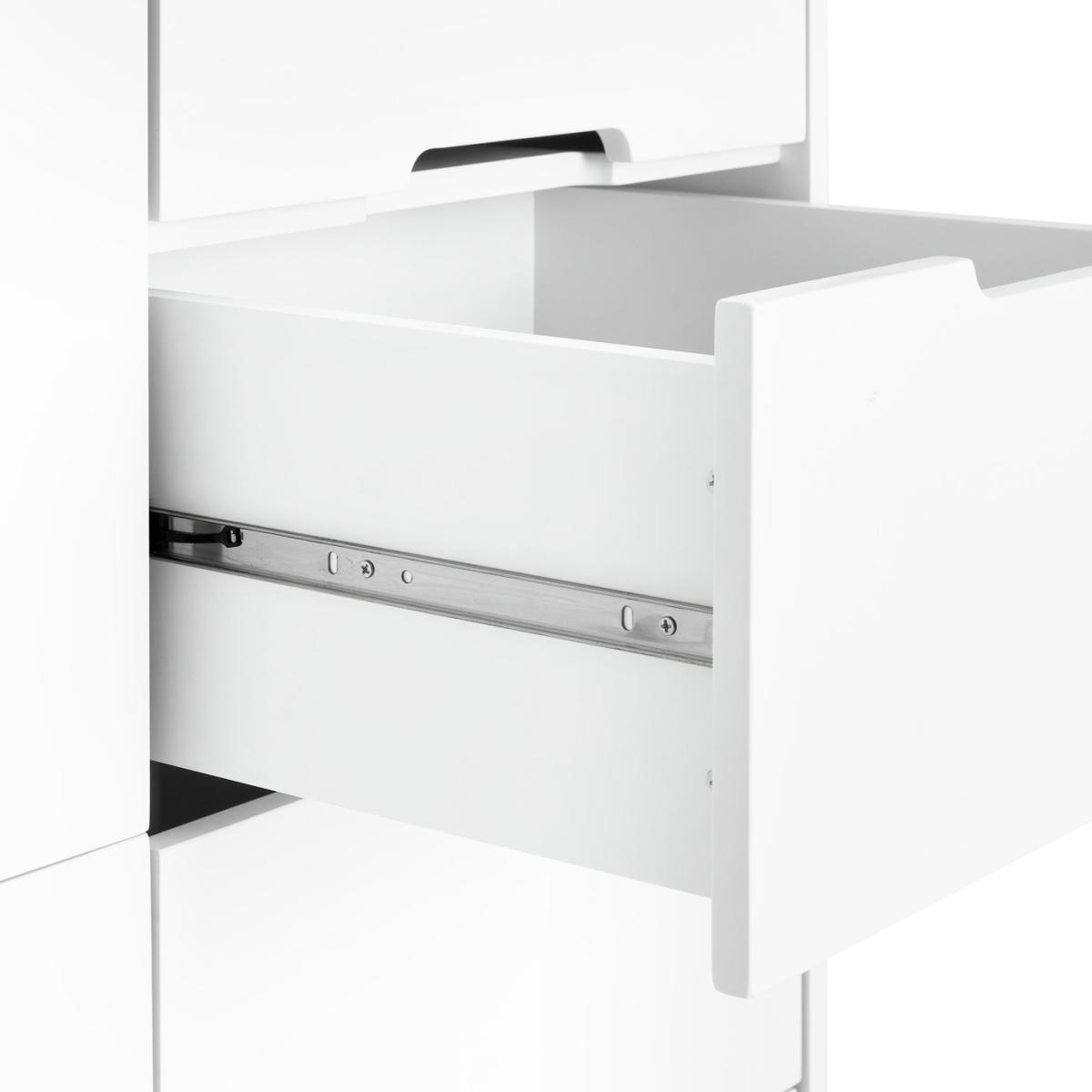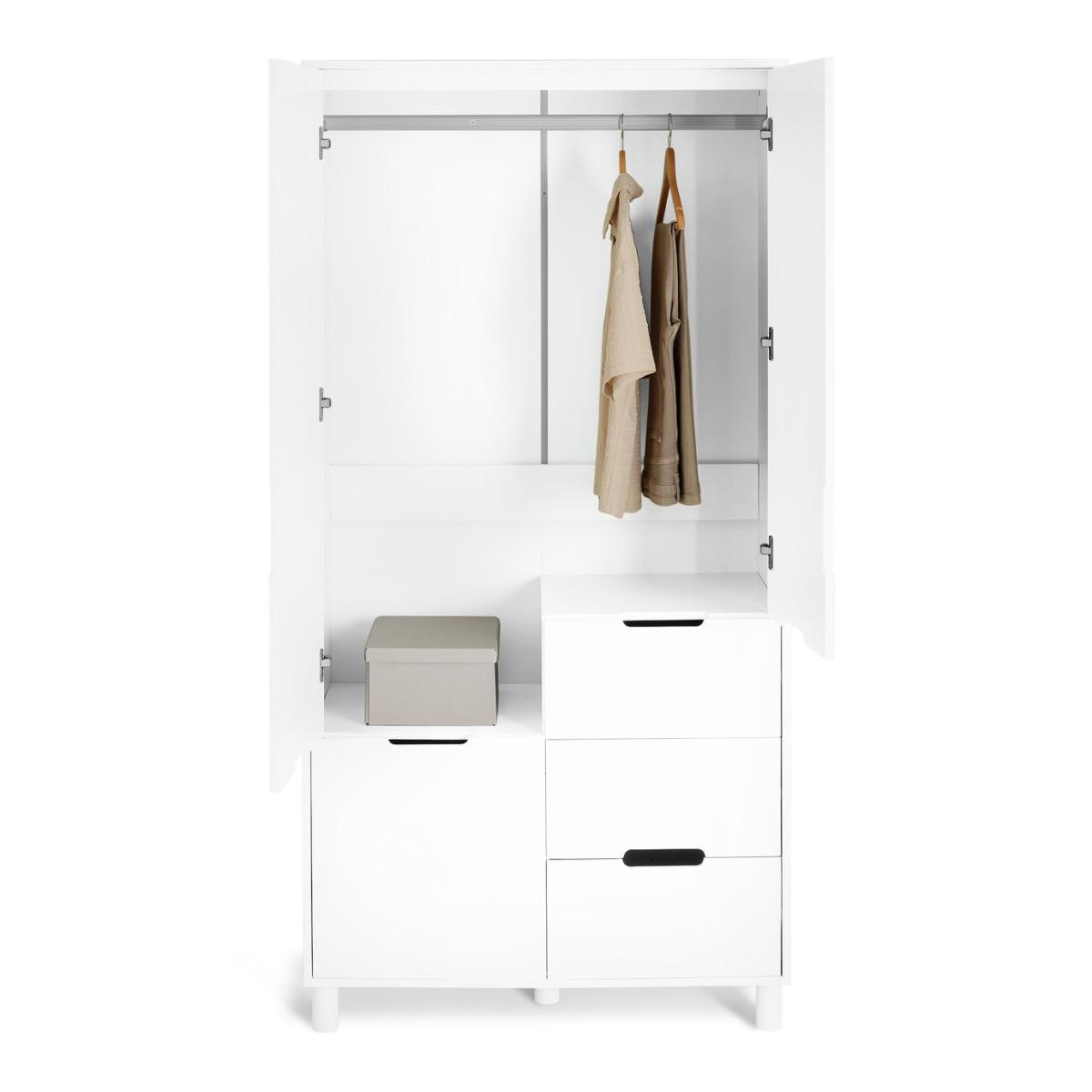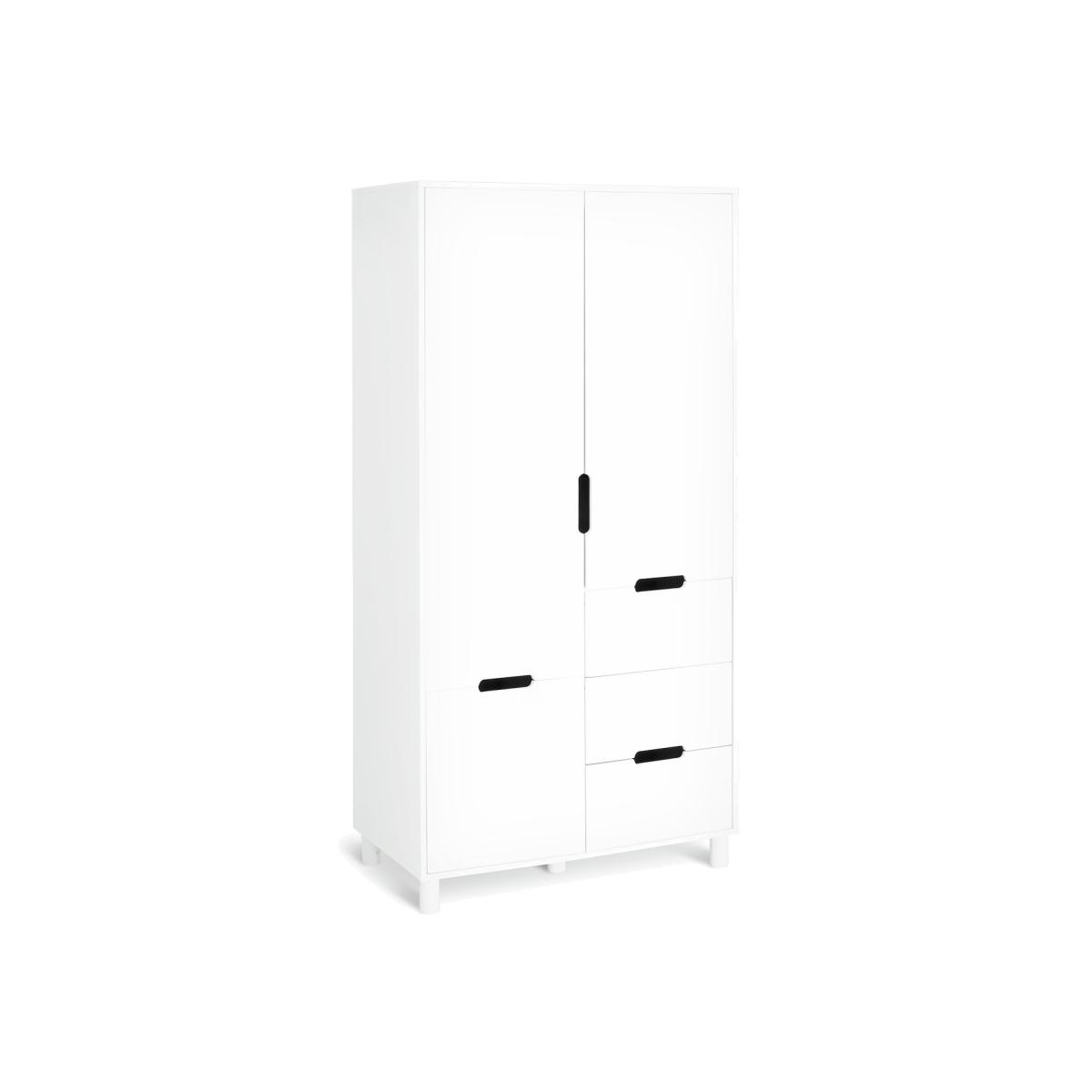 Where do we start with Henri? A timeless classic that wowed then and wows now. This iconic 80s design from the Habitat studio is all about clean lines, distinctive cutout handles and the undeniable charm of fresh white. This wardrobe has a hanging rail, 2 easy glide drawers and a cupboard with 2 shelves. All the space your heart and clothes desire. Yes, fashionable Henri's done it again. Part of the Henri collection. Made of solid wood and MDF. 2 doors. 2 drawers with metal runners. Soft close. 1 fixed hanging rail. Hanging rail holds up to 30kg. 3 fixed shelves. 1 adjustable shelf. Self-assembly - 2 people recommended (includes wall fixings). If this product is over 60cm high it must be securely attached to the wall to prevent overturning. Dimensions: Size H180, W90, D50cm. Internal hanging space H100, W86.9, D49cm. Internal drawer H17.4, W40.6, D38.8cm. Large internal drawer H17.4, W40.6, D38.8cm. Handle size: L15, W1.5cm. Weight 69kg. Package Dimensions: Package 1 dimensions: H14.5, W110, D58.5cm. Package 1 weight: 37.2kg. Package 2 dimensions: H10, W184, D58.5cm. Package 2 weight: 39.8kg. General information: By choosing FSC certified products, you are supporting responsible management of the world's forests.