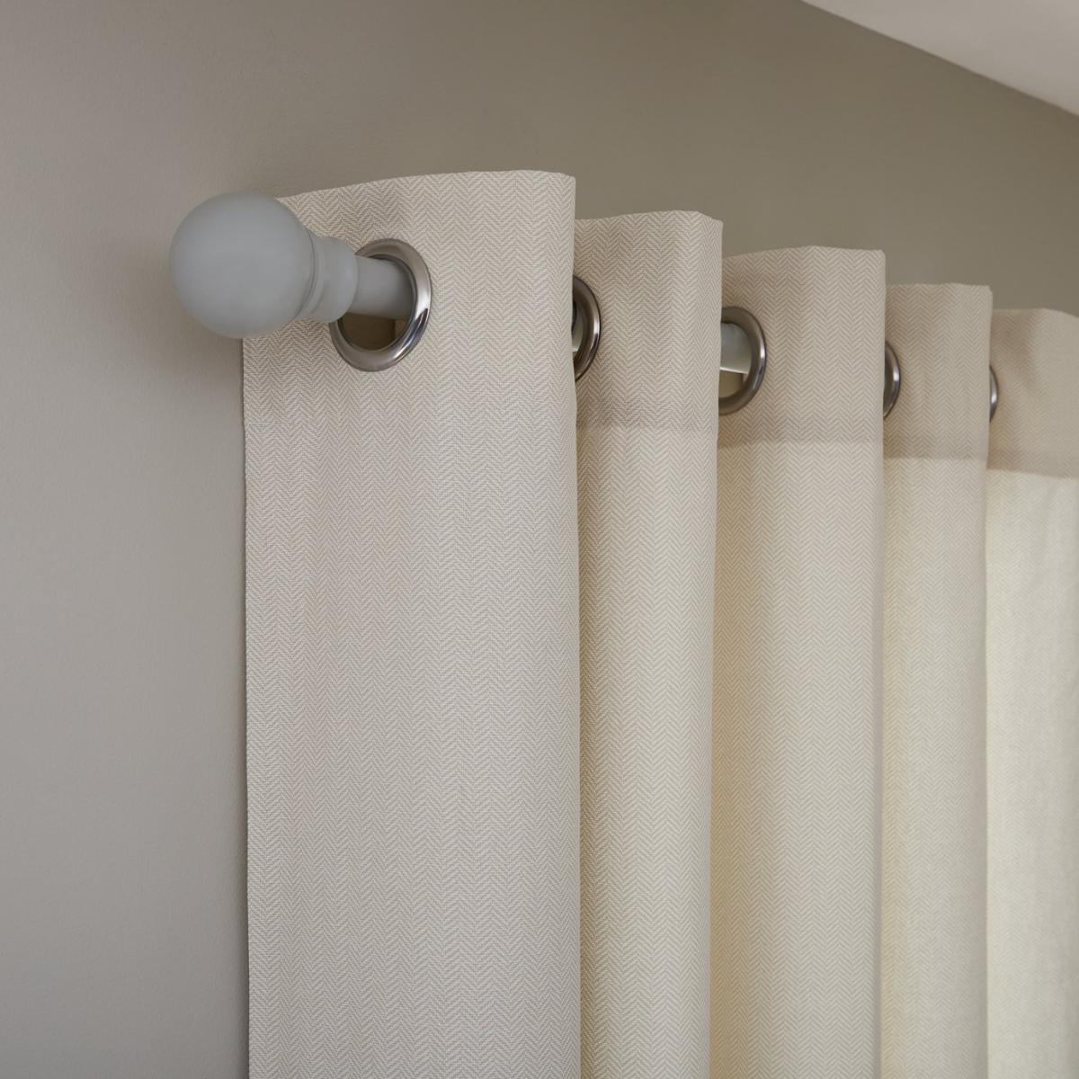 Who doesn't love a classic pattern? This pair of curtains in a trendy blue has a stylish printed herringbone pattern that'll add warmth and texture to your space. We love these curtains for their woven look and strokably soft feel. Made from 100% cotton, they're lined to help block out light and give privacy. We've gone for eyelet hangings because they're super simple to install (just slide them onto the pole) and they give pleasingly wide folds. Should disaster strike you can even machine wash and tumble dry them. Want to complete the look? A matching cushion is available, so you can soften up your space with coordinating patterns. Cream Herringbone Design. Silver Stainless Steel Eyelets. Features Fully lined. Made from 100% cotton. Lined. Lining made from 50% polyester and 50% cotton. Includes tie backs. Dimensions Size 168cm (46 inches) wide by 183cm (72 inches) drop. Dimensions provided include header tape. Width refers to one curtain panel before hanging. / 10cm. Eyelet diameter: 4cm. General information Contains one pair of curtains. Number of eyelets per curtain: 8. Suitable for curtain poles. Curtain pole not included. Machine washable at 40 C. Suitable for tumble drying. General Information: We are excited to be welcoming some of our favourite HOME products into the Habitat range. Your product may arrive in Habitat or HOME packaging.