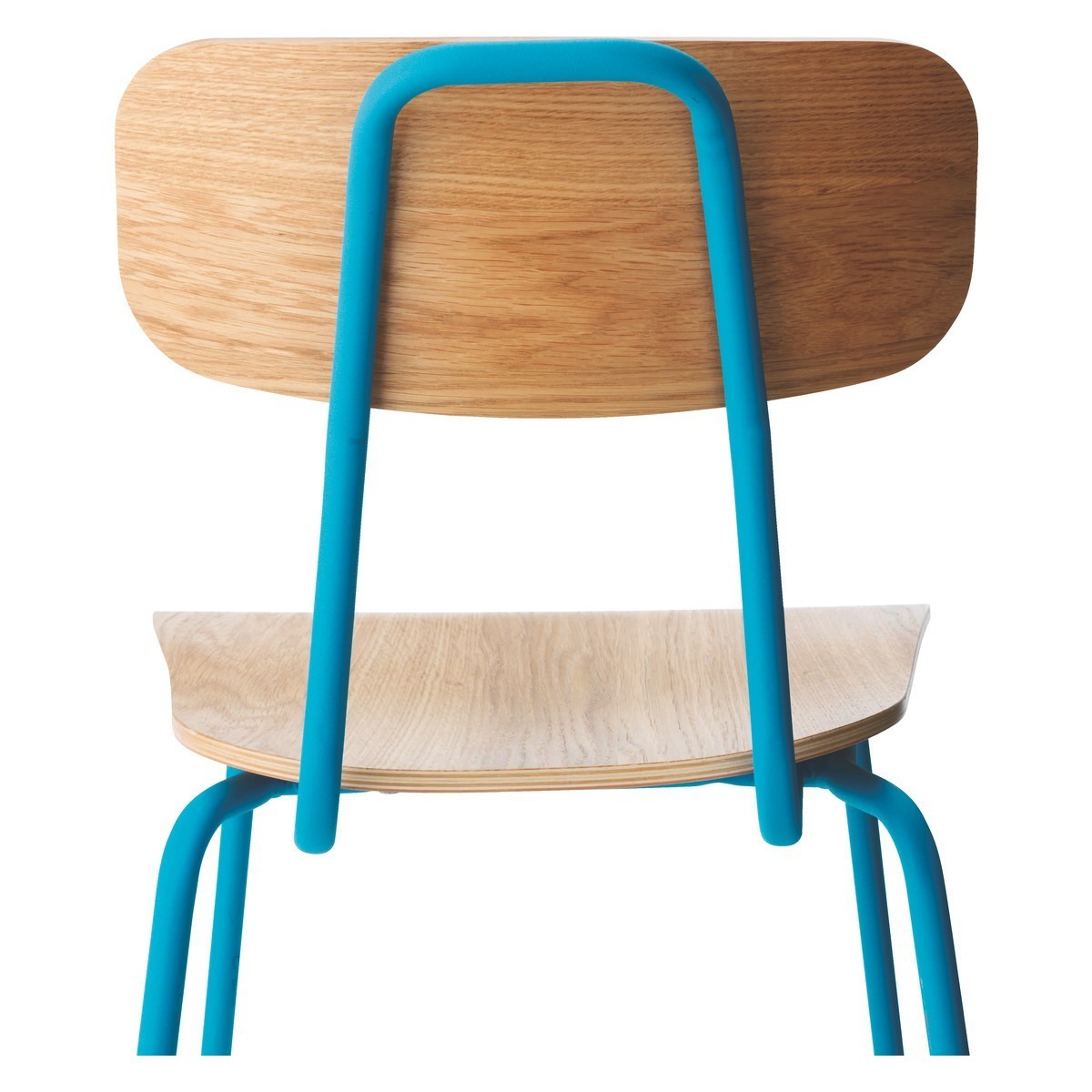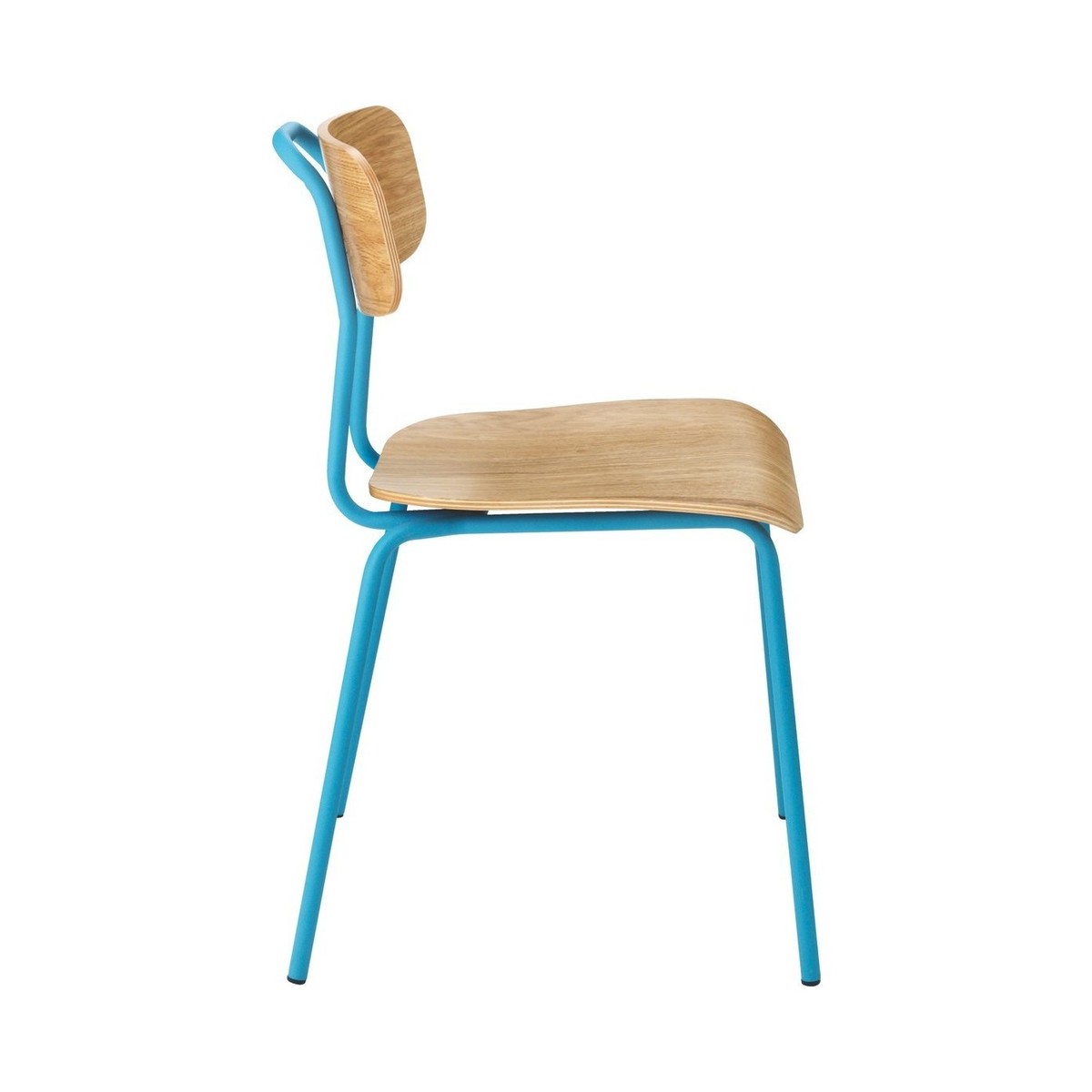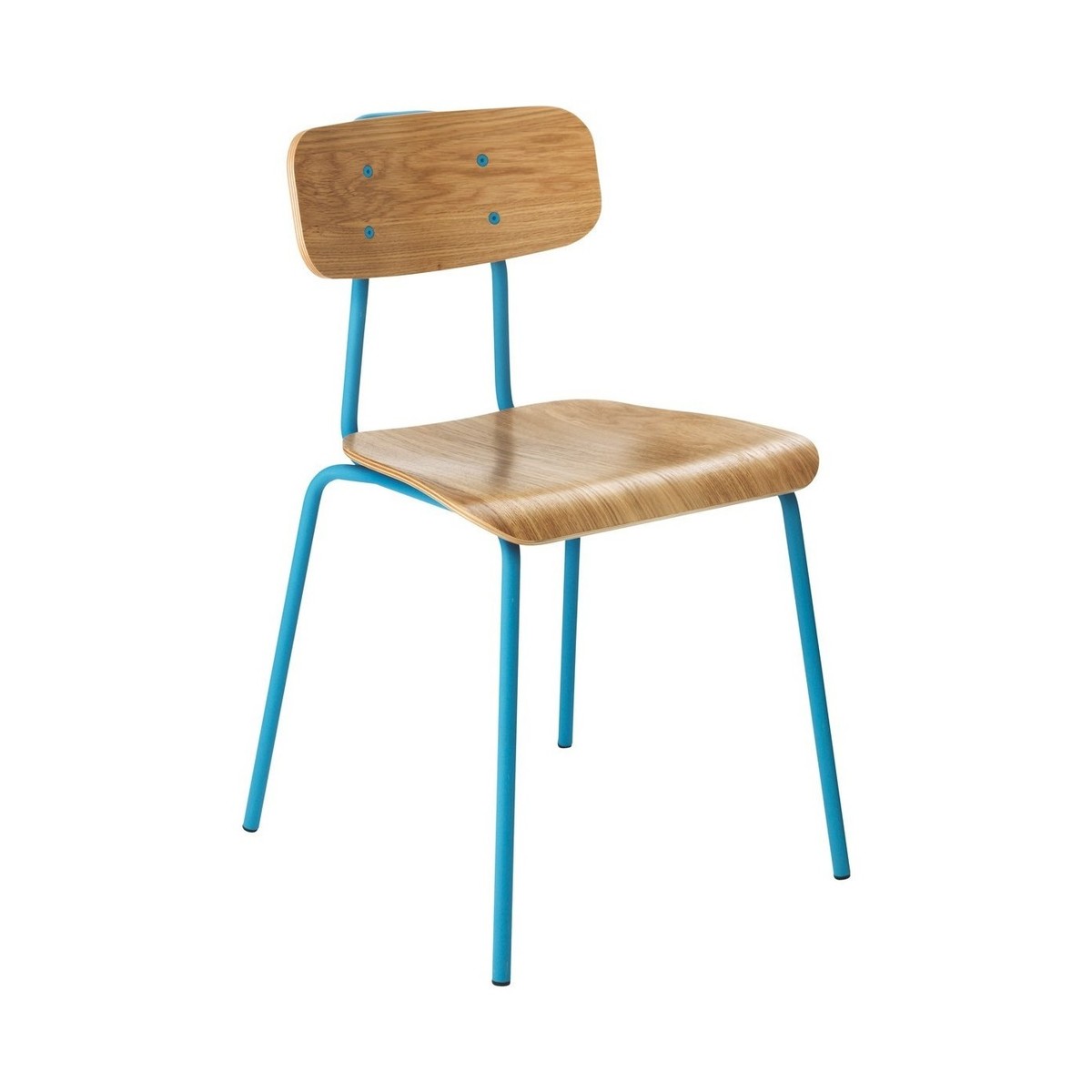 Hester blue stackable dining chair brings refectory dining and retro design into your home with a colourful 21st century twist.;The chair comes in a vibrantly coloured matt powder coat finish, setting off the oak veneer seat and back rest to perfection.;Hester dining chairs are available in a range of colours.