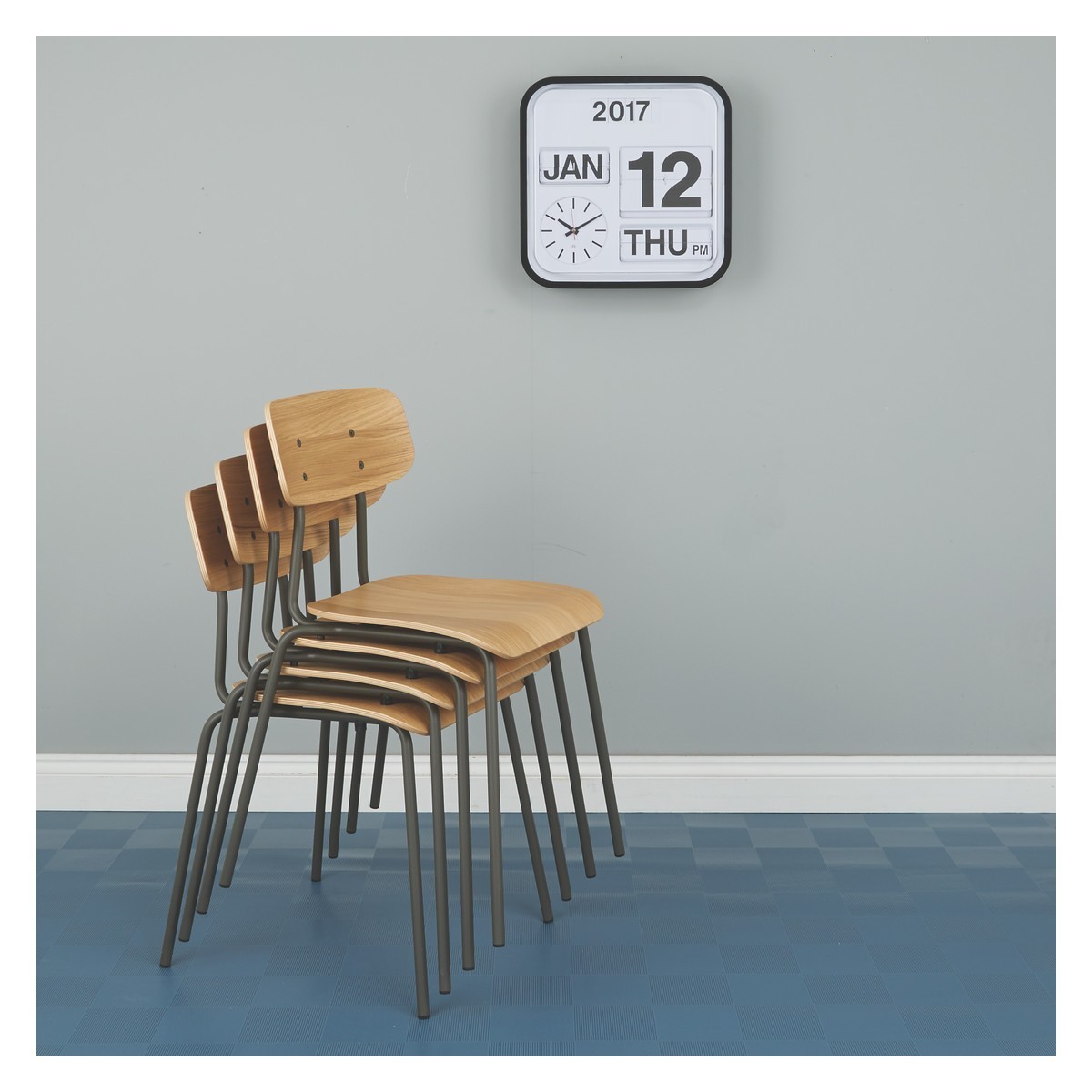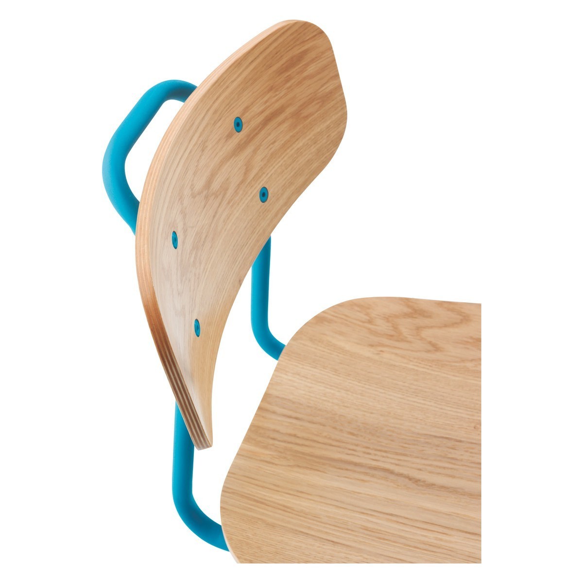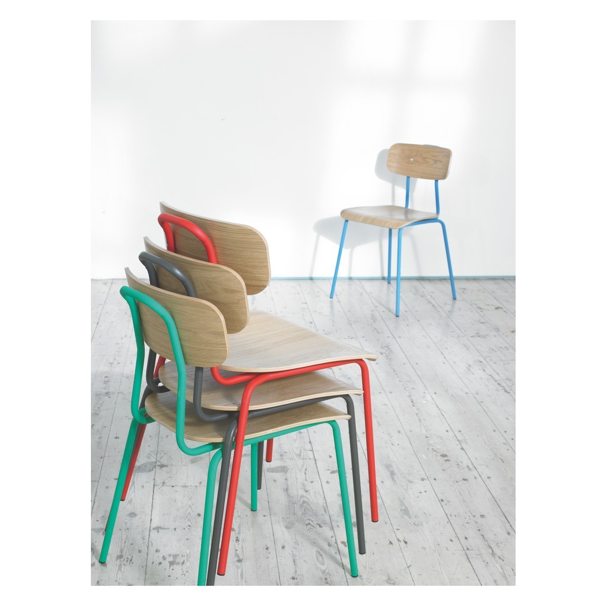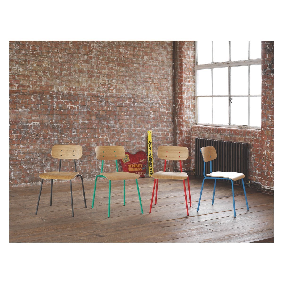 Hester blue stackable dining chair brings refectory dining and retro design into your home with a colourful 21st century twist.;The chair comes in a vibrantly coloured matt powder coat finish, setting off the oak veneer seat and back rest to perfection.;Hester dining chairs are available in a range of colours.