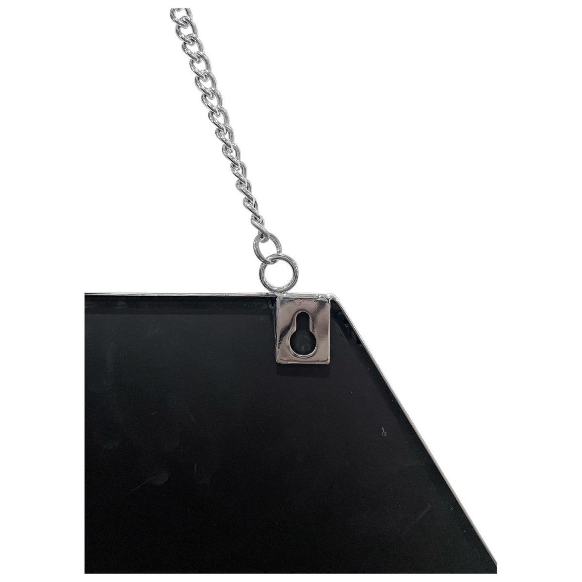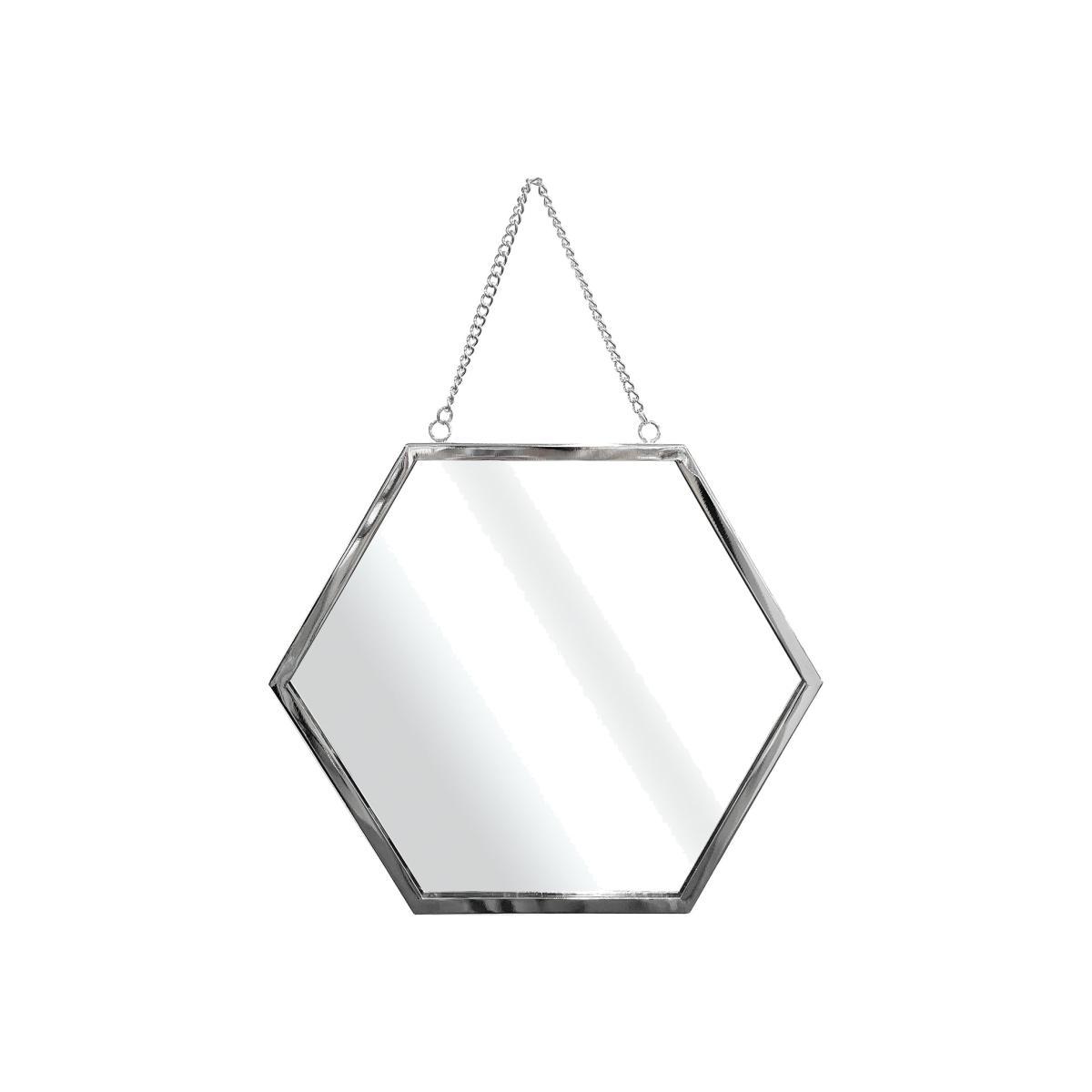 Handsomely hexagonal. Our sassy 6-sided mirror brings a fresh angle to your space. A polished silver frame and a link chain give this modern piece a glamorous touch. It's happy hanging out in your lounge, bedroom or bathroom. Wherever it goes, strike a pose.