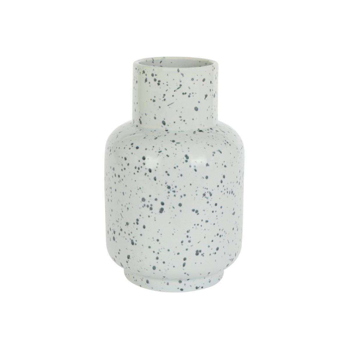 Handmade and hand finished in Vietnam, the Hinata blue speckled earthenware vase is a clean-lined design that showcases a high gloss finish with grey speckled accents. Decorative enough to look attractive on its own or filled with a large bouquet of flowers, the vase will make a striking centrepiece to a console table or side table. Made from earthenware, we recommend using a coaster or mat underneath the vase to protect your surfaces. Size H26,. Diameter 15cm.