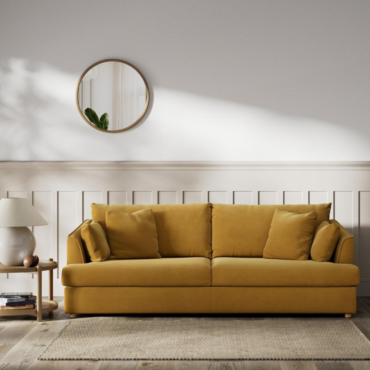 When it's made for you, you know you'll love it. Invitingly soft and ultra comfortable, our Holmfirth 4-seater sofa features wide T-shaped seat cushions that nestle into tapered armrests. Perfect to stretch out and relax on after a long day. And upholstered in a velvety sheen chenille, the Holmfirth takes on a rich, soft, textured look. Finished with thick piped detail and scatter cushions, this impressive 4-seater sofa gives an attractive layered appearance. Offering relaxed comfort Holmfirth's high density foam seat cushions sandwiched between softer foam layers and generously wrapped in soft wadding, create a more tailored look while providing the perfect balance of support, durability and recovery. Handmade to order in the UK. The Holmfirth uses quality materials and traditional techniques for furniture that's unique to you. Available in a choice of sizes and fabrics including Aquaclean technology protection built into the yarn, which is easy to clean with just water. Part of the Holmfirth collection. Material: Made from 100% polyester. Wooden feet - ash. Removable seats with foam fibre wrap filling. Removable cushion(s) with foam fibre wrap filling. Free fabric swatch available on this line. Dimensions: Size H86, W217, D110cm. Floor to seat height: 45cm. Depth of seat: 64cm. Height of seat back: 44cm. Width of seating area between arms: 154cm. Height of arm rest: 64cm. Weight: 73kg. Packaged dimensions: Package size H91, W222, D115cm. General information: FSC certified meaning the materials used for this product are responsibly sourced. We do more than deliver your product, we unpack, set it up and take away the packaging. Manufactured in the UK using components sourced globally. Professional clean only. Plump cushions regularly to maintain shape. Manufacturer's 15 year frame guarantee.