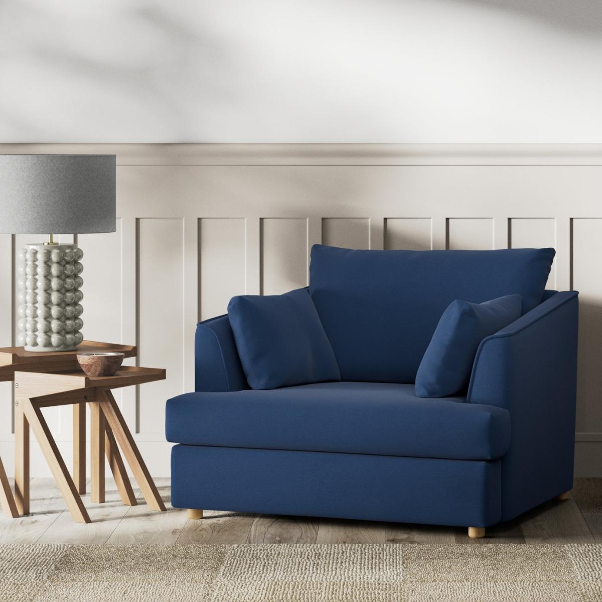 When it's made for you, you know you'll love it. Invitingly soft and ultra-comfortable, our Holmfirth armchair features a wide T-shaped seat cushion that nestles into tapered armrests. Perfect to stretch out and relax on after a long day. And upholstered in Aquaclean chenille the Holmfirth combines a soft feel with easy-clean durability. Finished with thick piped detail, this impressive sofa gives an attractive layered appearance. Offering relaxed comfort Holmfirths high density foam seat cushions sandwiched between softer foam layers and generously wrapped in soft wadding, create a more tailored look while providing the perfect balance of support, durability and recovery. Handmade to order in the UK. The Holmfirth uses quality materials and traditional techniques for furniture thats unique to you. Available in a choice of sizes and fabrics including Aquaclean technology protection built into the yarn, which is easy to clean with just water. Part of the Holmfirth collection. Material: Made from 100% polyester. Wooden feet. Removable seat with foam fibre wrap filling. Removable cushion(s) with foam fibre wrap filling. Free fabric swatch available on this line. Dimensions: Size H86, W114, D110cm. Floor to seat height: 45cm. Depth of seat: 64cm. Height of seat back: 44cm. Width of seating area between arms: 51cm. Height of arm rest: 64cm. Weight: 51kg. Packaged dimensions: Package size H91, W119, D115cm. General information: FSC certified meaning the materials used for this product are responsibly sourced. We do more than deliver your product, we unpack, set it up and take away the packaging. Manufactured in the UK using components sourced globally. Professional clean only. Plump cushions regularly to maintain shape. Manufacturer's 15 year frame guarantee.