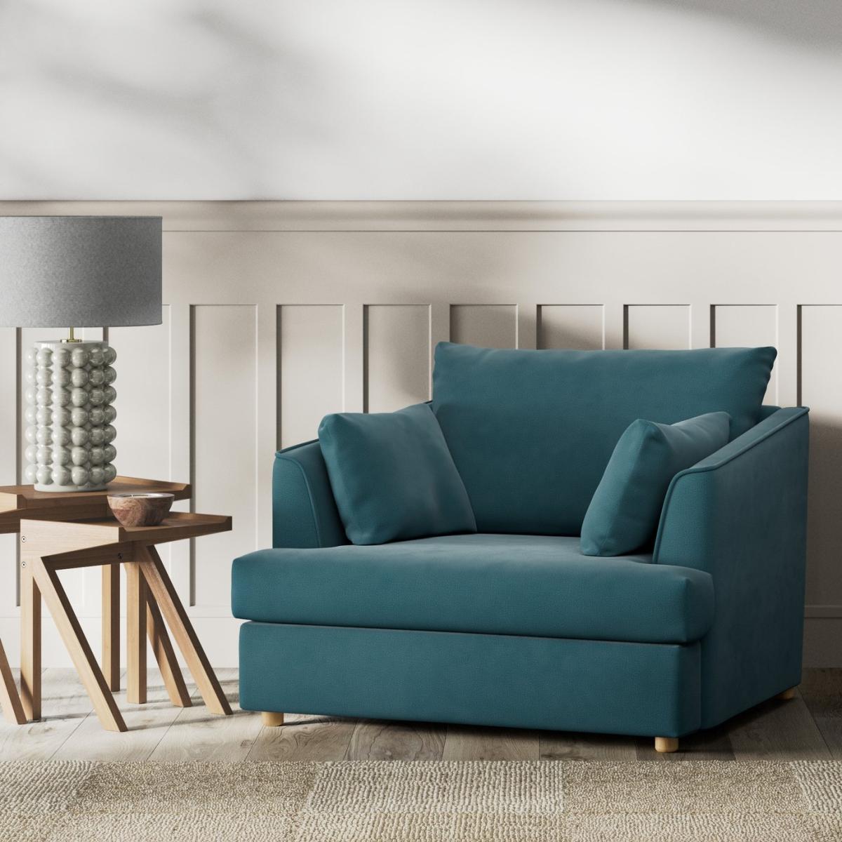 When it's made for you, you know you'll love it. Invitingly soft and ultra-comfortable, our Holmfirth armchair features a wide T-shaped seat cushion that nestles into tapered armrests. Perfect to stretch out and relax on after a long day. And upholstered in a velvety sheen chenille, the Holmfirth takes on a rich, soft, textured look. Finished with thick piped detail, this impressive sofa gives an attractive layered appearance. Offering relaxed comfort Holmfirths high density foam seat cushions sandwiched between softer foam layers and generously wrapped in soft wadding, create a more tailored look while providing the perfect balance of support, durability and recovery. Handmade to order in the UK. The Holmfirth uses quality materials and traditional techniques for furniture thats unique to you. Available in a choice of sizes and fabrics including Aquaclean technology protection built into the yarn, which is easy to clean with just water. Part of the Holmfirth collection. Material: Made from 100% polyester. Wooden feet. Removable seat with foam fibre wrap filling. Removable cushion(s) with foam fibre wrap filling. Free fabric swatch available on this line. Dimensions: Size H86, W114, D110cm. Floor to seat height: 45cm. Depth of seat: 64cm. Height of seat back: 44cm. Width of seating area between arms: 51cm. Height of arm rest: 64cm. Weight: 51kg. Packaged dimensions: Package size H91, W119, D115cm. General information: FSC certified meaning the materials used for this product are responsibly sourced. We do more than deliver your product, we unpack, set it up and take away the packaging. Manufactured in the UK using components sourced globally. Professional clean only. Plump cushions regularly to maintain shape. Manufacturer's 15 year frame guarantee.