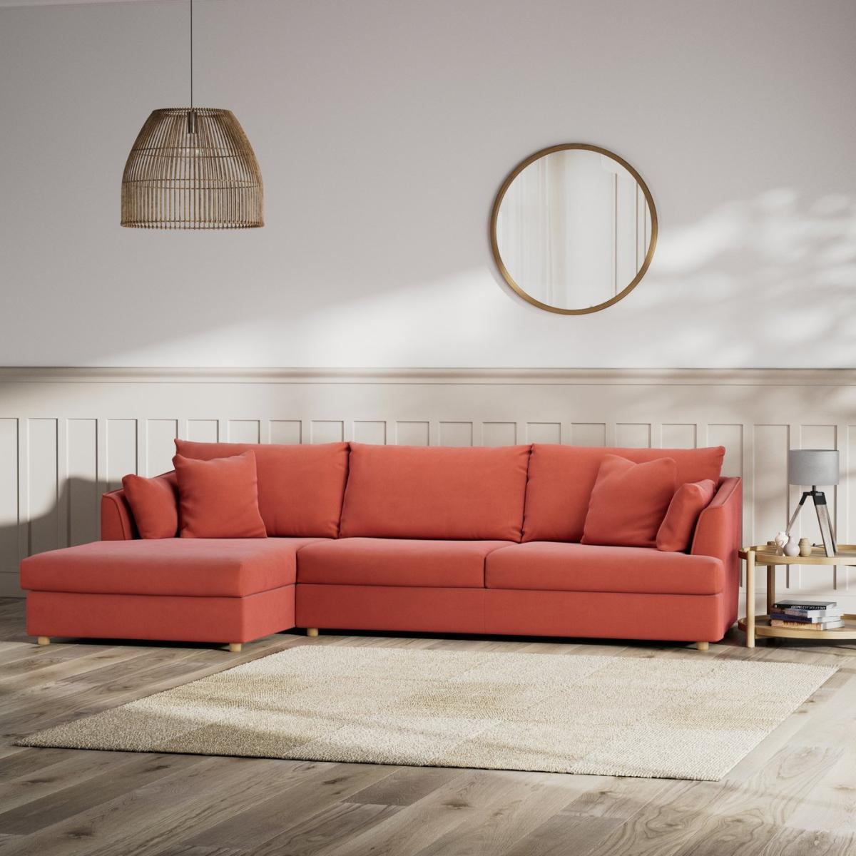 When it's made for you, you know you'll love it. Invitingly soft and ultra comfortable, our Holmfirth 4-seater left hand chaise features wide T-shaped seat cushions that nestle into tapered armrests. Perfect to stretch out and relax on after a long day. And upholstered in a velvety sheen chenille, the Holmfirth takes on a rich, soft, textured look. Finished with thick piped detail and scatter cushions, this impressive 4-seater left hand chaise gives an attractive layered appearance. Offering relaxed comfort Holmfirth's high density foam seat cushions sandwiched between softer foam layers and generously wrapped in soft wadding, create a more tailored look while providing the perfect balance of support, durability and recovery. Handmade to order in the UK. The Holmfirth uses quality materials and traditional techniques for furniture that's unique to you. Available in a choice of sizes and fabrics including Aquaclean technology protection built into the yarn, which is easy to clean with just water. Part of the Holmfirth collection. Left hand corner. Material: Made from 100% polyester. Wooden feet. Removable seats with foam fibre wrap filling. Removable cushion(s) with foam fibre wrap filling. Free fabric swatch available on this line. Dimensions: Size H86, longer width 280.5,. Floor to seat height: 45cm. Depth of seat: 64cm. Height of seat back: 44cm. Longer seating area width between arms: 215.5cm. Height of arm rest: 64cm. Weight: 98kg. Packaged dimensions: Package size H100, W174, D114cm. Second package size H100, W100, D114cm. General information: We do more than deliver your product, we unpack, set it up and take away the packaging. Manufactured in the UK using components sourced globally. Professional clean only. Plump cushions regularly to maintain shape. Manufacturer's 15 year frame guarantee.