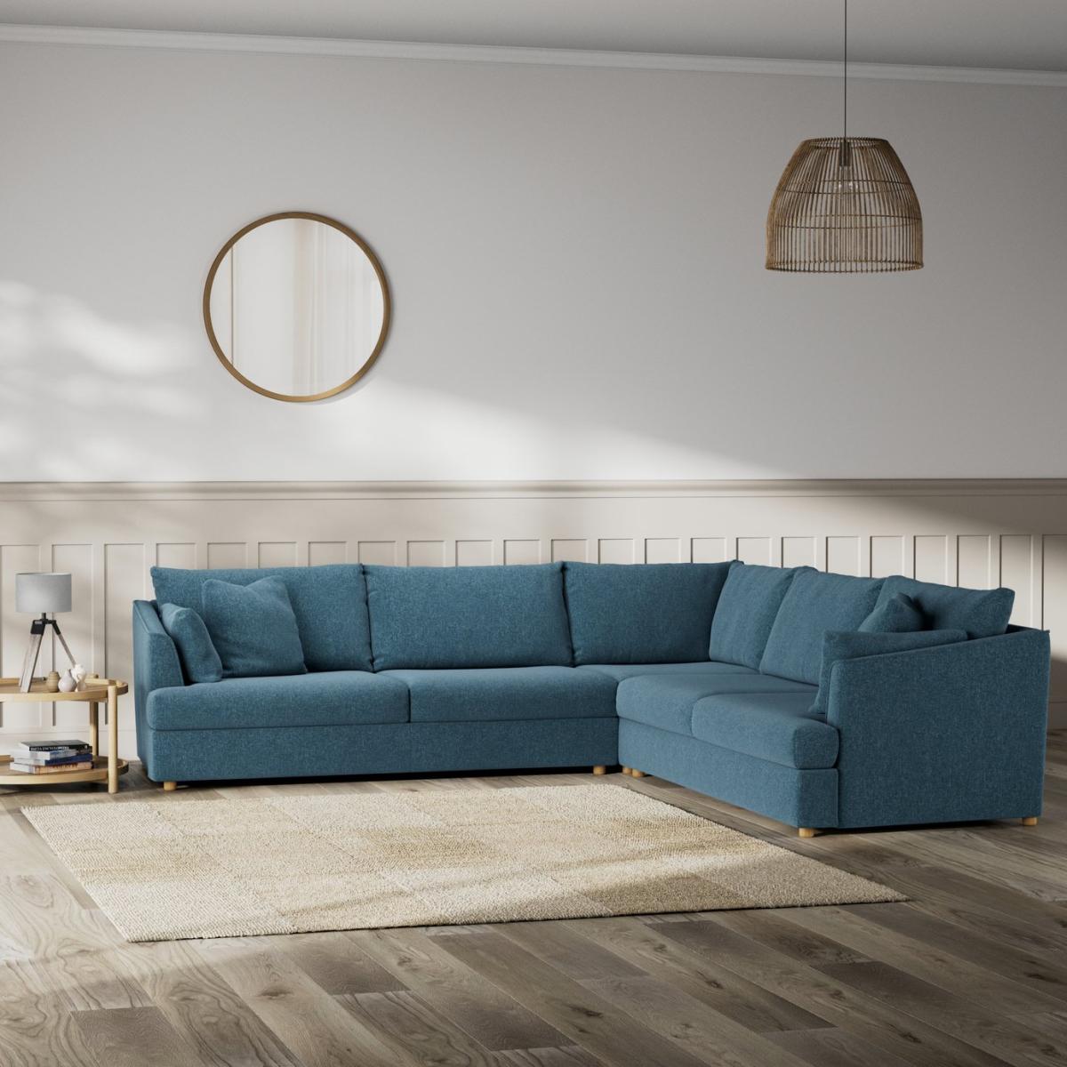 When it's made for you, you know you'll love it. Invitingly soft and ultra comfortable, our Holmfirth 4-seater corner sofa features wide T-shaped seat cushions that nestle into tapered armrests. Perfect to stretch out and relax on after a long day. And upholstered in a contemporary Flat Weave, the Holmfirth has a smooth but tonal look. Finished with thick piped detail and scatter cushions, this impressive 4-seater corner sofa gives an attractive layered appearance. Offering relaxed comfort Holmfirth's high density foam seat cushions sandwiched between softer foam layers and generously wrapped in soft wadding, create a more tailored look while providing the perfect balance of support, durability and recovery. Handmade to order in the UK. The Holmfirth uses quality materials and traditional techniques for furniture that's unique to you. Available in a choice of sizes and fabrics including Aquaclean technology protection built into the yarn, which is easy to clean with just water. Part of the Holmfirth collection. Reversible corner. Material: Made from 100% polyester. Wooden feet. Removable seats with foam fibre wrap filling. Removable cushion(s) with foam fibre wrap filling. Free fabric swatch available on this line. Dimensions: Size H86, longer width 292, shorter width 292,. Floor to seat height: 45cm. Depth of seat: 64cm. Height of seat back: 44cm. Shorter seating area width between arms: 196cm. Longer seating area width between arms: 196cm. Height of arm rest: 64cm. Weight: 120kg. Packaged dimensions: Package size H100, W174, D114cm. Second package size H100, W204, D114cm. General information: FSC certified meaning the materials used for this product are responsibly sourced. We do more than deliver your product, we unpack, set it up and take away the packaging. Manufactured in the UK using components sourced globally. Professional clean only. Plump cushions regularly to maintain shape. Manufacturer's 15 year frame guarantee.