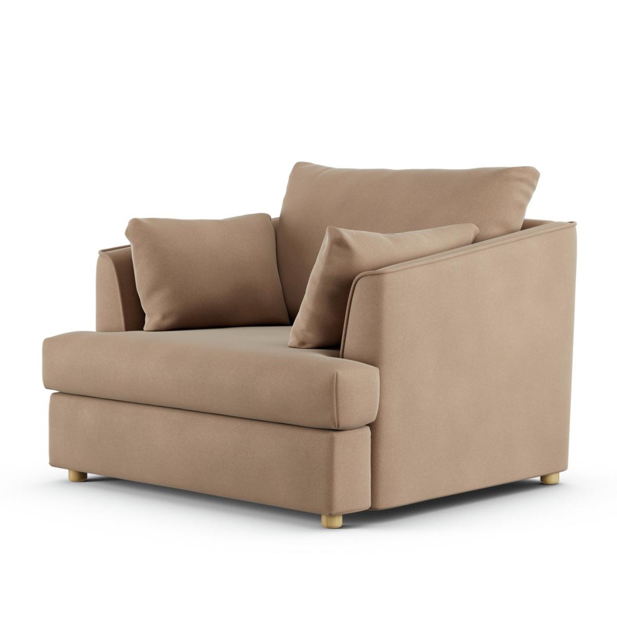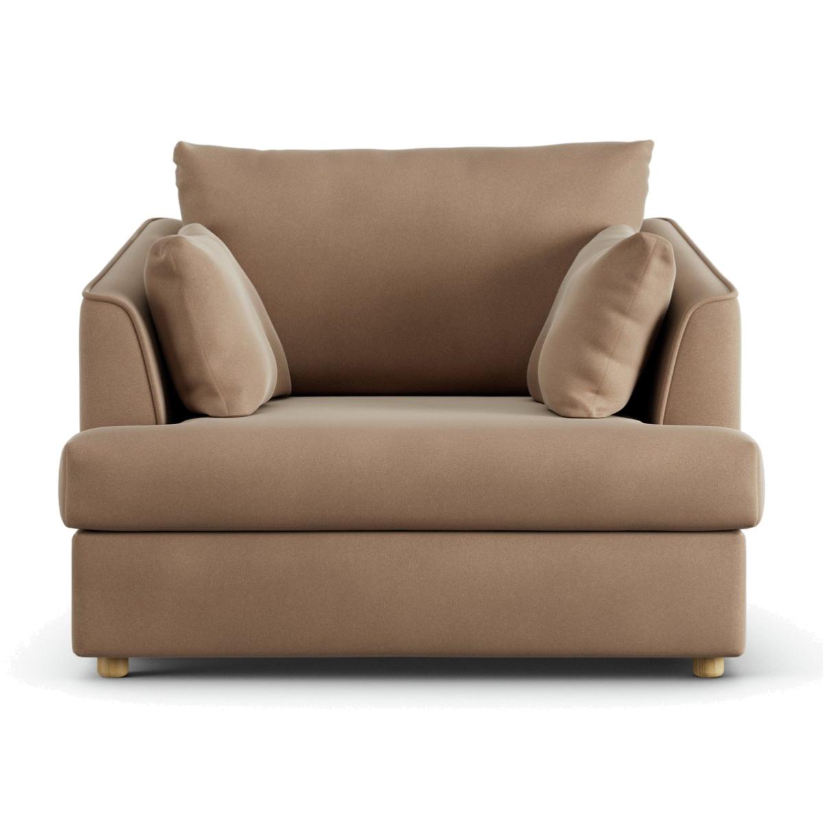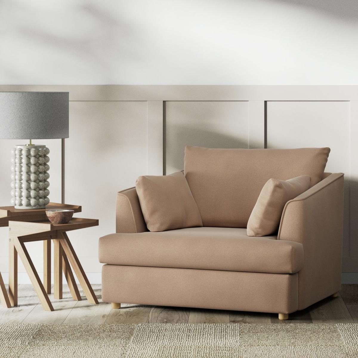 When it's made for you, you know you'll love it. Invitingly soft and ultra-comfortable, our Holmfirth armchair features a wide T-shaped seat cushion that nestles into tapered armrests. Perfect to stretch out and relax on after a long day. And upholstered in rich velvet, it takes on a luxe look. Finished with thick piped detail, this impressive sofa gives an attractive layered appearance. Offering relaxed comfort Holmfirth's high density foam seat cushions sandwiched between softer foam layers and generously wrapped in soft wadding, create a more tailored look while providing the perfect balance of support, durability and recovery. Handmade to order in the UK. The Holmfirth uses quality materials and traditional techniques for furniture that's unique to you. Available in a choice of sizes and fabrics including Aquaclean technology protection built into the yarn, which is easy to clean with just water. Part of the Holmfirth collection. Material: Made from 100% recycled polyester. Wooden feet. Removable seat with foam fibre wrap filling. Removable cushion(s) with foam fibre wrap filling. Dimensions: Size H86, W114, D110cm. Floor to seat height: 45cm. Depth of seat: 64cm. Height of seat back: 44cm. Width of seating area between arms: 51cm. Height of ARM rest: 64cm. Weight: 51kg. Packaged dimensions: Package size H91, W119, D115cm. General information: We do more than deliver your product, we unpack, set it up and take away the packaging. Manufactured in the UK using components sourced globally. Professional clean only. Plump cushions regularly to maintain shape. Manufacturer's 15 year frame guarantee.