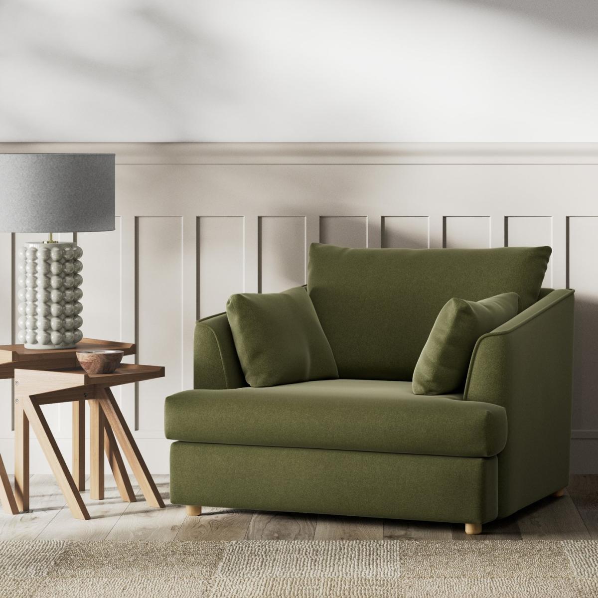When it's made for you, you know you'll love it. Invitingly soft and ultra-comfortable, our Holmfirth armchair features a wide T-shaped seat cushion that nestles into tapered armrests. Perfect to stretch out and relax on after a long day. And upholstered in rich velvet, it takes on a luxe look. Finished with thick piped detail, this impressive sofa gives an attractive layered appearance. Offering relaxed comfort Holmfirths high density foam seat cushions sandwiched between softer foam layers and generously wrapped in soft wadding, create a more tailored look while providing the perfect balance of support, durability and recovery. Handmade to order in the UK. The Holmfirth uses quality materials and traditional techniques for furniture thats unique to you. Available in a choice of sizes and fabrics including Aquaclean technology protection built into the yarn, which is easy to clean with just water. Part of the Holmfirth collection. Material: Made from 100% recycled polyester. Wooden feet. Removable seat with foam fibre wrap filling. Removable cushion(s) with foam fibre wrap filling. Free fabric swatch available on this line. Dimensions: Size H86, W114, D110cm. Floor to seat height: 45cm. Depth of seat: 64cm. Height of seat back: 44cm. Width of seating area between arms: 51cm. Height of arm rest: 64cm. Weight: 51kg. Packaged dimensions: Package size H91, W119, D115cm. General information: FSC certified meaning the materials used for this product are responsibly sourced. We do more than deliver your product, we unpack, set it up and take away the packaging. Manufactured in the UK using components sourced globally. Professional clean only. Plump cushions regularly to maintain shape. Manufacturer's 15 year frame guarantee.