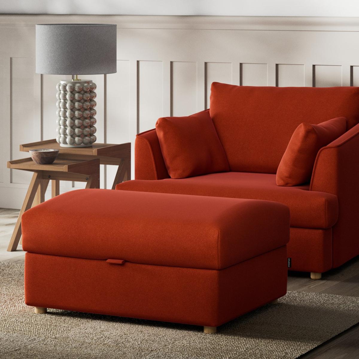 When it's made for you, you know you'll love it. Whether you're resting your feet, or using it as a seat, the Holmfirth footstool is soft and inviting. Impressive too, with piped detailing and a layered appearance. Upholstered in a rich velvet, it takes on a luxe look. Generously padded it's the perfect laid back companion to the Holmfirth sofa or chair. Offering relaxed comfort Holmfirths high density foam seat cushions sandwiched between softer foam layers and generously wrapped in soft wadding, create a more tailored look while providing the perfect balance of support, durability and recovery. Handmade to order in the UK. The Holmfirth uses quality materials and traditional techniques for furniture that's unique to you. Available in a choice of sizes and fabrics including Aquaclean technology protection built into the yarn, which is easy to clean with just water. Part of the Holmfirth collection. Material: Made from 100% recycled polyester. Wooden feet. Fixed cushion(s) with foam fibre wrap filling. Free fabric swatch available on this line. Dimensions: Size H42, W80, D62cm. Weight: 20kg. General information: FSC certified meaning the materials used for this product are responsibly sourced. We do more than deliver your product, we unpack, set it up and take away the packaging. Manufactured in the UK using components sourced globally. Professional clean only. Manufacturer's 2 year frame guarantee. Packaged dimensions: Package size H47, W85, D67cm.