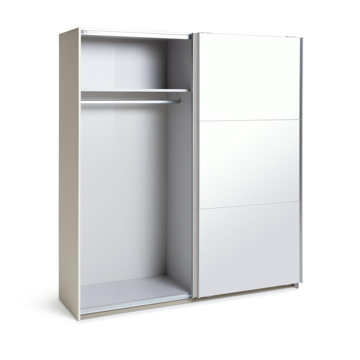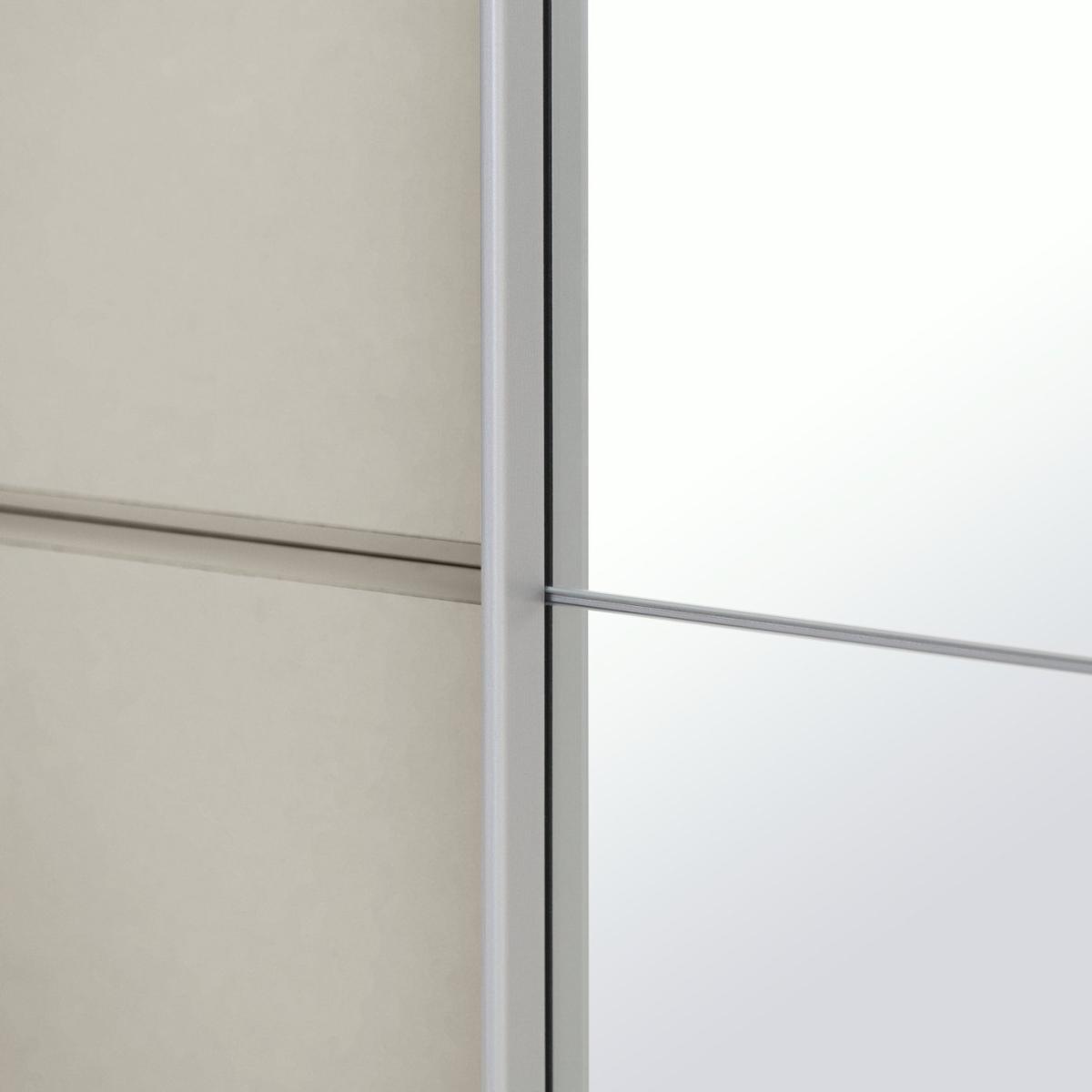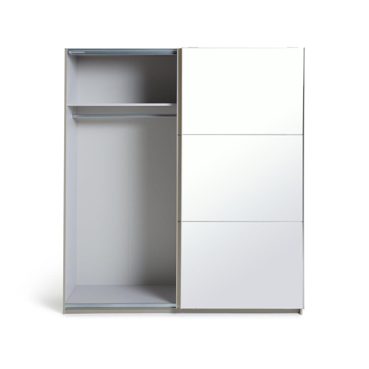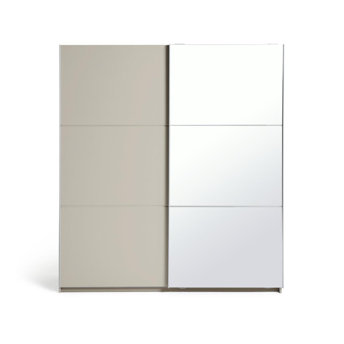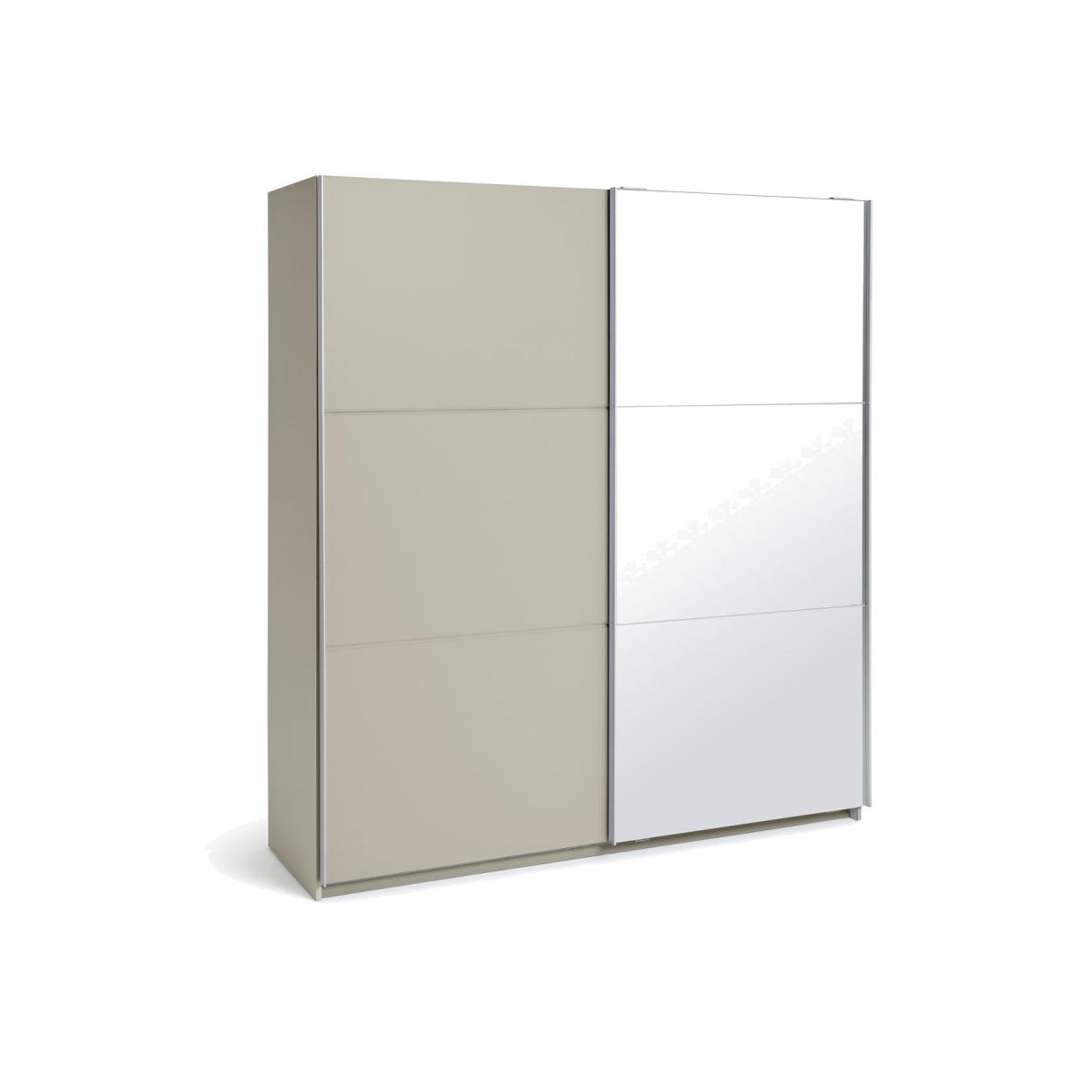 Fresh and contemporary in soft grey, our Holsted mirrored wardrobe offers plenty of storage. Streamlined and space saving, the 2 doors glide smoothly on German engineered metal runners. A full width rail and top shelf provides lots of hanging room and stacking space.