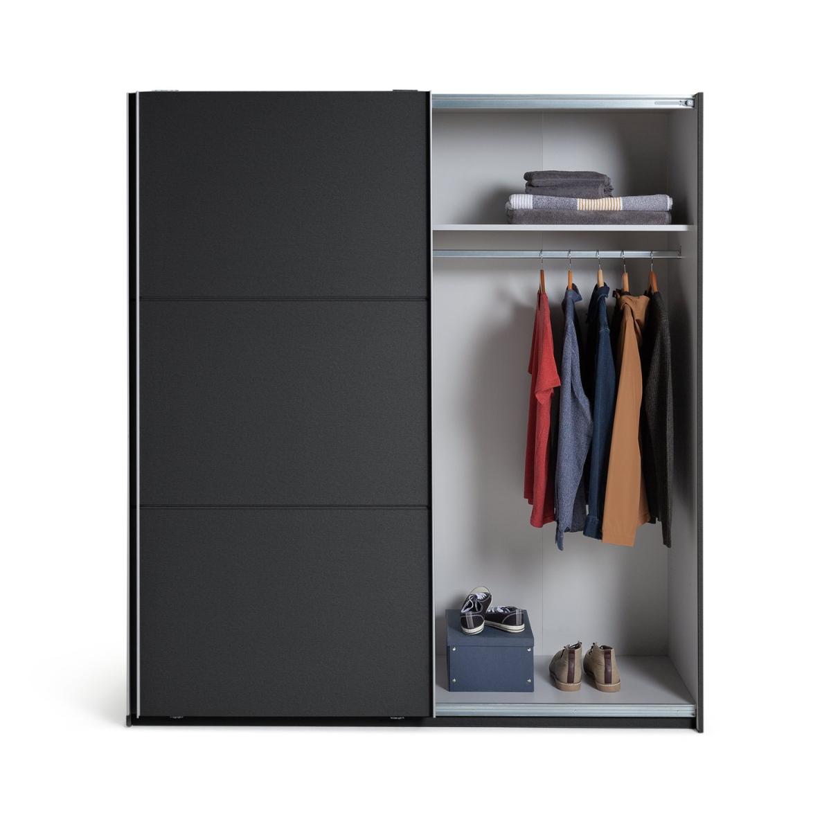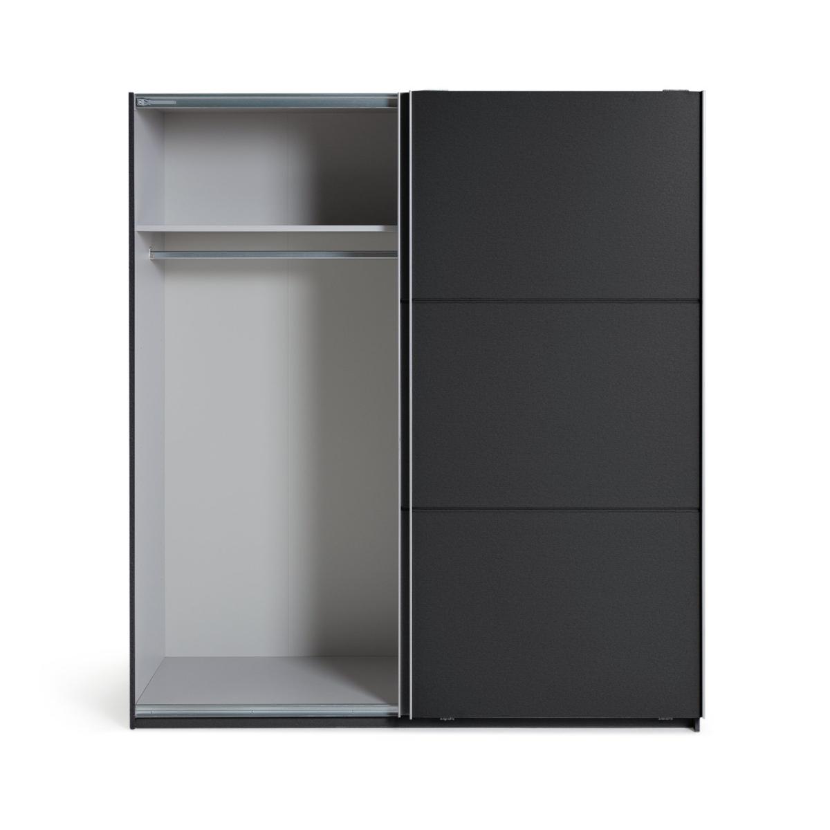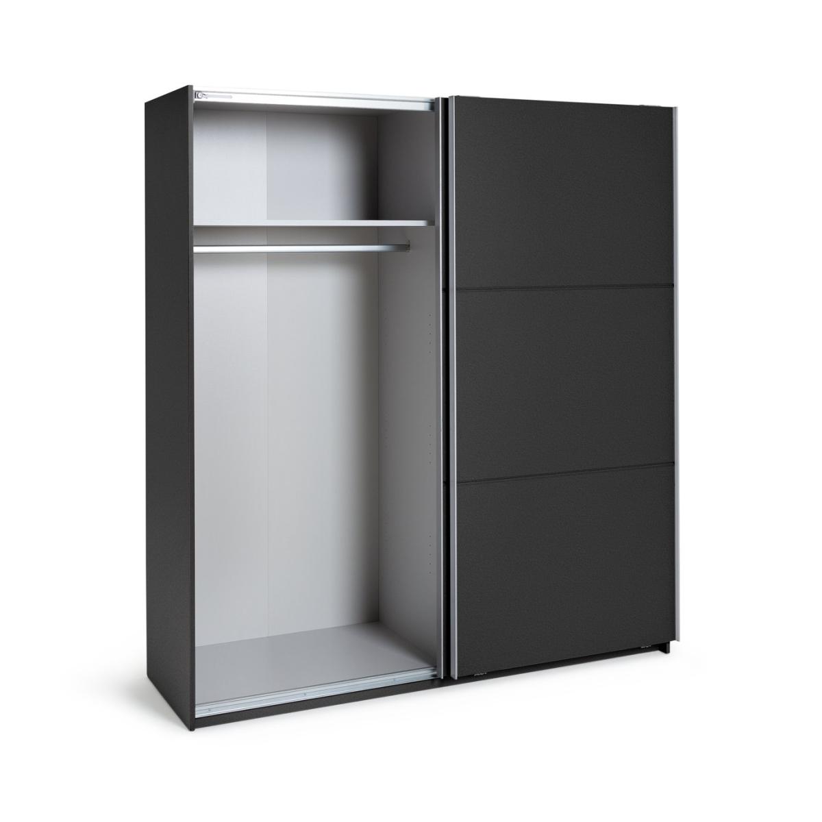 Smart and contemporary, our Holsted dark grey sliding wardrobe offers plenty of storage. Streamlined and space saving, the 2 doors glide smoothly on German engineered metal runners. A full width rail and top shelf provides lots of hanging room and stacking space.