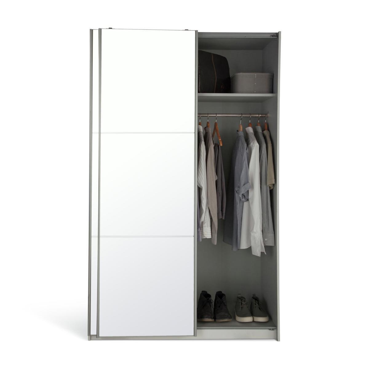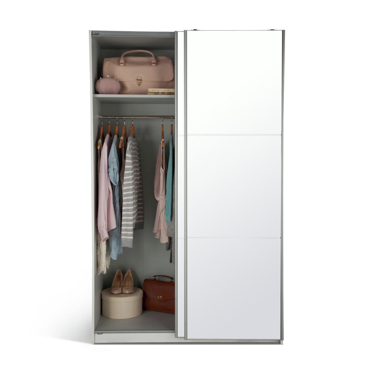 Get a fabulous, cool and contemporary look for your bedroom with our Holsted sliding wardrobe. See how the mirrored front reflects the light to create a fresh, open feel. Set on smooth metal runners (German engineering don't you know! ), the 2 sliding doors have a fluid, streamlined look. Perfect for smaller bedrooms where you don't have space for doors that swing open. Plenty of room for hanging and storage thanks to a full width rail and top shelf. Simply sensational.