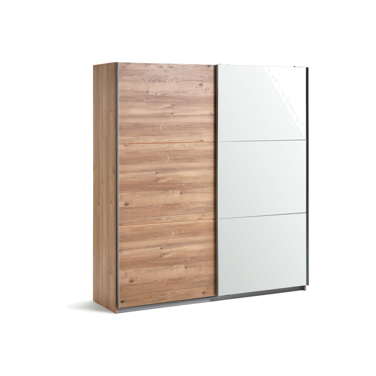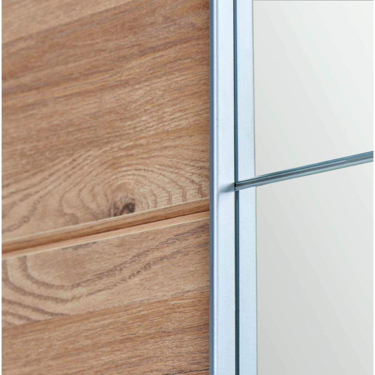Get a fabulous, cool and contemporary look for your bedroom with our Holsted sliding wardrobe. See how the blend of an oak veneered and mirrored front style creates a fresh and light feel. Set on smooth metal runners (German engineering don't you know! ), the 2 sliding doors have a fluid, streamlined look. Perfect for smaller bedrooms where you don't have space for doors that swing open. Plenty of room for hanging and storage thanks to a full width rail and top shelf - deep, spacious and stylishly smooth.