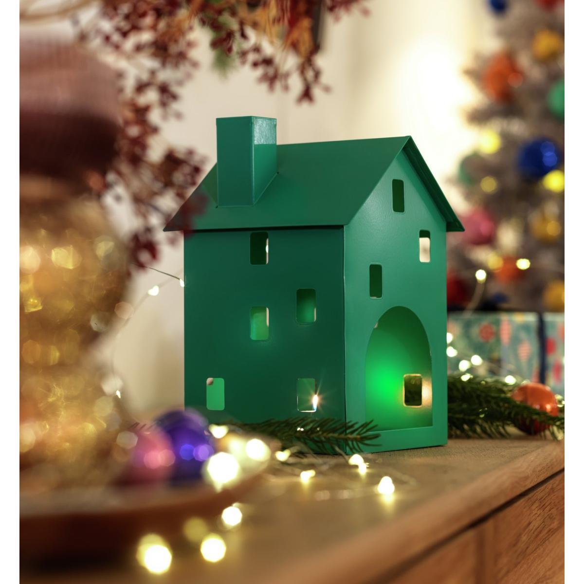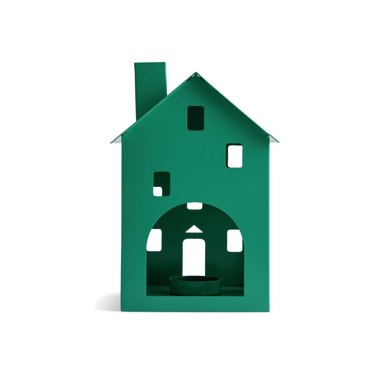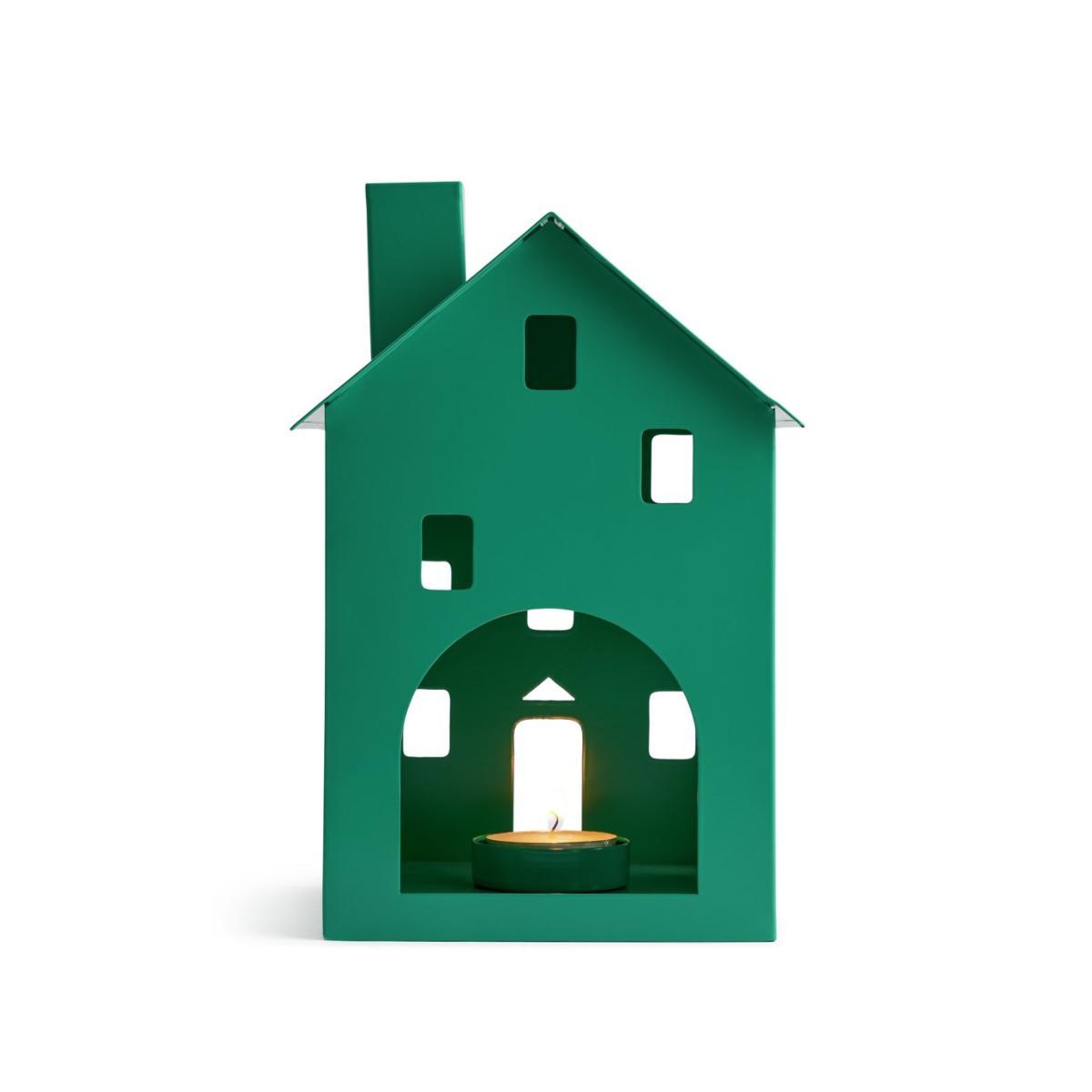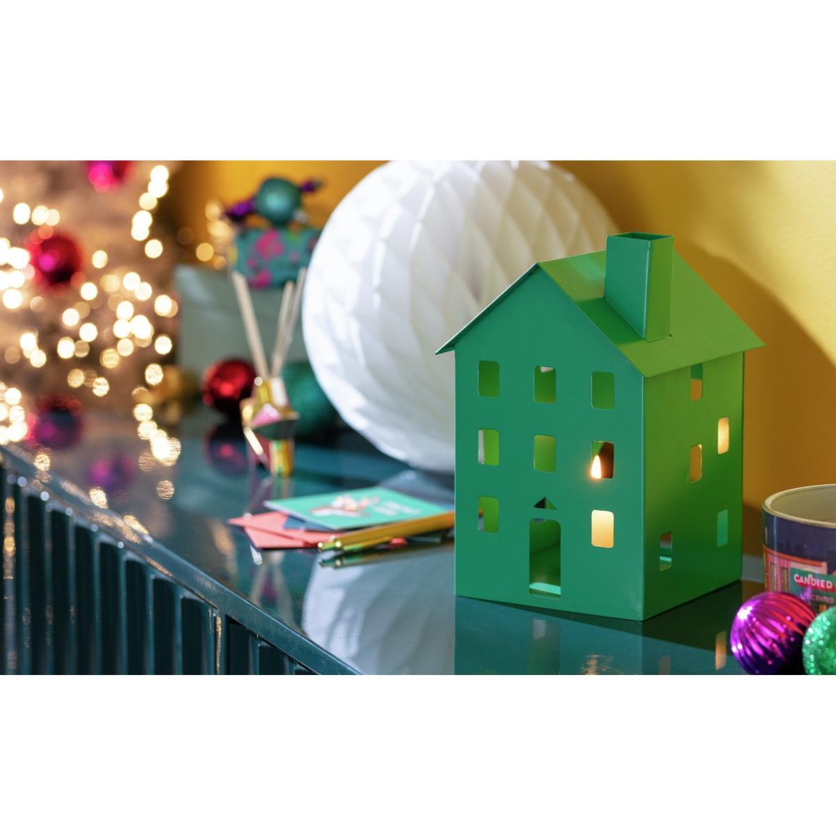 Feel at home with our house-shaped tea light holder. Cute, contemporary and styled in a green powder coated metal finish. Bring a touch of character to your mantle or sideboard with this charming candle holder. Lovely at Christmas time, or the whole year round. Just pop a tea light inside, relax in its warm, ambient glow. Home from home.