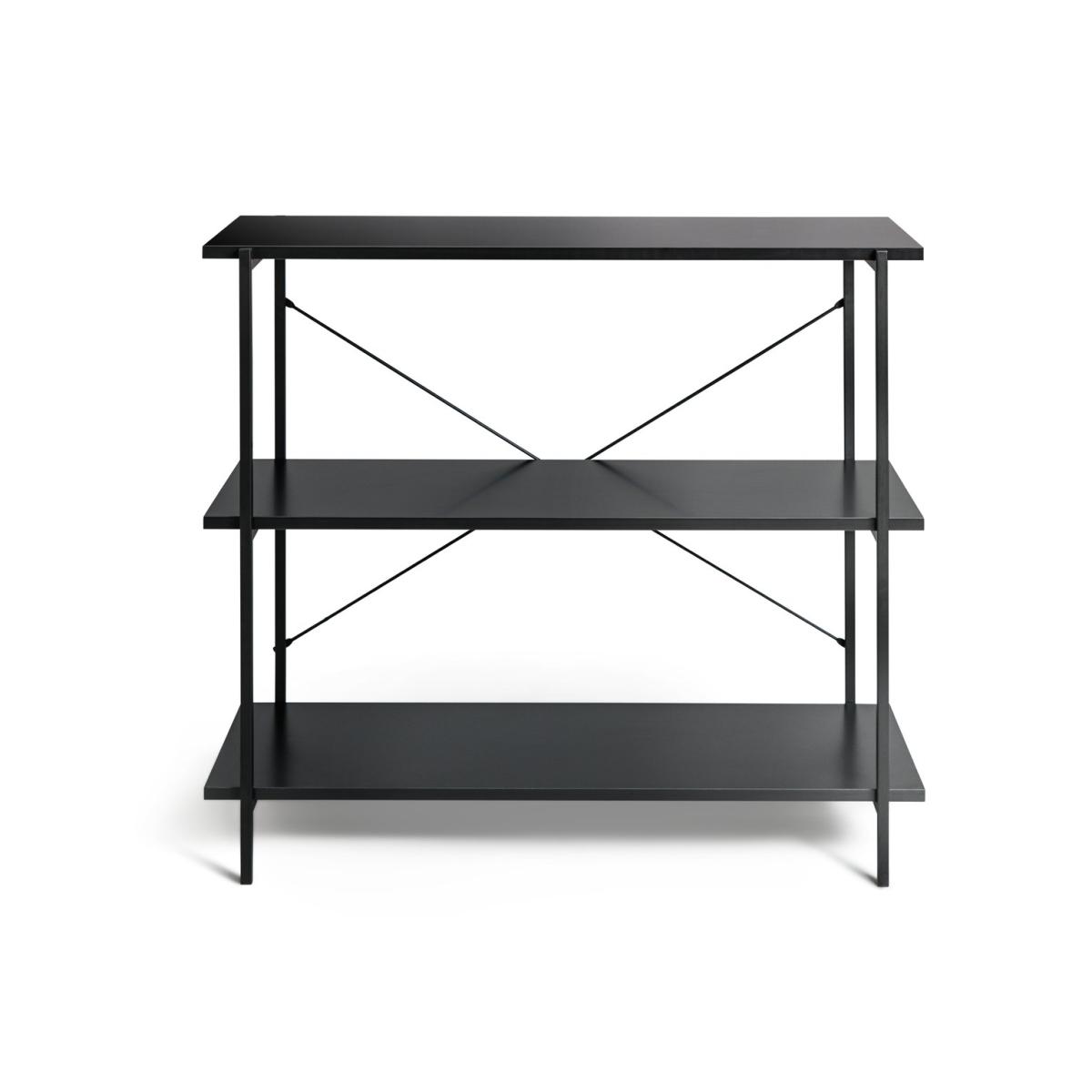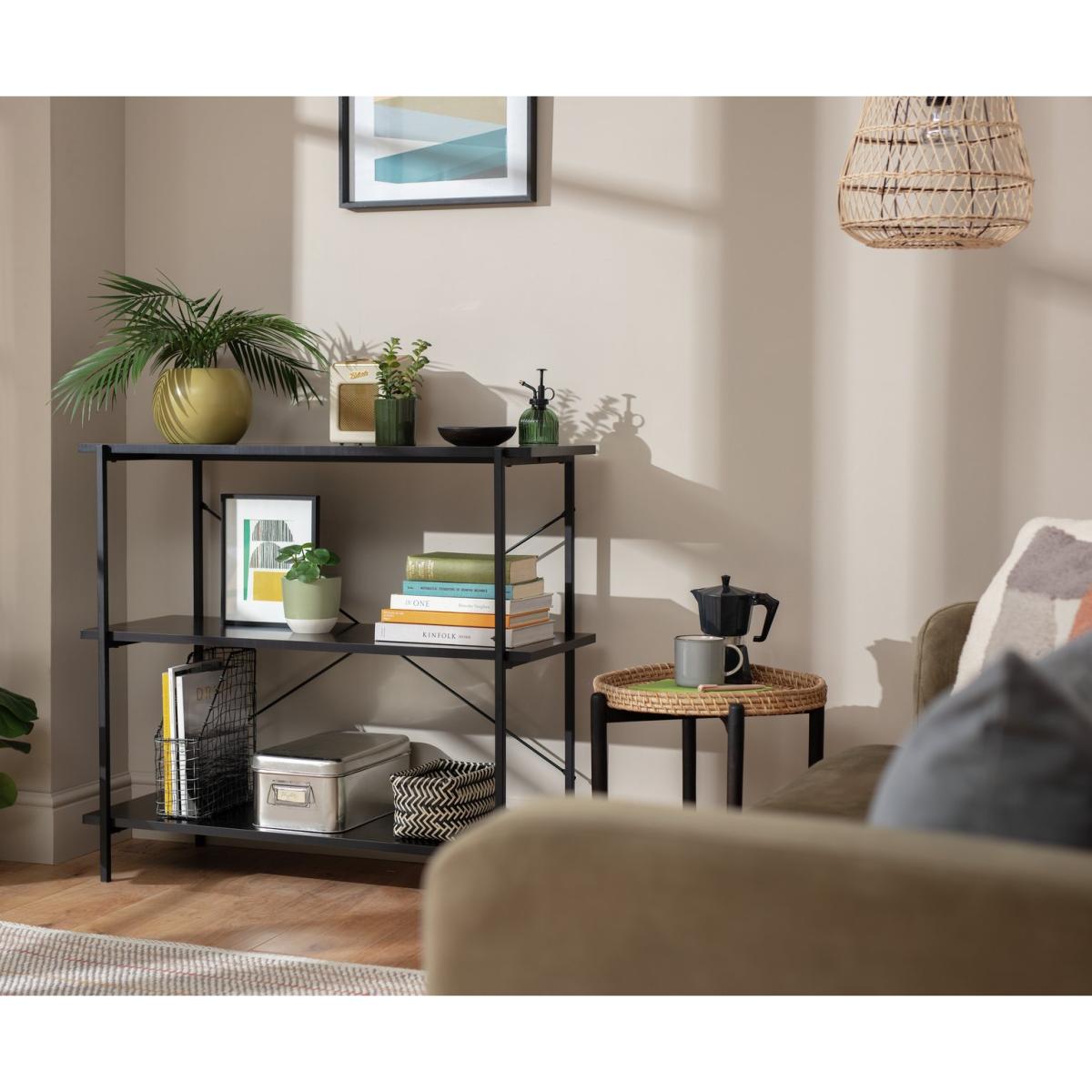 How useful is this Huckley shelving unit? Very. Standing free and crafted from stark black steel, its industrial credentials are on display. Yet Huckley loves showing off a softer side. See how pots, plants and artwork look comfortably at home nestled between books or boxes on the 3 tiers. A practical piece with a very long shelf life. Pair with more of our industrial items to create a modular look.