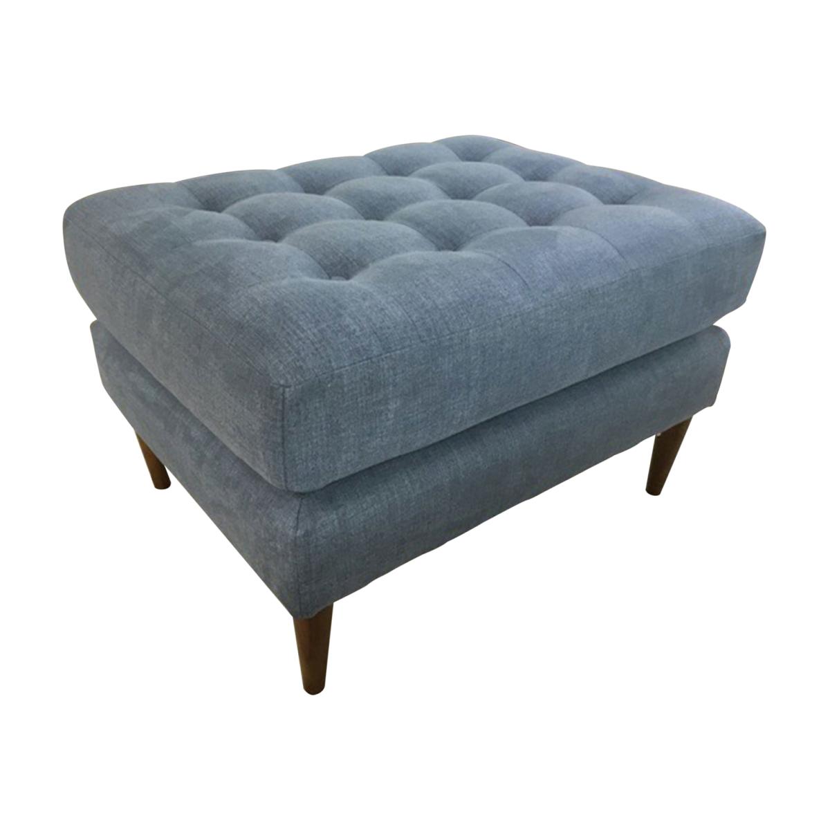 Buttoned-down British chic. Bursting with charm, Hudson wouldn't look out of place in a private members club or boutique hotel in the countryside. Upholstered in soft-touch, blue fabric with buttoning on the top, it's got that classic Chesterfield look, but slender wooden feet give it a modern edge. The perfect addition to stylish sitting rooms across the kingdom.