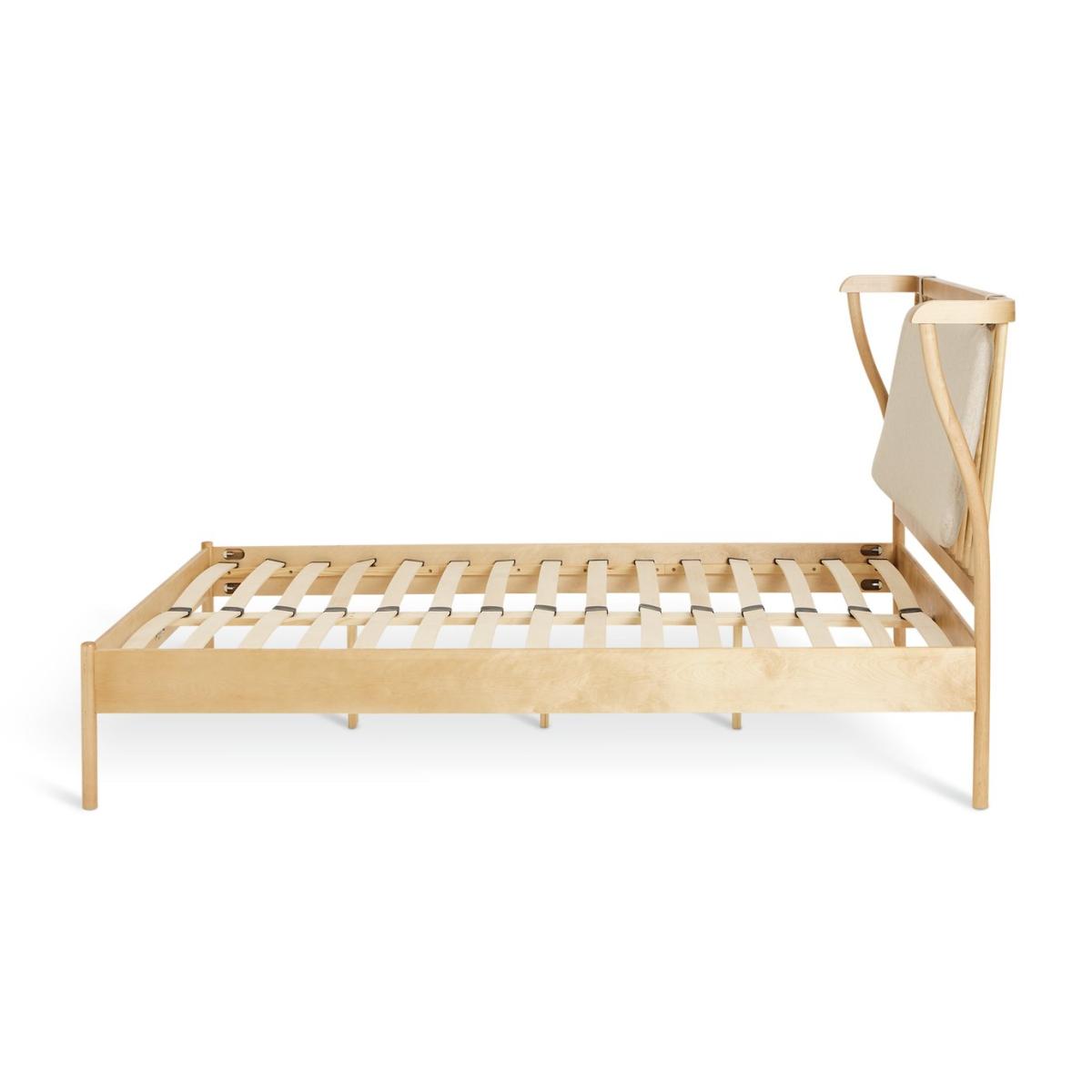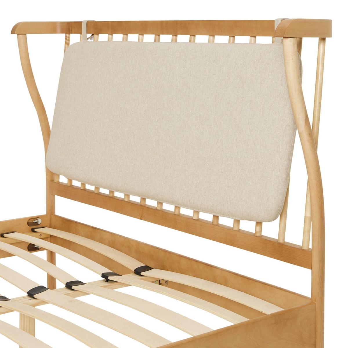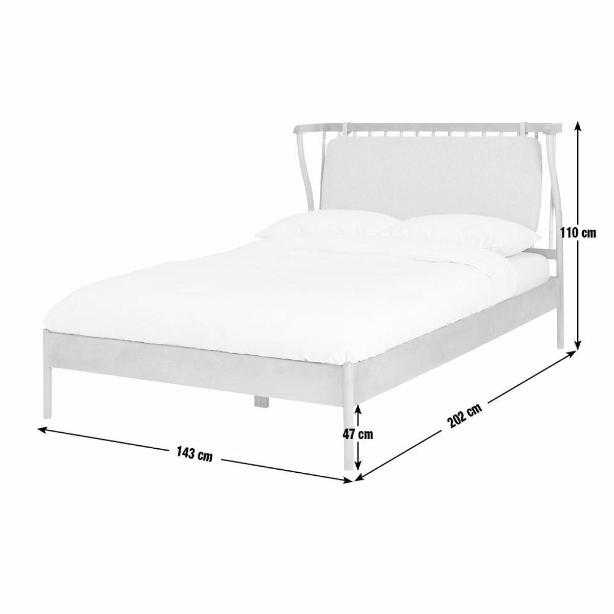 Retro looks. Comfort where it matters. Hugh blends sculptural curves and spindle details with a cushioned back pad. This removable fabric-wrapped headboard velcros on when you want extra softness, and off when you want clean lines. Slim wooden wings make you feel snug as a bug. Set on solid wood legs with a sprung slatted base for built-in bounce and proper mattress support. This bed is designed to give sleepy heads a good night's rest. Part of the Hugh collection. Wooden feet. Base with wooden slats. No storage. Size W143, L202, H110cm. 47cm clearance between floor and underside of bed. Weight 30.3kg. Total maximum user weight 110kg. Self-assembly - 2 people recommended. Package Dimensions: Package 1 dimensions: H28.5, W117.5, D150cm. Package 1 weight: 20.55kg. Package 2 dimensions: H10, W43, D198cm. Package 2 weight: 19.25kg. General Information: By choosing FSC certified products, you are supporting responsible management of the world's forests. Manufacturer's 2 year guarantee.