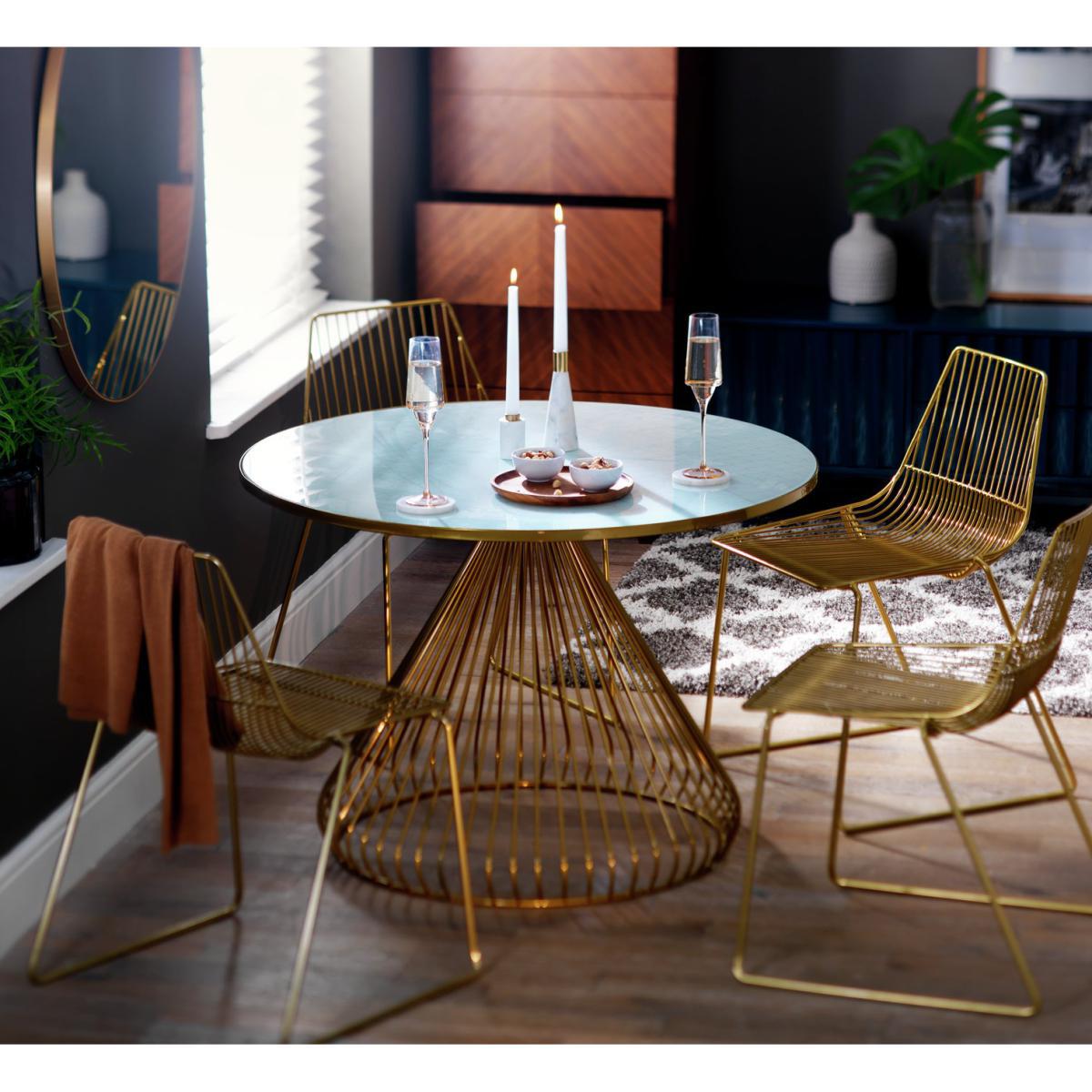 Habitat Huxley Metal Dining Table and 4 Brass Chairs