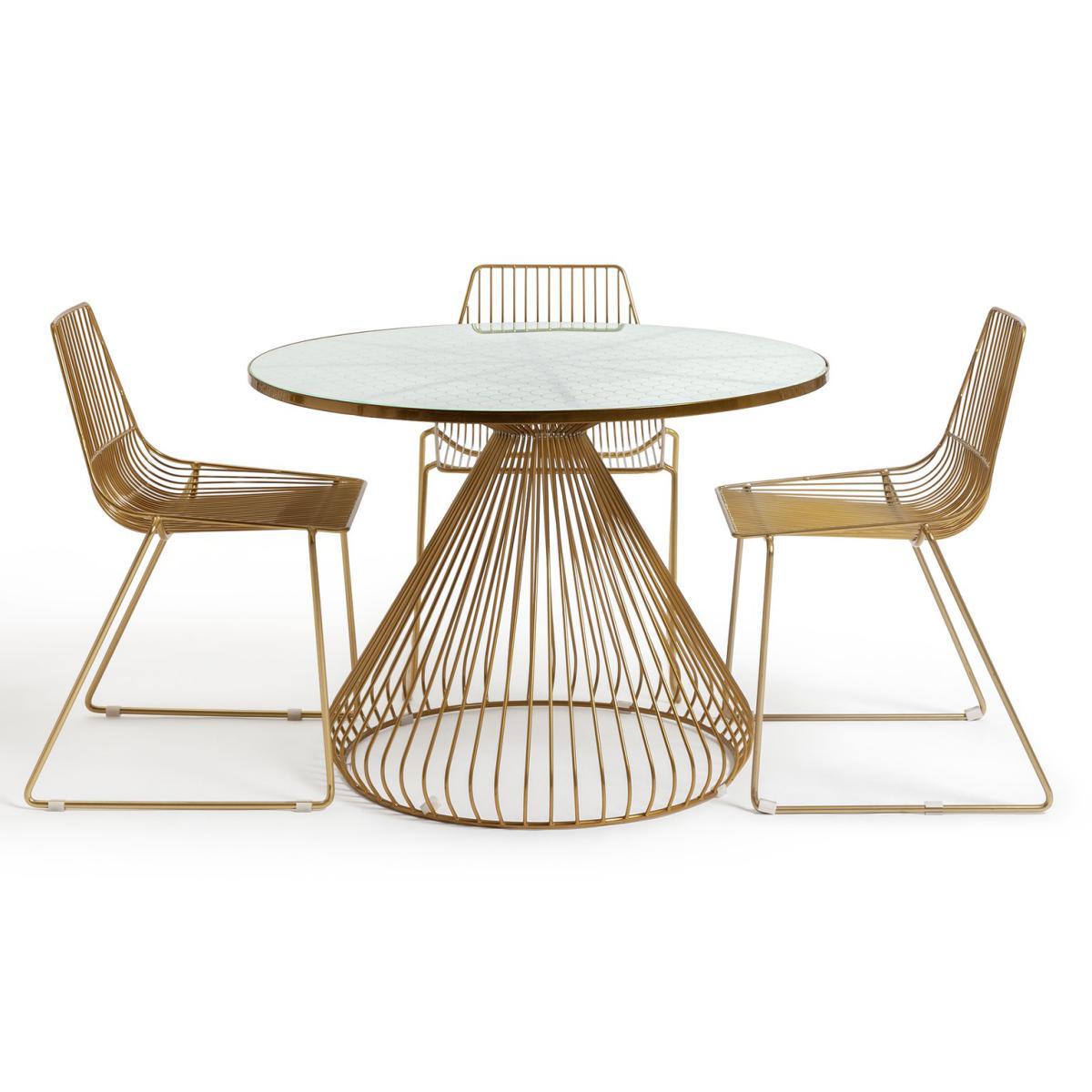 I love this set because the metal table combined with brass chairs creates a sleek, modern aesthetic with a touch of elegance. It works particularly well in contemporary or industrial-style interiors, but can also bring a chic contrast into more eclectic or minimalist spaces. Practical styling tips include pairing it with neutral or textured tableware to keep the look balanced, and adding a cosy rug underneath to soften the metallic finish. The brass chairs bring warmth and a subtle luxe vibe, making it ideal for both everyday dining and more polished entertaining setups. This set is versatile, and with the right accessories, it can easily become a statement piece in a variety of interiors.