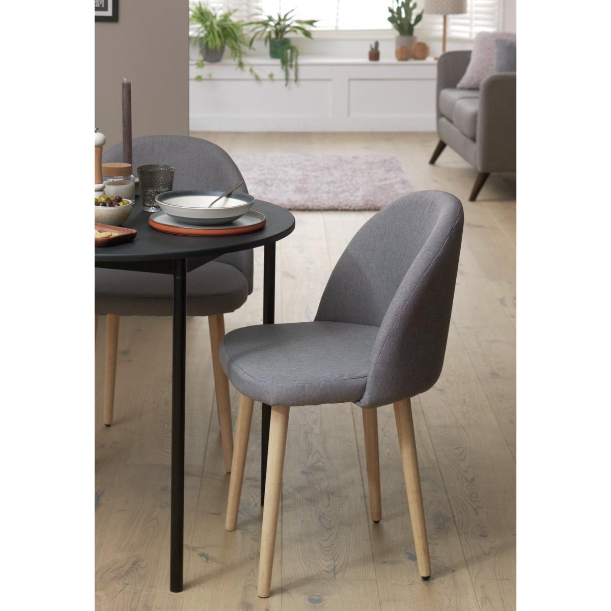 I love these dark fabric chairs for their sleek, contemporary look that can easily complement both minimalist and eclectic interiors. Their black upholstery adds a touch of sophistication and works particularly well in modern kitchens or dining rooms aiming for a chic but understated vibe. Practical styling tips include pairing them with a light wood or marble table to create a pleasing contrast, or layering with textured textiles and metallic accessories for a more curated space. They're versatile enough to work in both small and larger dining areas, and their neutral tone allows for flexible colour pops through tableware, cushions, or surroundings.