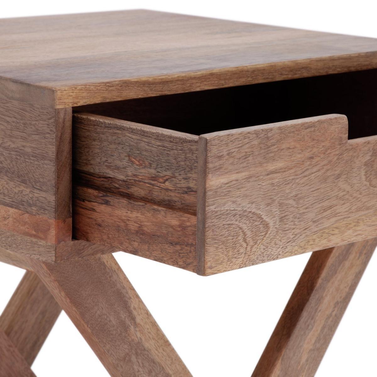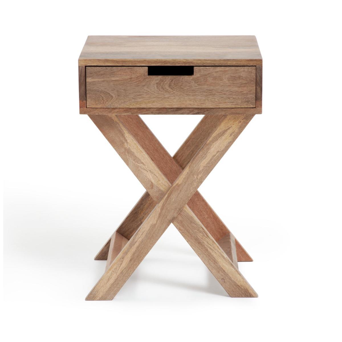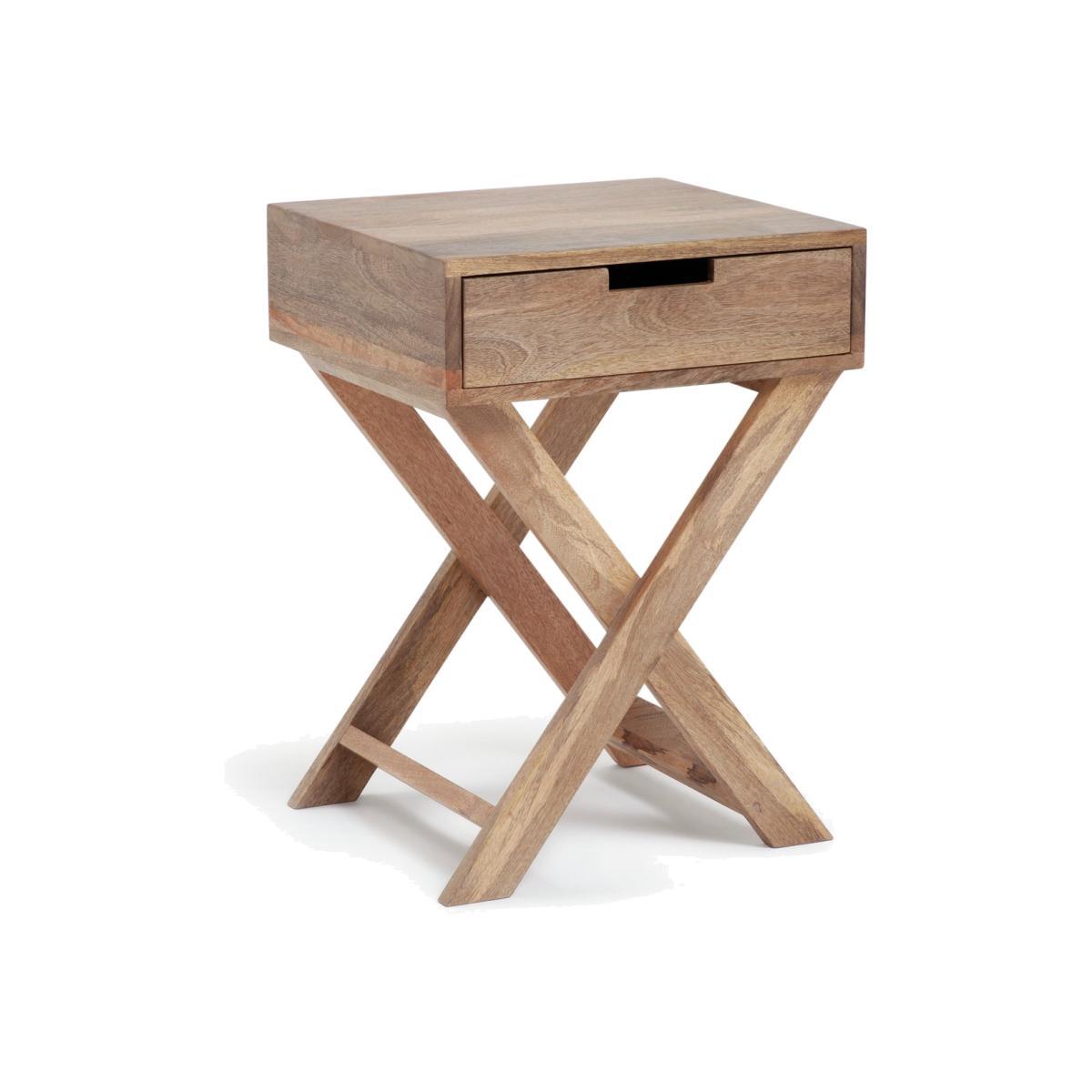 With it's beautiful on trend Mango wood finish, this bedside table is naturally stylish. The design is smooth and clean while the wood exudes warmth. The smooth grain top, generous drawer and airy X shape legs make it a dream to have in your bedroom. There's ample room on top for a lamp, your phone, a book. For out of sight essentials, the deep drawer can take it all. Tissues, make up, face cream, pills and other bits and bobs you need close to hand. Invite it into your bedroom, it's a natural beauty.