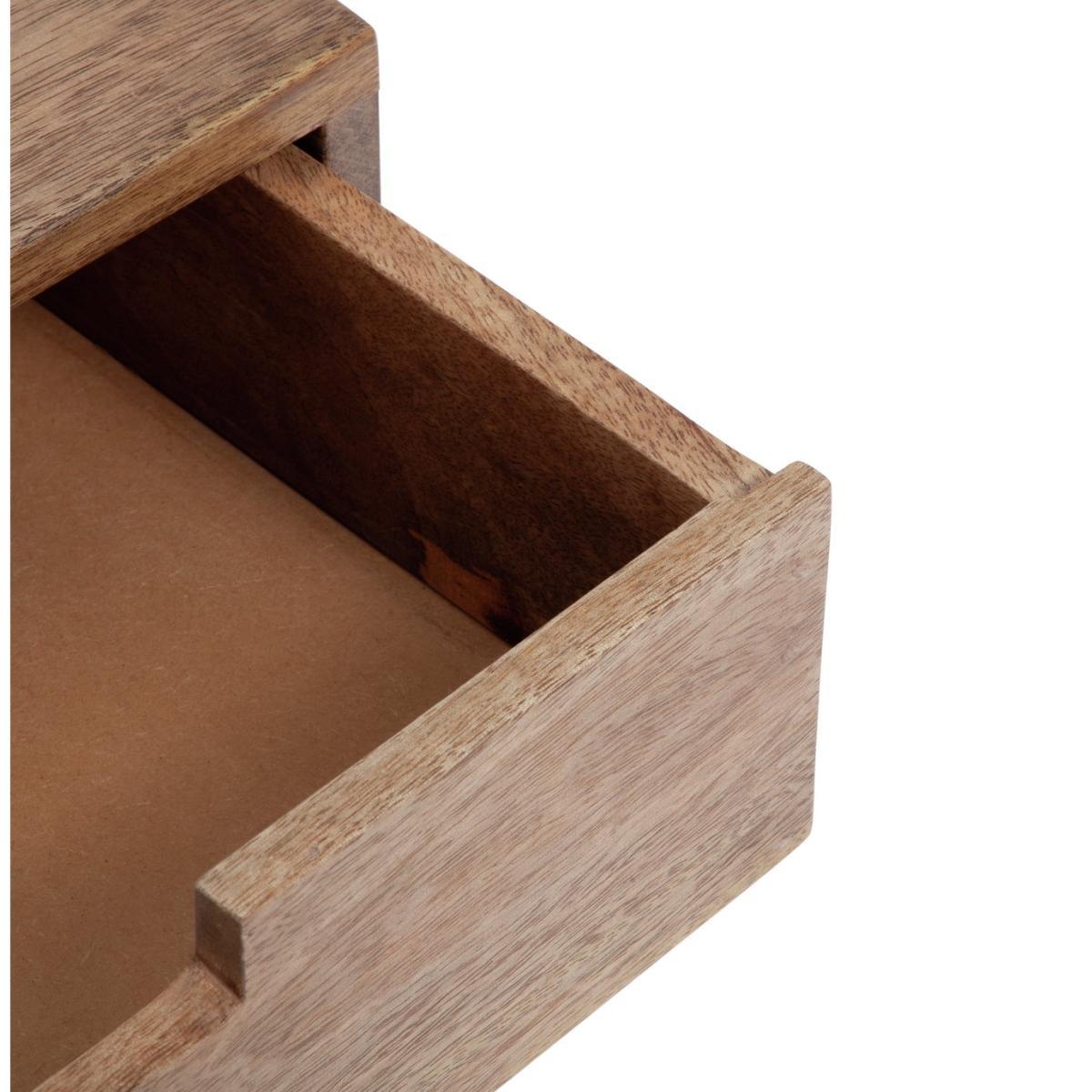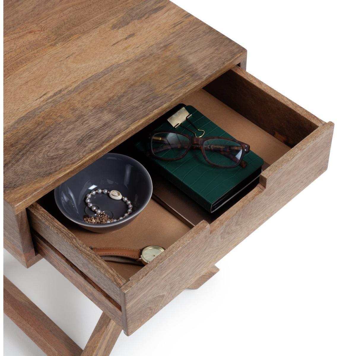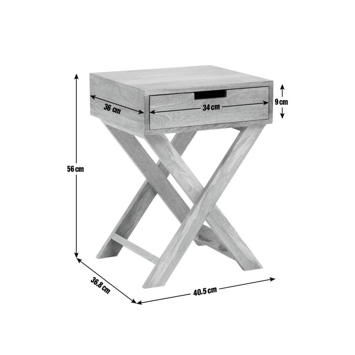 With it's beautiful on trend Mango wood finish, this bedside table is naturally stylish. The design is smooth and clean while the wood exudes warmth. The smooth grain top, generous drawer and airy X shape legs make it a dream to have in your bedroom. There's ample room on top for a lamp, your phone, a book. For out of sight essentials, the deep drawer can take it all. Tissues, make up, face cream, pills and other bits and bobs you need close to hand. Invite it into your bedroom, it's a natural beauty.