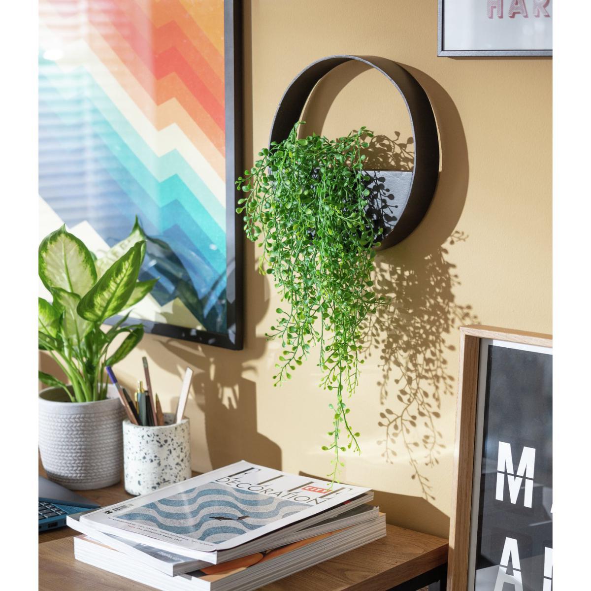 Liven up your living space with this contemporary wall shelf and faux hanging plant. Adding a touch of greenery to your decor, this bold and unrefined piece gives you all the visual enjoyment of a living plant without the maintenance. The circular design has a pared back industrial feel that adds instant character to any space.