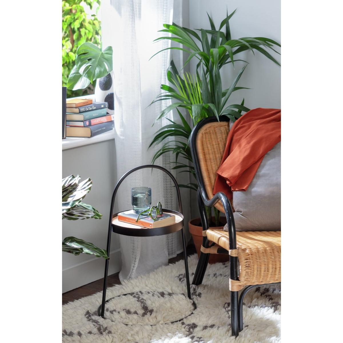 I love this little black side table for its versatility and modern industrial vibe. It works particularly well in contemporary homes with minimal or urban themes, but also adds a touch of edge to more eclectic interiors. The open-frame design keeps it lightweight and easy to style with a small lamp, a stack of books, or a decorative plant. My tip would be to position it near a sofa or armchair, complementing textured fabrics or metallic accents. Its understated style makes it a practical and stylish choice for both functional placement and decorative appeal.