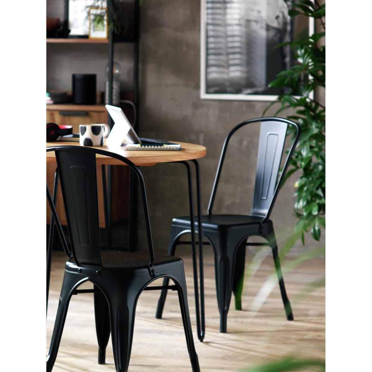 Metal marvels. Give your dining space an industrial makeover with this pair of Habitat dining chairs. Crafted from sturdy metal and finished in smart matt black, they'll give your room a modern feel. Add cushions for extra squidge or leave them exposed to showcase their stunning good looks. And because they're metal, you can use them outside too. Industrial impact.