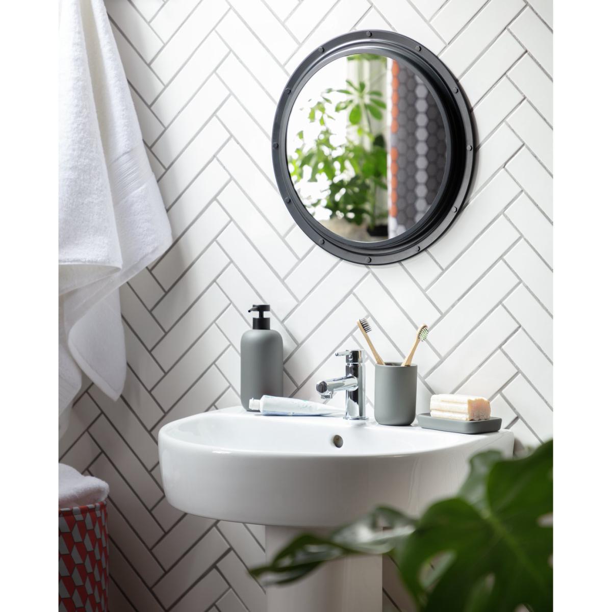 I really like this round wall mirror for its sleek, industrial look, making it versatile for various interiors. It works particularly well in modern or minimalist spaces, but can also add an edge to more vintage or eclectic settings. The black frame provides a bold contrast that complements exposed brick, metal finishes, or plain painted walls. For styling tips, consider mounting it above a console table or alongside other industrial-inspired accessories to create a focal point. It’s also practical to position it near entryways or in the bedroom for everyday use, where its clean design can help bounce light around and make spaces feel larger and brighter.
