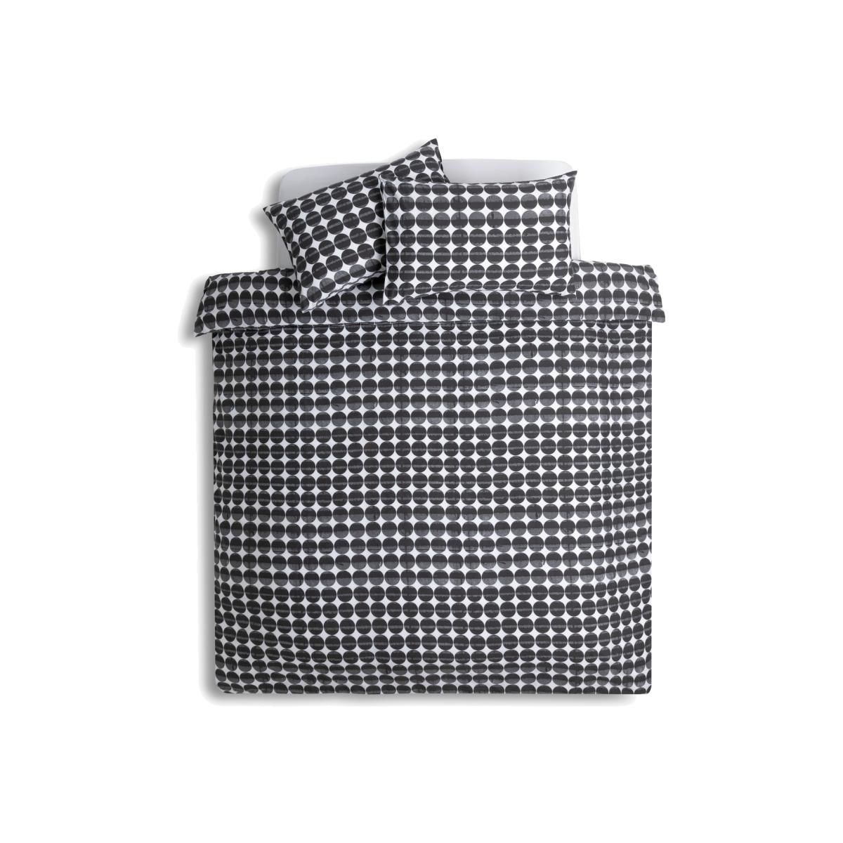 Snooze in circles. Our shapely duvet set brings a modern monochrome feel to the bedroom. The bold pattern and black and white tones are simply striking. Soft, lightweight polycotton means it lovely to lie in and durable, too. Vibrant or neutral decor? This set works with either. Roll over, that's my spot.