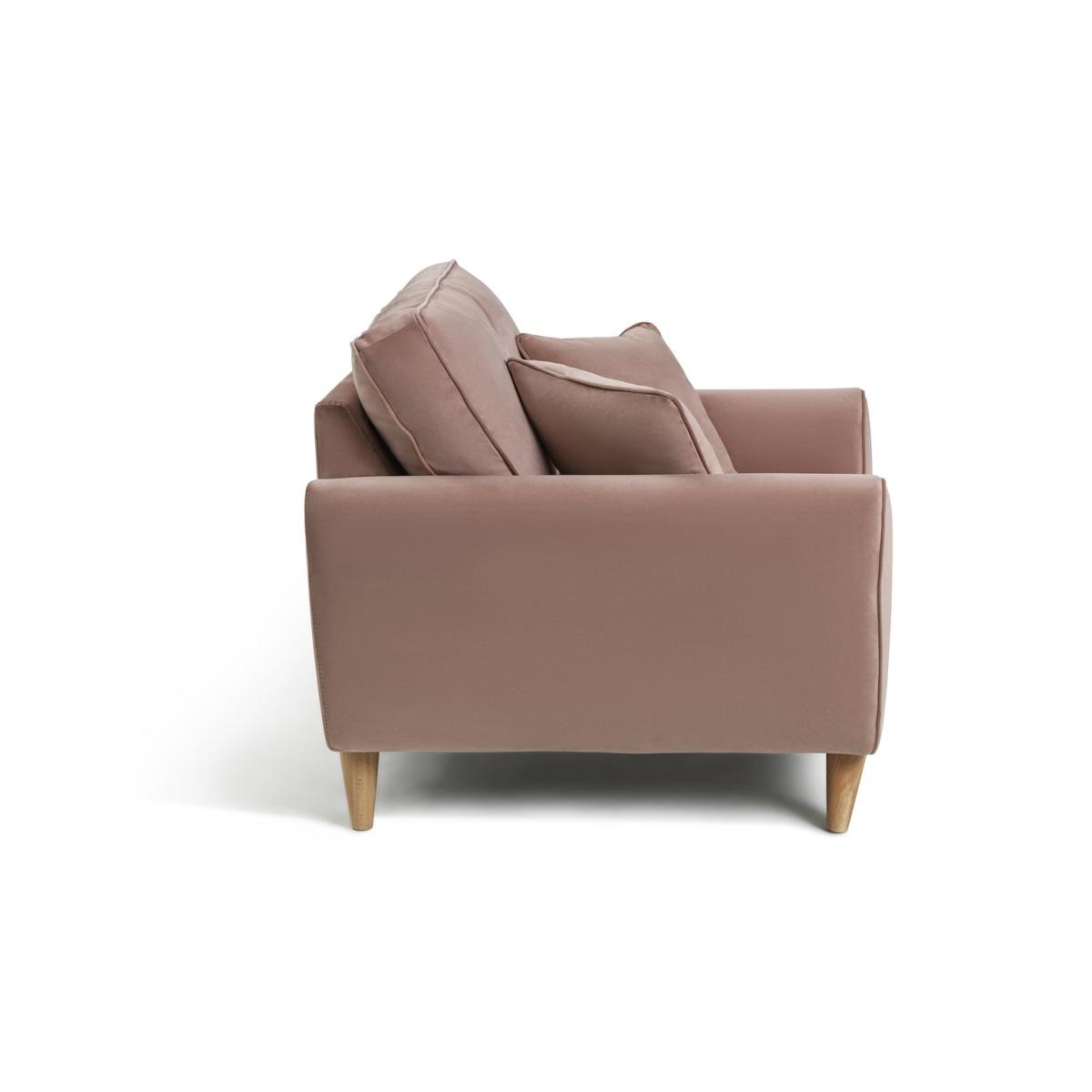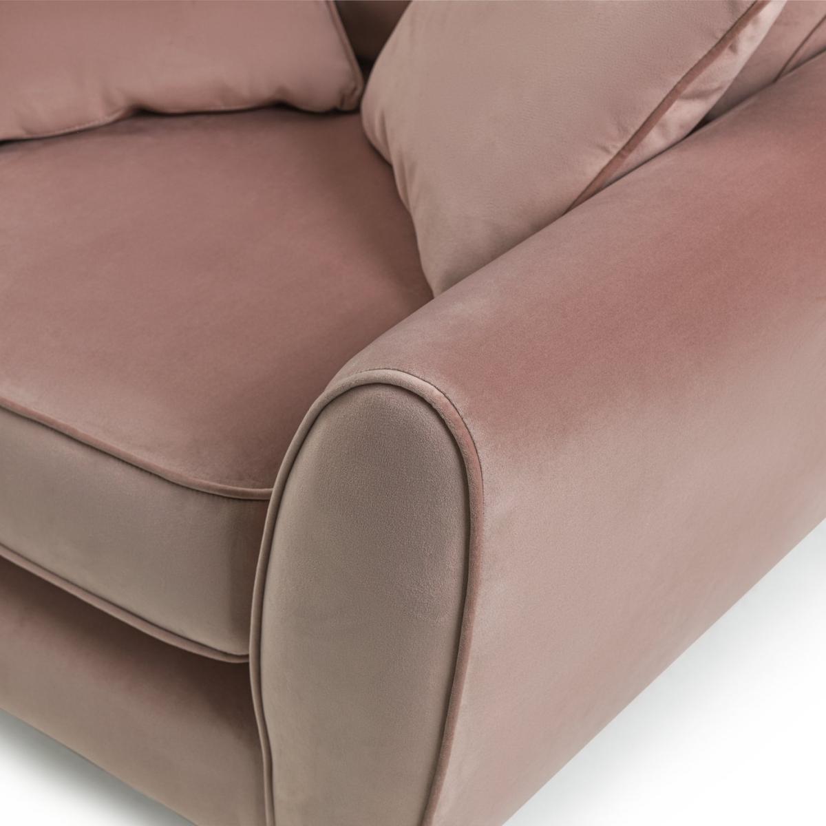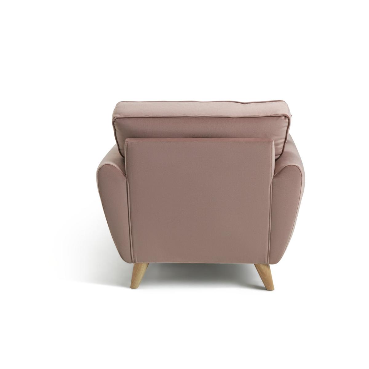 Elegant and snuggly soft, that's Isla. Our irresistible armchair is designed with mid-century modern comfort in mind. Just look at those clean curves and traditional button details. Retro, right? While tapered, slim wooden legs lend a contemporary edge. Upholstered in 100% velvet, its smooth texture and beautiful blush pink tones bring a luxe, romantic touch to your living room. And we've thrown in a couple of scatter cushions for extra comfiness. A chair that feels just as good as it looks.