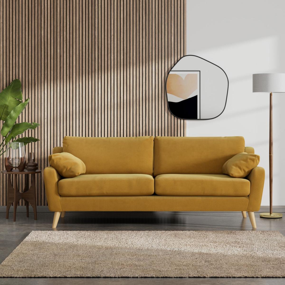 When it's made for you, you know you'll love it. This laid-back 4-seater sofa sets the mood for mellow mid-century style. Plumply relaxing back rests, softly inviting seats, and a couple of comfy cushions are waiting to welcome you. Upholstered in a velvety sheen chenille, the Ivor takes on a rich, soft, textured look. And the finishing touch? Wooden splayed legs that emphasise the gently tapered angles of this iconic sofa design. Offering superior comfort, the Ivor's reversible cushions use high density foam core wrapped in soft fibre wadding to create the perfect balance of support, durability and recovery. Hand made to order in the UK, the Ivor uses quality materials and traditional techniques for furniture that's unique to you. Available in a choice of sizes and fabrics including Aquaclean technology protection built into the yarn, which is easy to clean with just water. Part of the Ivor collection. Material: Made from 100% polyester. Wooden feet - ash. Reversible seats with foam fibre wrap filling. Reversible cushion(s) with foam fibre wrap filling. Free fabric swatch available on this line. Dimensions: Size H88.5, W221, D99cm. Floor to seat height: 51.5cm. Depth of seat: 59cm. Height of seat back: 45cm. Width of seating area between arms: 188cm. Height of arm rest: 60cm. Weight: 80kg. Packaged dimensions: Package size H66.5, W226, D104cm. General information: FSC certified meaning the materials used for this product are responsibly sourced. We do more than deliver your product, we unpack, set it up and take away the packaging. Manufactured in the UK using components sourced globally. Professional clean only. Plump cushions regularly to maintain shape. Manufacturer's 15 year frame guarantee.