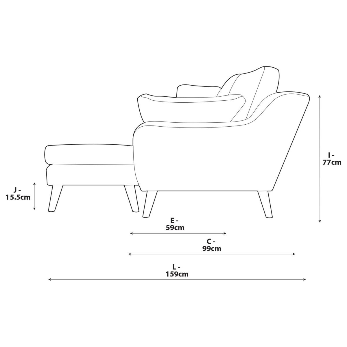 When it's made for you, you know you'll love it. This laid-back 3-seater right hand chaise sets the mood for mellow mid-century style. Plumply relaxing back rests, softly inviting seats, and a couple of comfy cushions are waiting to welcome you. Upholstered in rich Velvet, the Ivor takes on a luxe look. And the finishing touch? Wooden splayed legs that emphasise the gently tapered angles of this iconic sofa design. Offering superior comfort, the Ivor's reversible cushions use high density foam core wrapped in soft fibre wadding to create the perfect balance of support, durability and recovery. Hand made to order in the UK, the Ivor uses quality materials and traditional techniques for furniture that's unique to you. Available in a choice of sizes and fabrics including Aquaclean technology protection built into the yarn, which is easy to clean with just water. Part of the Ivor collection. Right hand corner. Material: Made from 100% recycled polyester. Wooden feet. Reversible seats with foam fibre wrap filling. Reversible cushion(s) with fibre filling. Dimensions: Size H88.5, longer width 191,. Floor to seat height: 51.5cm. Depth of seat: 59cm. Height of seat back: 45cm. Longer seating area width between arms: 128cm. Height of arm rest: 59cm. Weight: 80kg. Packaged dimensions: Package size H66.5, W196, D104cm. Second package size H41, W85, D65cm. General information: We do more than deliver your product, we unpack, set it up and take away the packaging. Manufactured in the UK using components sourced globally. Professional clean only. Plump cushions regularly to maintain shape. Manufacturer's 15 year guarantee.
