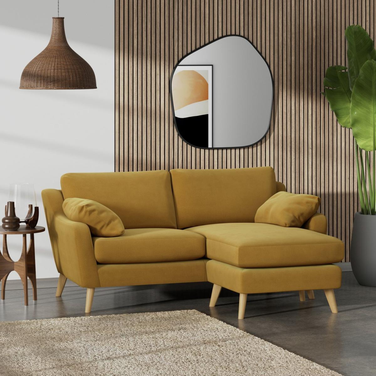 When it's made for you, you know you'll love it. This laid-back 3-seater right hand chaise sets the mood for mellow mid-century style. Plumply relaxing back rests, softly inviting seats, and a couple of comfy cushions are waiting to welcome you. Upholstered in a velvety sheen Chenille, the Ivor takes on a rich, soft, textured look. And the finishing touch? Wooden splayed legs that emphasise the gently tapered angles of this iconic sofa design. Offering superior comfort, the Ivor's reversible cushions use high density foam core wrapped in soft fibre wadding to create the perfect balance of support, durability and recovery. Hand made to order in the UK, the Ivor uses quality materials and traditional techniques for furniture that's unique to you. Available in a choice of sizes and fabrics including Aquaclean technology protection built into the yarn, which is easy to clean with just water. Part of the Ivor collection. Right hand corner. Material: Made from 100% polyester. Wooden feet. Reversible seats with foam fibre wrap filling. Reversible cushion(s) with fibre filling. Dimensions: Size H88.5, longer width 191,. Floor to seat height: 51.5cm. Depth of seat: 59cm. Height of seat back: 45cm. Longer seating area width between arms: 128cm. Height of arm rest: 59cm. Weight: 80kg. Packaged dimensions: Package size H66.5, W196, D104cm. Second package size H41, W85, D65cm. General information: We do more than deliver your product, we unpack, set it up and take away the packaging. Manufactured in the UK using components sourced globally. Professional clean only. Plump cushions regularly to maintain shape. Manufacturer's 15 year guarantee.