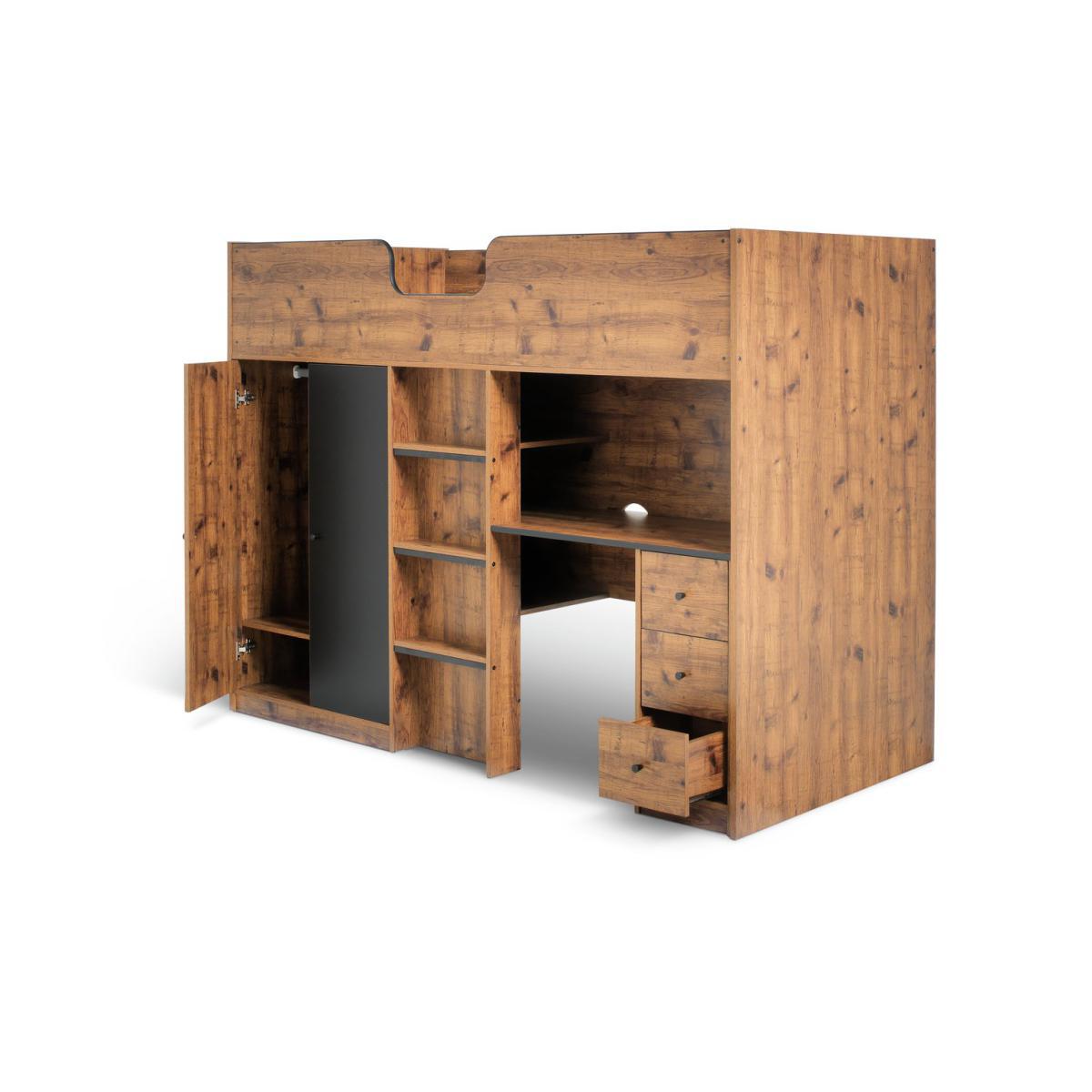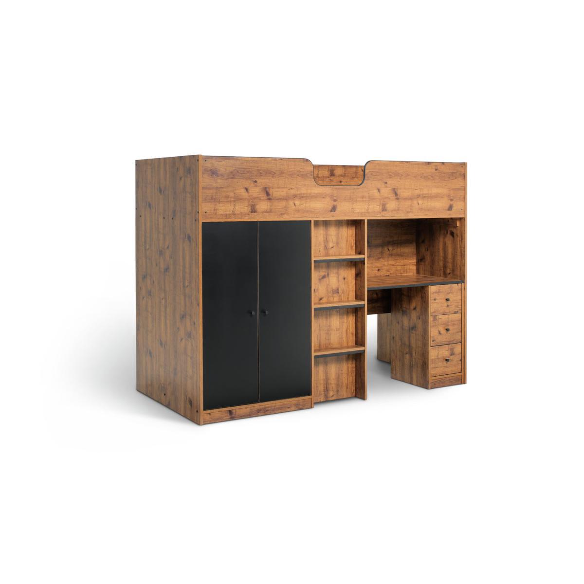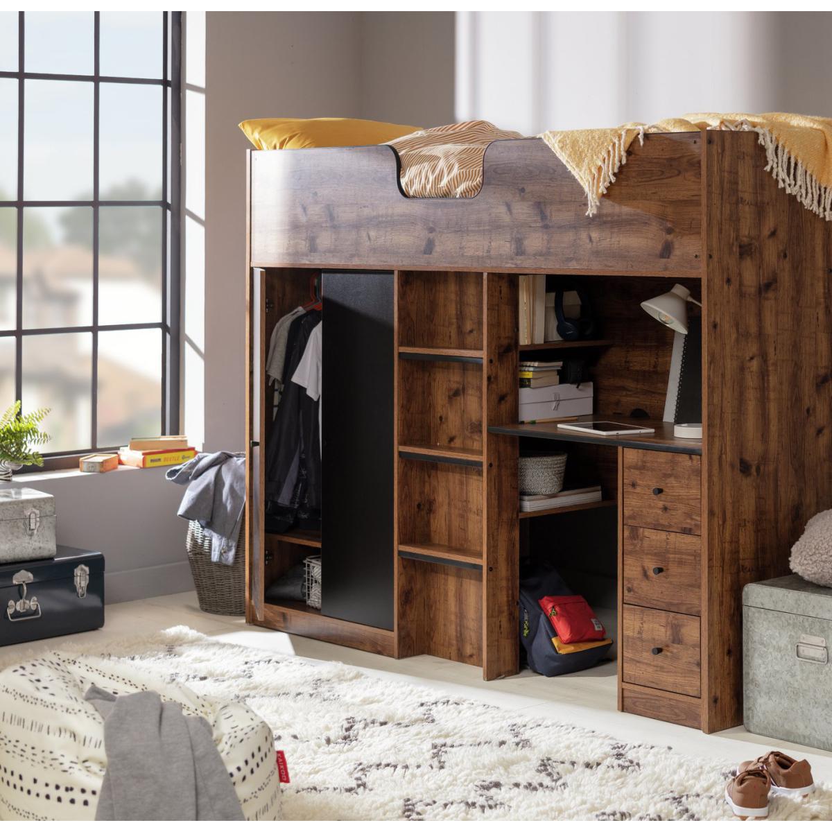 Climb up, up and away with the Jackson high sleeper. A complete bedroom in one tidy footprint, it comes with a high-sided bed, built-in desk, a wardrobe, 3 deep drawers and lots of shelf space. Available in a range of colours and finishes, this rustic oak effect version has blackboard wardrobe doors so your little dreamer can draw and doodle to their heart's content (chalks not included). This is a fun space-saving solution any kid will love, designed to last the years, and ideal for smaller rooms or where space is precious.
