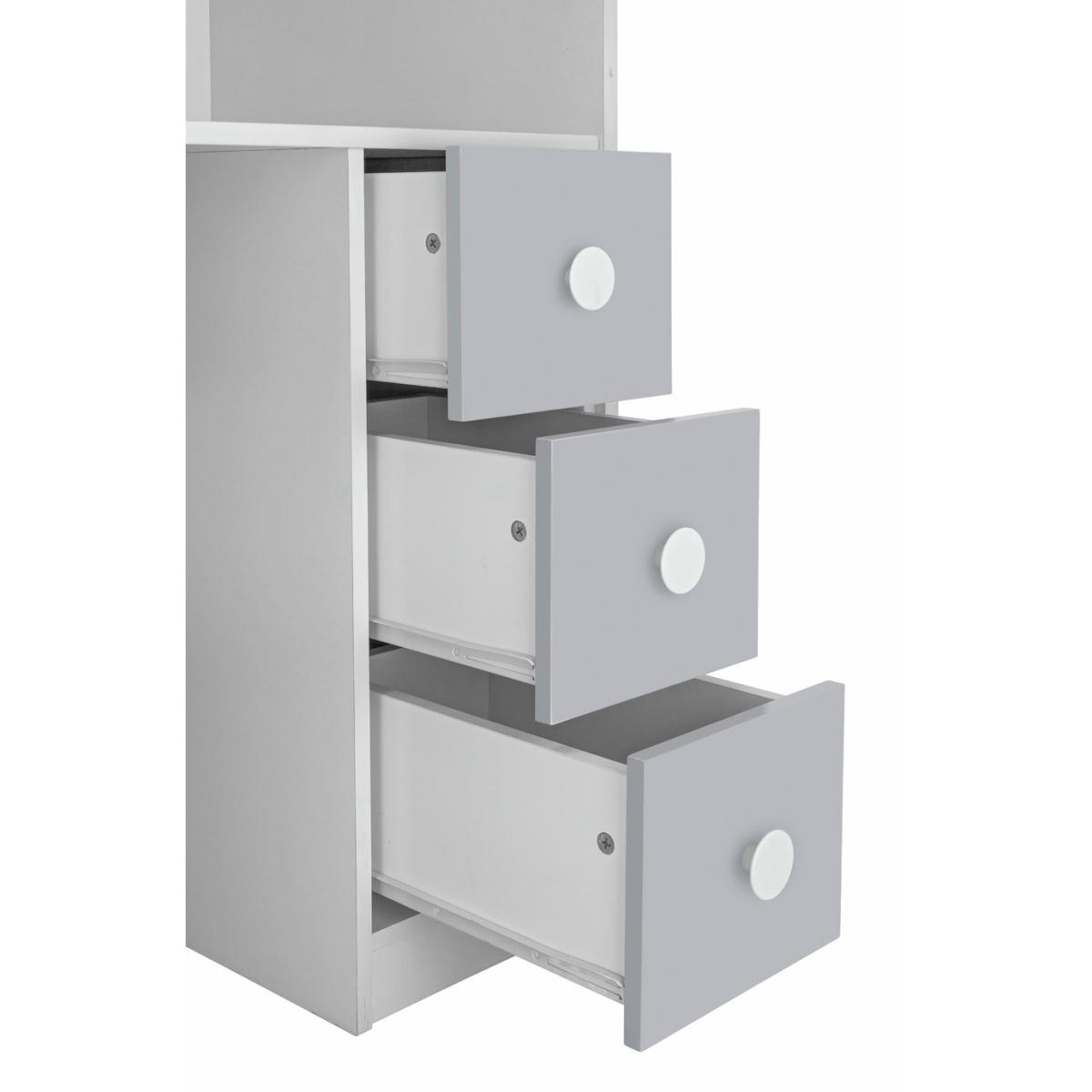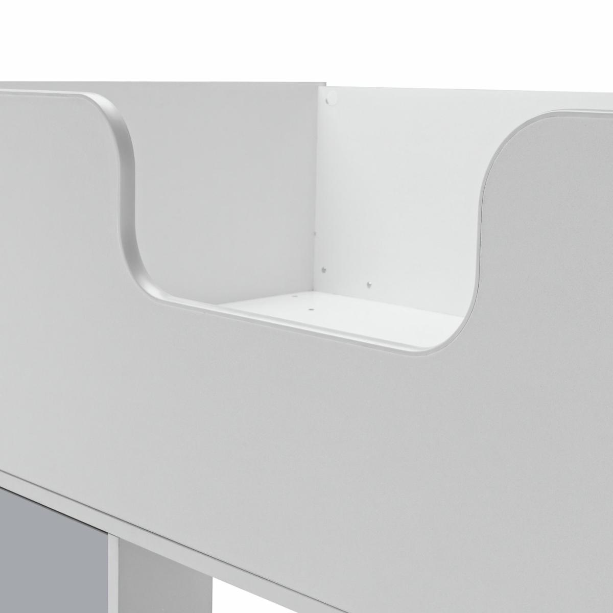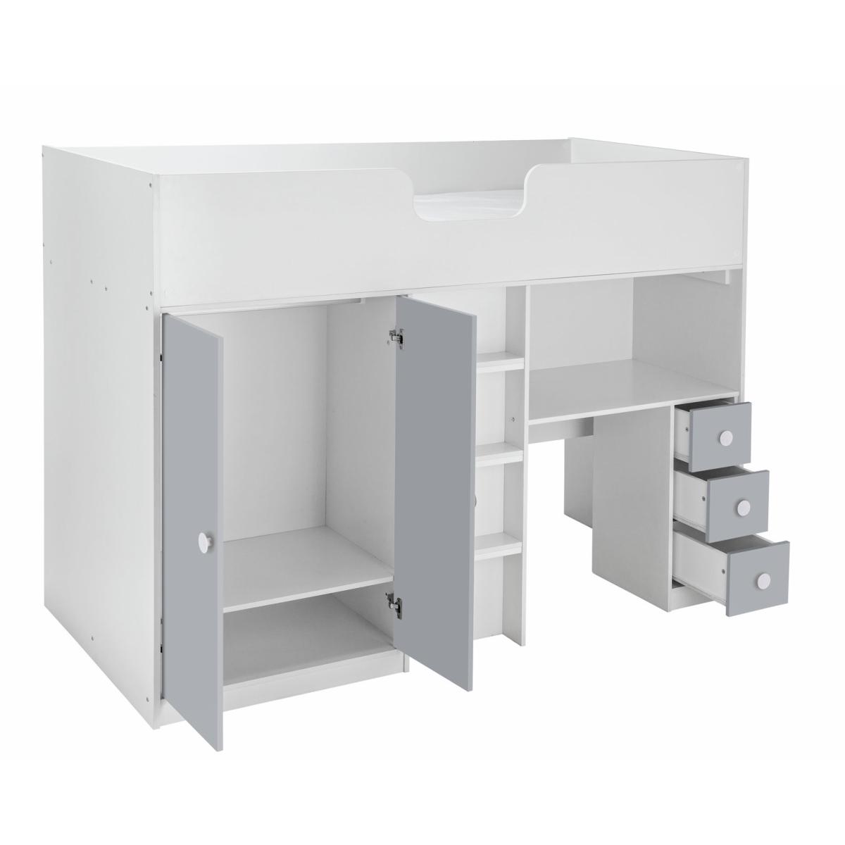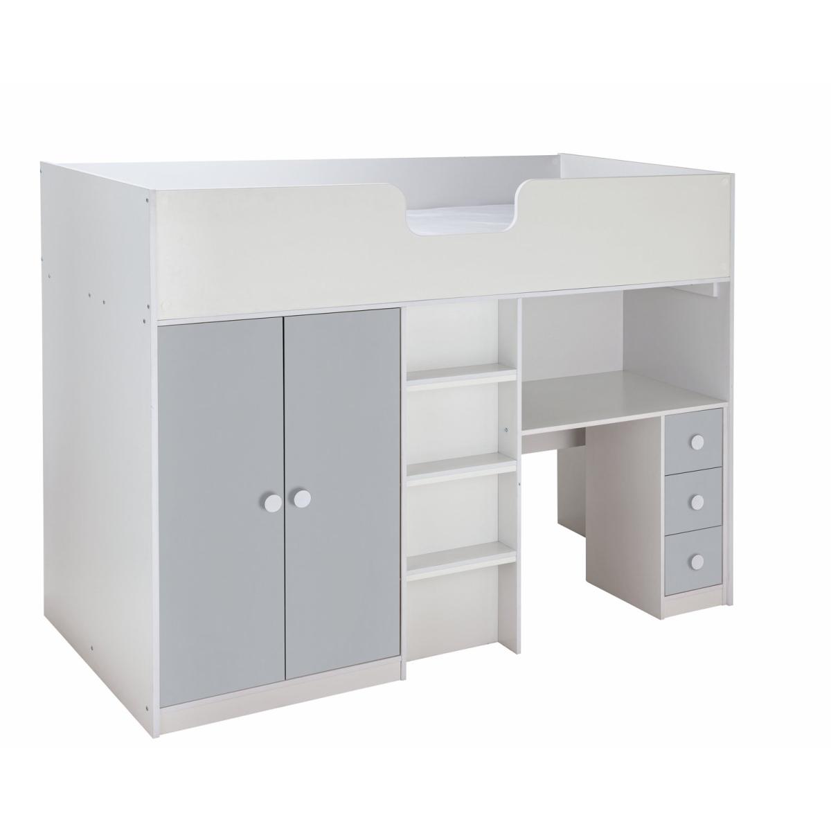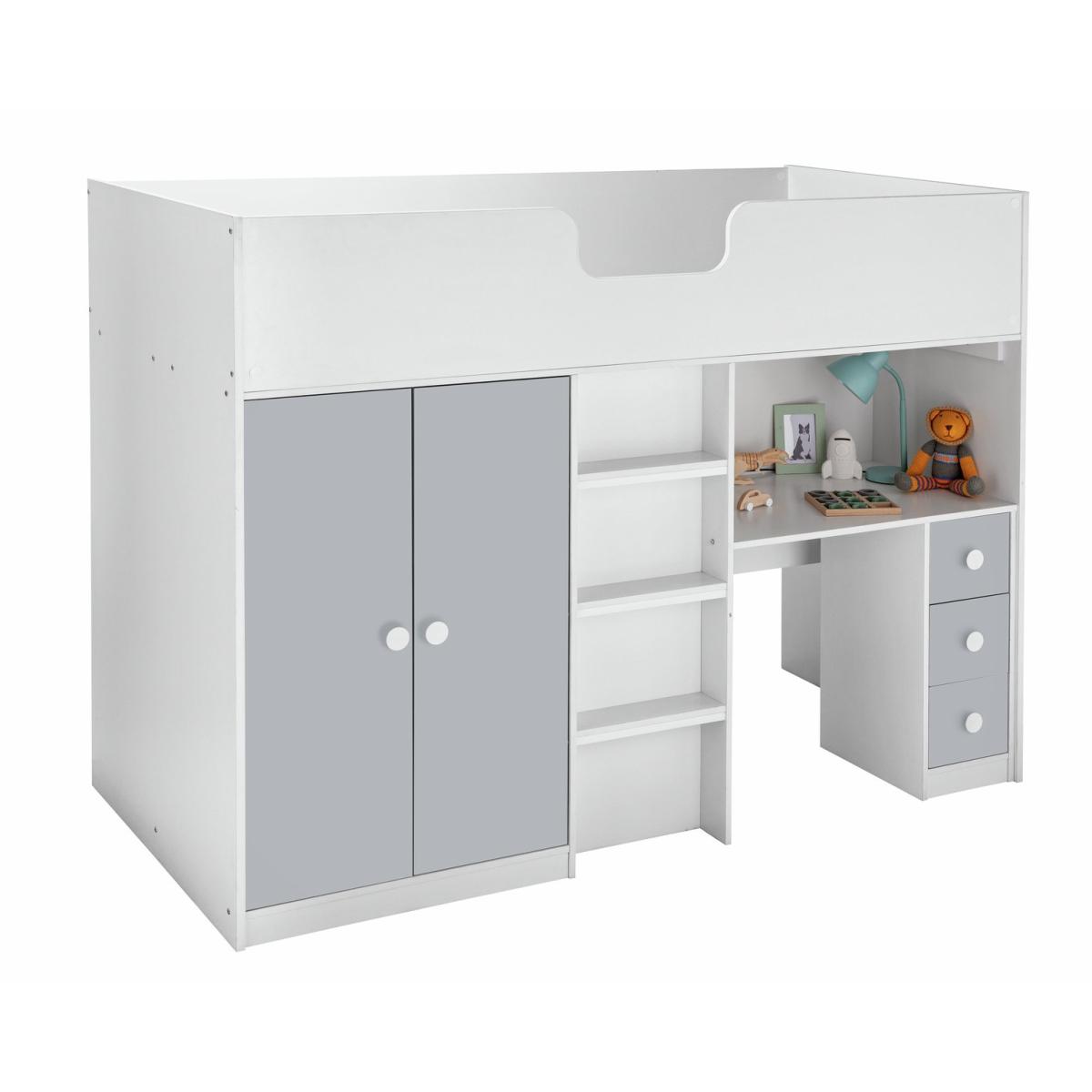 Climb up, up and away with the Jackson shorty high sleeper. A complete bedroom in one tidy footprint, it comes with a built-in desk, a wardrobe, 3 deep drawers and lots of shelf space. This is a fun space-saving solution any kid will love, ideal for smaller rooms or where space is precious. The high sides create a secure and cosy bed for your child, and the fun white handles add a pop of freshness to any room. Strong and sturdy, the Jackson has been designed to last the years. Part of the Jackson collection. Sleeper: Shorty bed. White and grey bed with a particleboard frame. Packed flat - 2 people recommended. WARNING "This product must be attached to a wall or building structure". Ladder is in a fixed position. Maximum user weight per bunk 100kg. For ages 6 years and over. Suitable for adult use (safety tested to 100kg). Mattress: (not included). For safety, maximum depth of mattress to be used is 16cm. Dimensions: Safety rail height 35cm. Frame size L180, W80, H150cm. Mattress size L175, W75, D16cm. Clearance between floor and underside of bed 113.1cm. Desk size H68.2, W78.4, D50.8cm. Wardrobe size H105.2, W56, D48.1cm. Storage unit size H20.7, W39.2, D39.2cm. Package dimensions: Package 1 size H7.9, W157.8, D82.8cm. Package 2 size H6, W184.8, D82.6cm. Package 3 size H9.2, W120.8, D55.1cm. General information: By choosing FSC certified products, you are supporting responsible management of the world's forests. Manufacturer's 1 year guarantee.