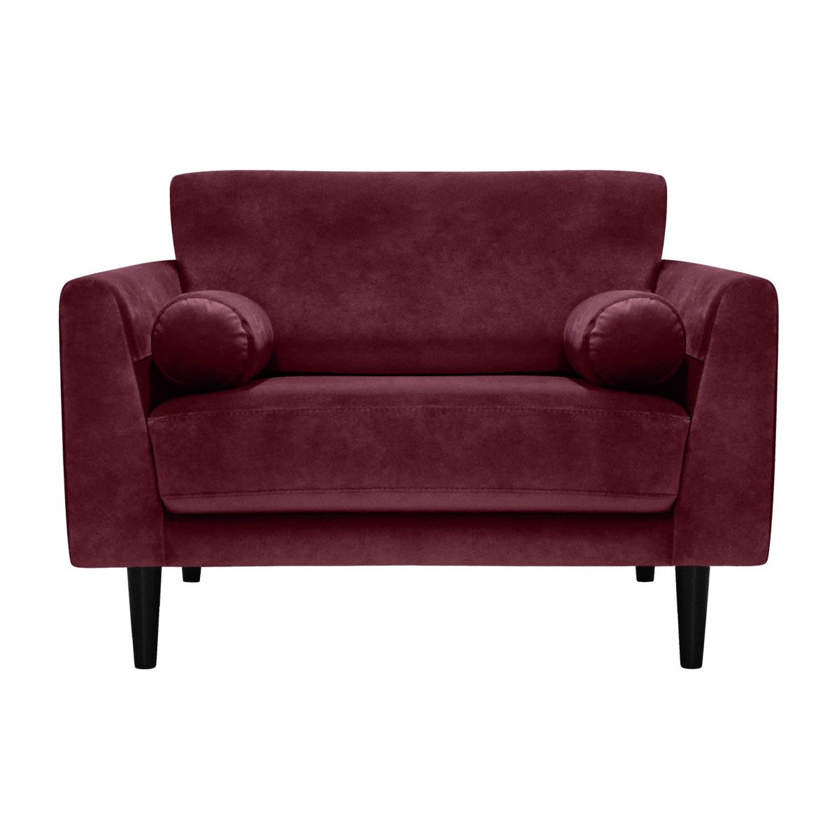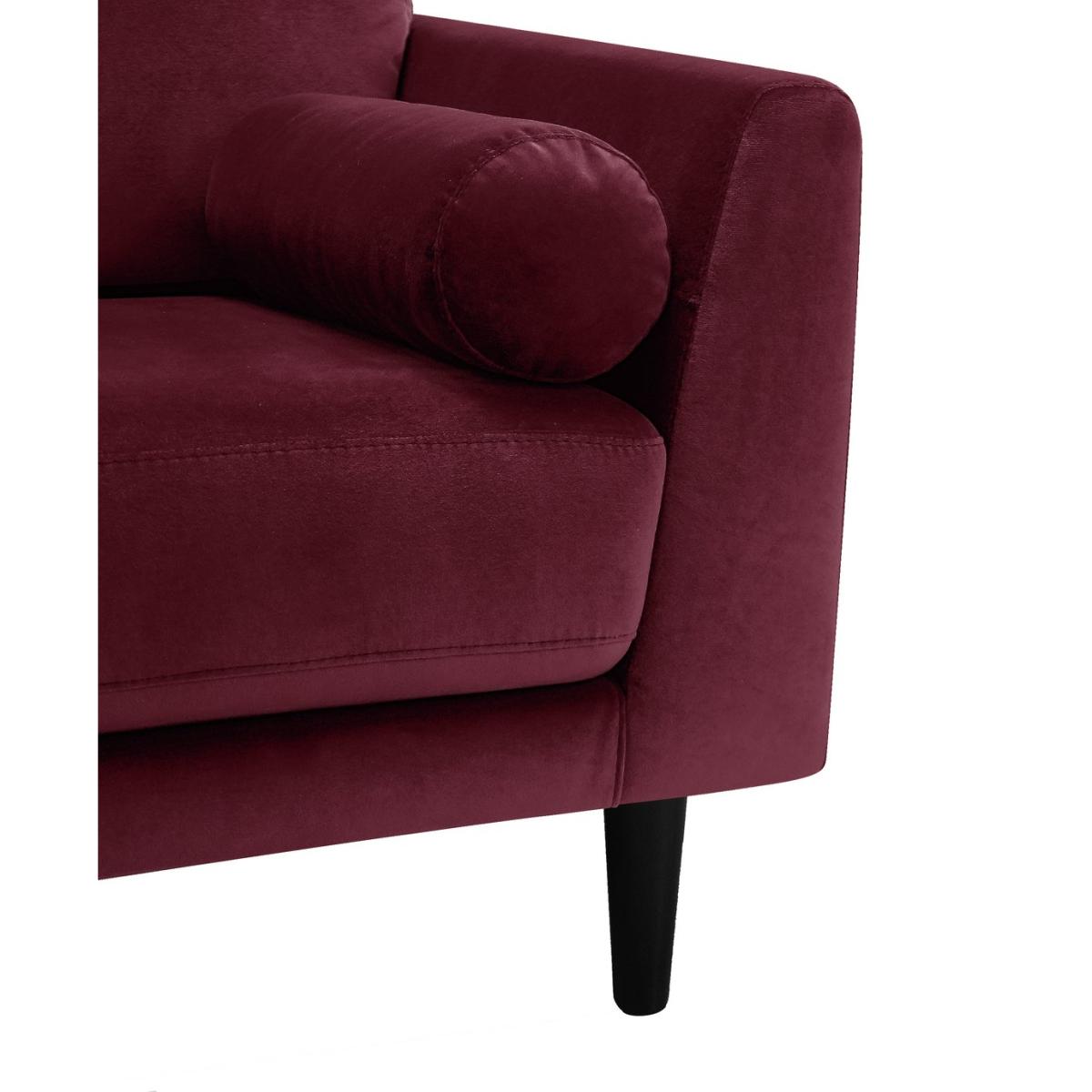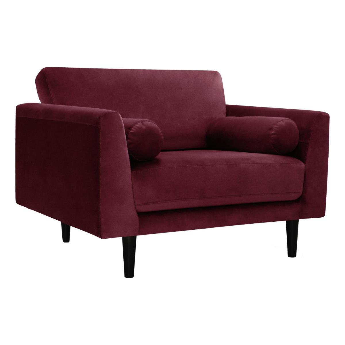 Mid-century modern with a touch of art deco. The Jackson cuddle chair is all about clean lines and simple sophistication. Crafted in luxuriously soft burgundy velvet with a low, wide silhouette, Jackson is as inviting as they come. With fixed fibre-filled back cushions and fixed pocket seat cushions, this armchair was engineered for comfort. Made to cuddle up in, this is one embrace you won't want to leave.