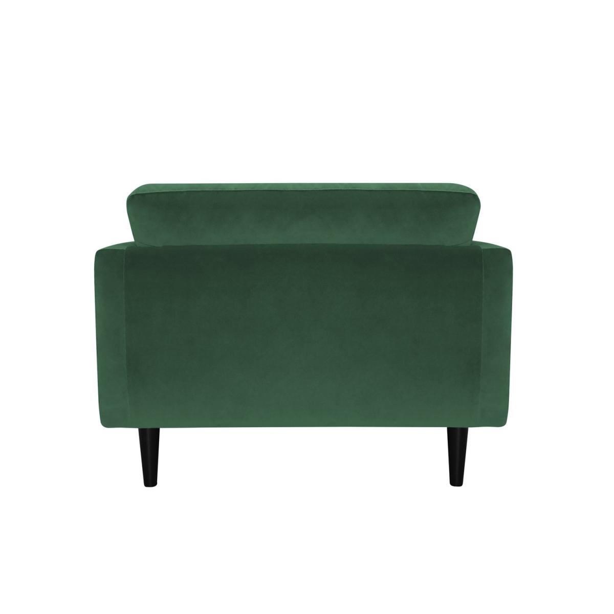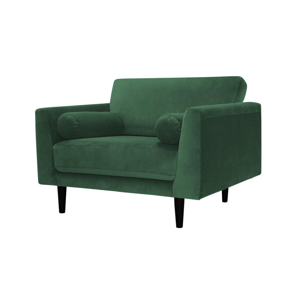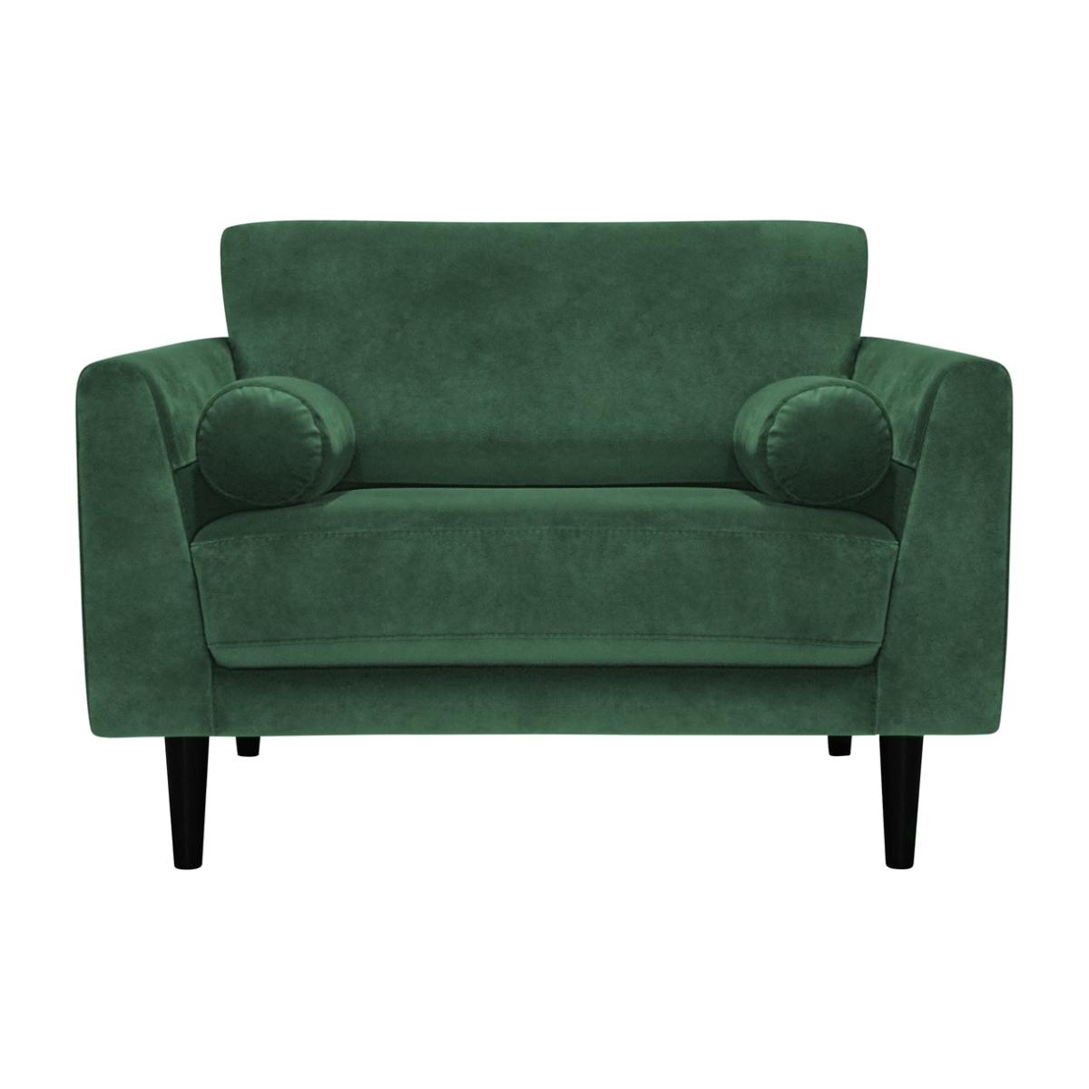 Cosy up with Jacob. Upholstered in a jewel green velvet this mid-century modern cuddle chair is comfy and luxurious. Sink into the low, wide pocket sprung foam seat. Snuggle into the plump and squishy bolsters. And lean against the fibre-filled cushioned back rest. Now breathe. Relaxation achieved. Our velvet fabric is crafted from robust, long-lasting polyester. A great choice for families and pet owners. Part of the Jacob collection. Material: Made from 100% polyester. Wooden feet. Fixed seat with pocket sprung foam filling. Fixed cushion(s) with fibre filling. Free fabric swatch available on this line. Dimensions: Size H82, W113, D91cm. Floor to seat height: 46cm. Depth of seat: 56cm. Height of seat back: 38cm. Width of seating area between arms: 55cm. Height of arm rest: 64cm. Weight 31kg. Professional clean only. Plump cushions regularly to maintain shape. Minimal assembly - just add feet. Maximum individual user weight 120kg. Packaged dimensions: Package size H67, W115, D93cm. General information: We are excited to be welcoming some of our favourite HOME products into the Habitat range. Your product may arrive in Habitat or HOME packaging. Manufacturer's 10 year frame guarantee.