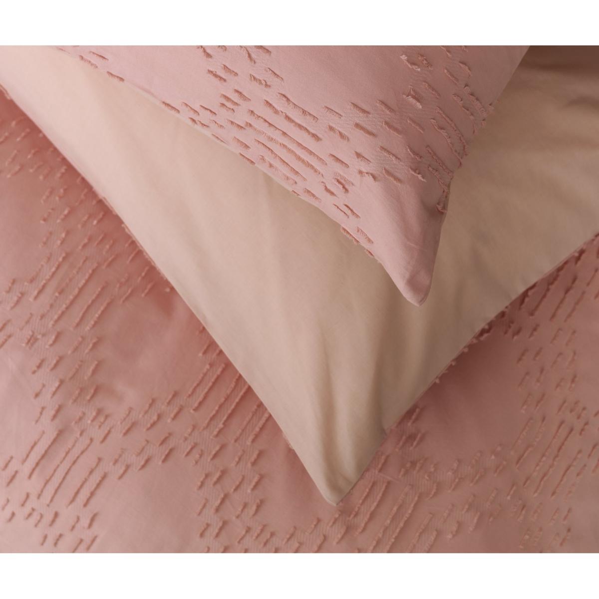 Luxury nights in. Create a sumptuous retreat in your bedroom with our Geo bedset in blush. Light pink with cut out geometric patterns, it perfectly channels the luxe trend with its extra sense of depth and squishability. On the reverse is solid baby pink, which creates a pretty contrast when folded over.