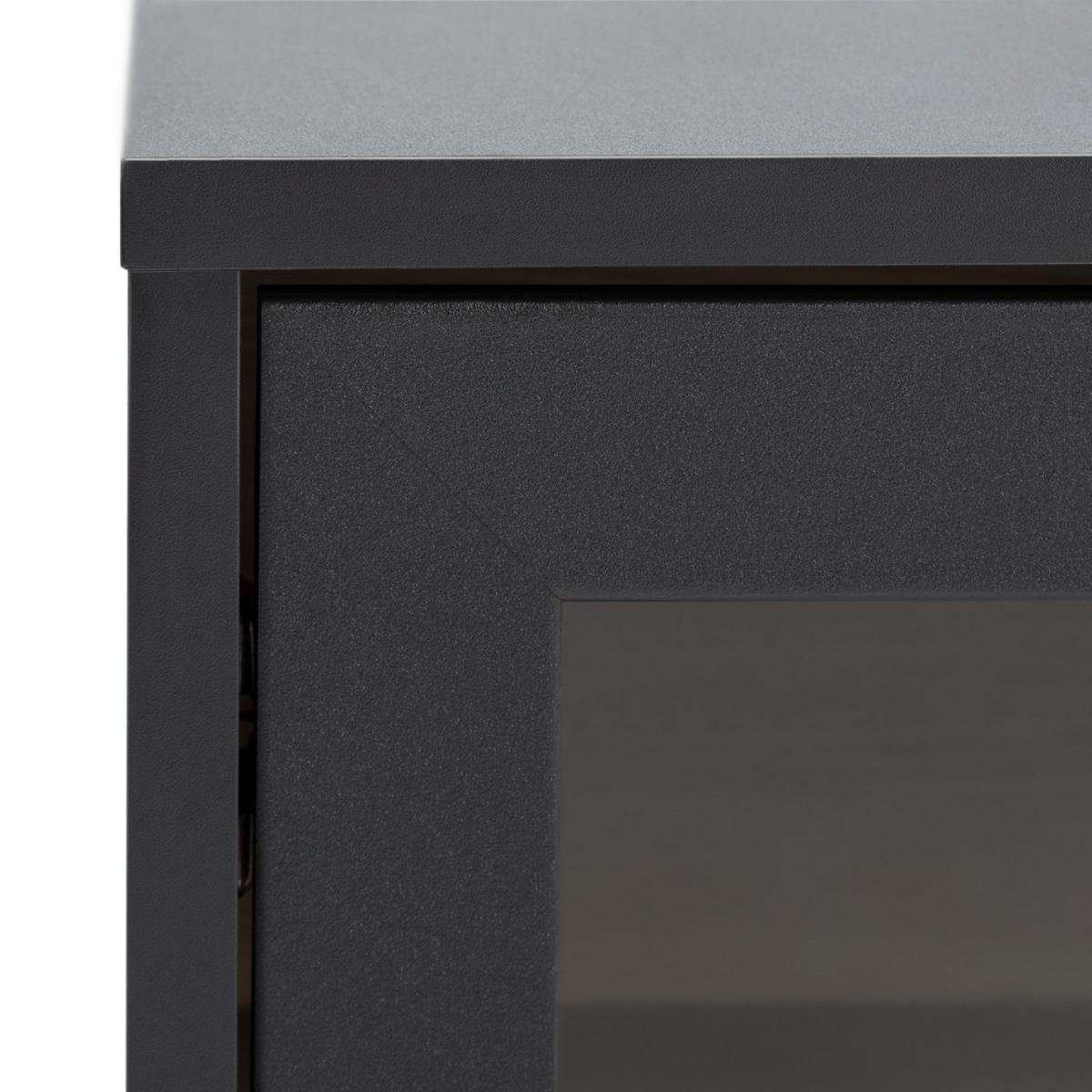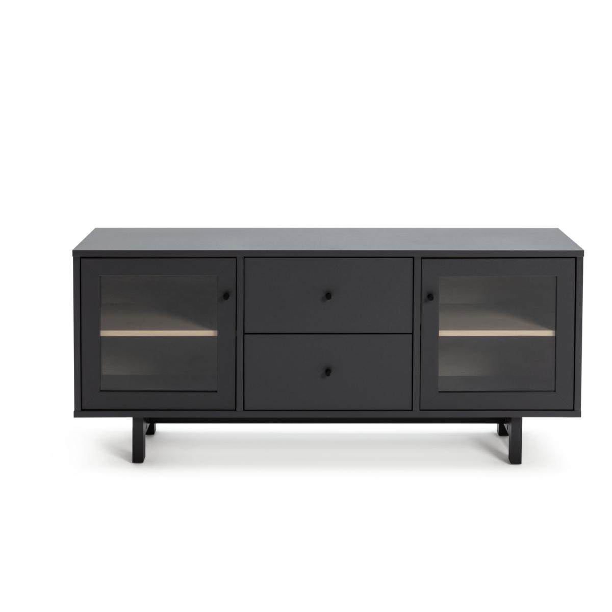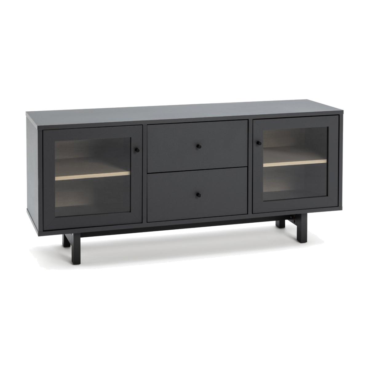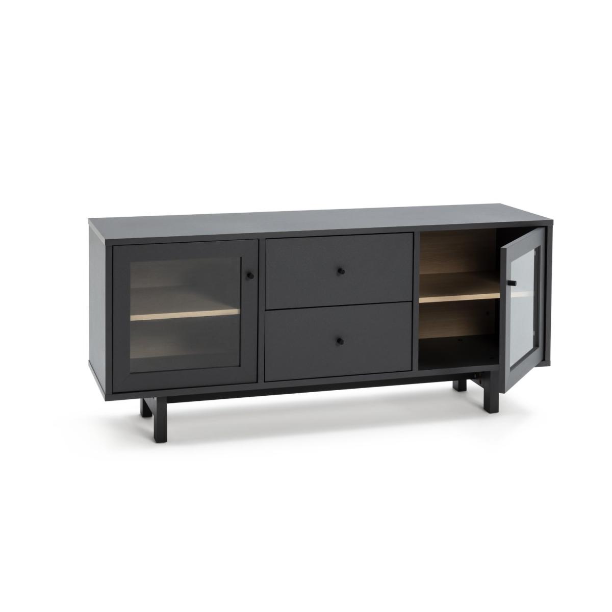 A sideboard with a view. Want a smart modern cabinet for a lounge or dining room? You're looking at it. In dark grey and light oak, it's fashionably on-trend. With 2 glass fronted cupboards you can give your space instant character by showing off tableware, collectables or books. Makes a great drinks cabinet, too. It has adjustable shelves so you can store long stemmed glasses and tall bottles, no problem. There's even 2 deep drawers to tuck away stuff you don't want on view, very handy. Display your style.