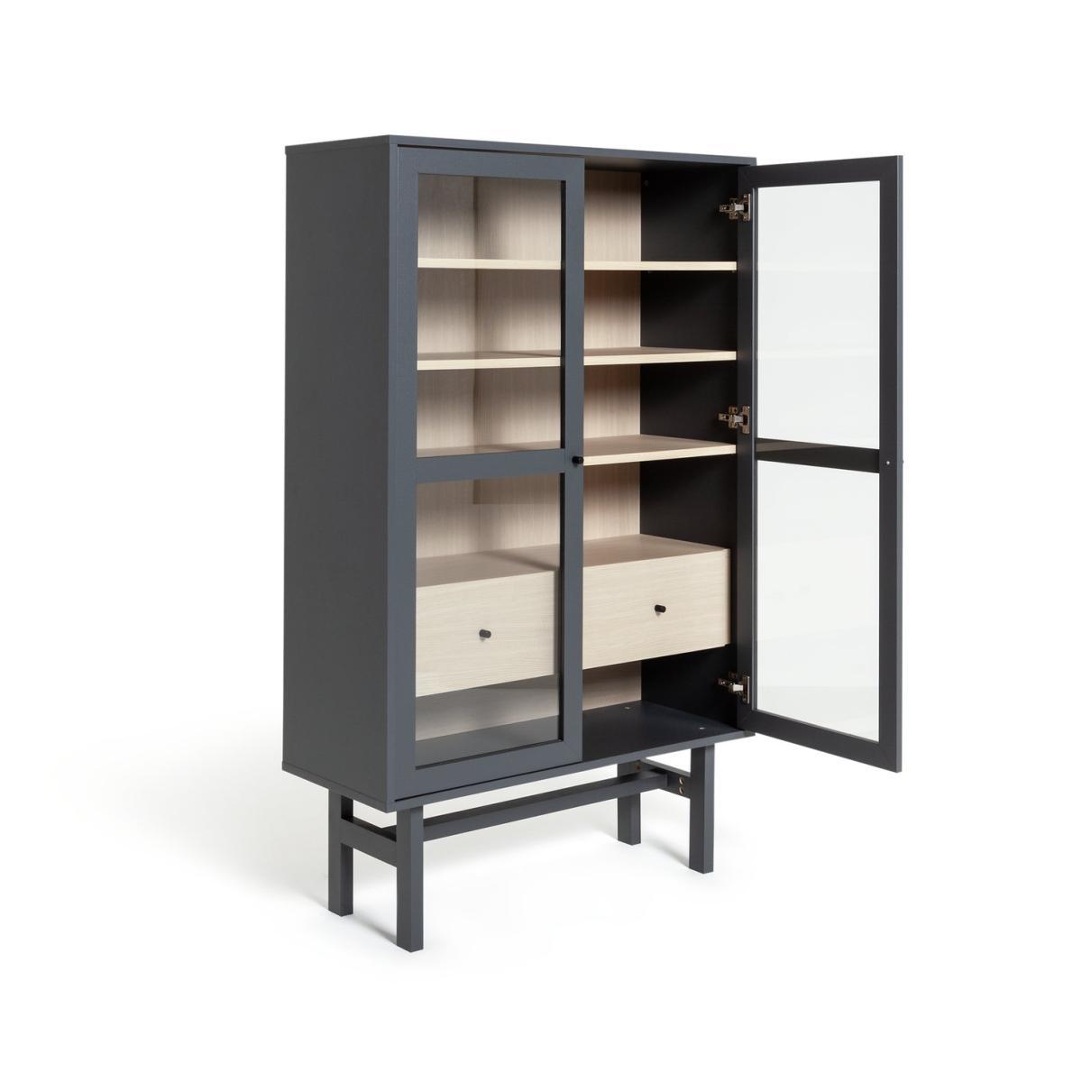 I love this Jadon cabinet for its sleek, modern look and versatile dark grey tone, making it a great choice for a range of interior styles-from contemporary to industrial. Its glass doors are ideal for displaying treasured items or your favourite dinnerware, while the open shelving adds practical storage. To style it effectively, consider pairing it with neutral-sized accessories or bold pops of colour to create visual interest. It works particularly well in living rooms or dining spaces, where it can serve as a focal point while keeping belongings tidy and stylish. For a more personalised touch, add a few decorative books, vases, or art pieces on top or inside to make it uniquely yours.